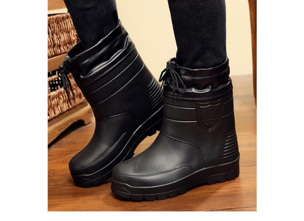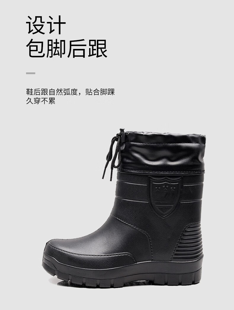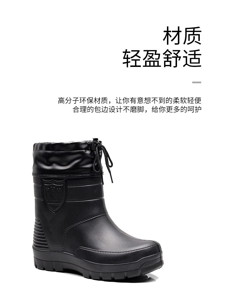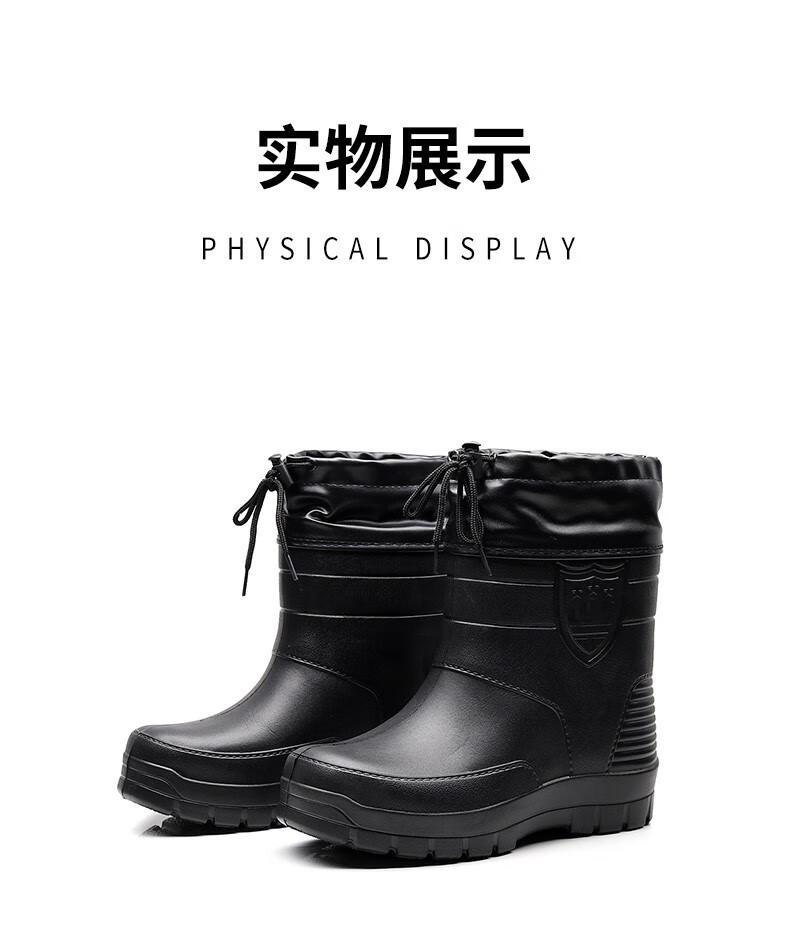 稻草人(MEXICAN)东北冬季加绒雨鞋男保暖一体防水防滑水鞋钓鱼泡沫加棉雨靴男冬款 【冬天加绒】中筒 39