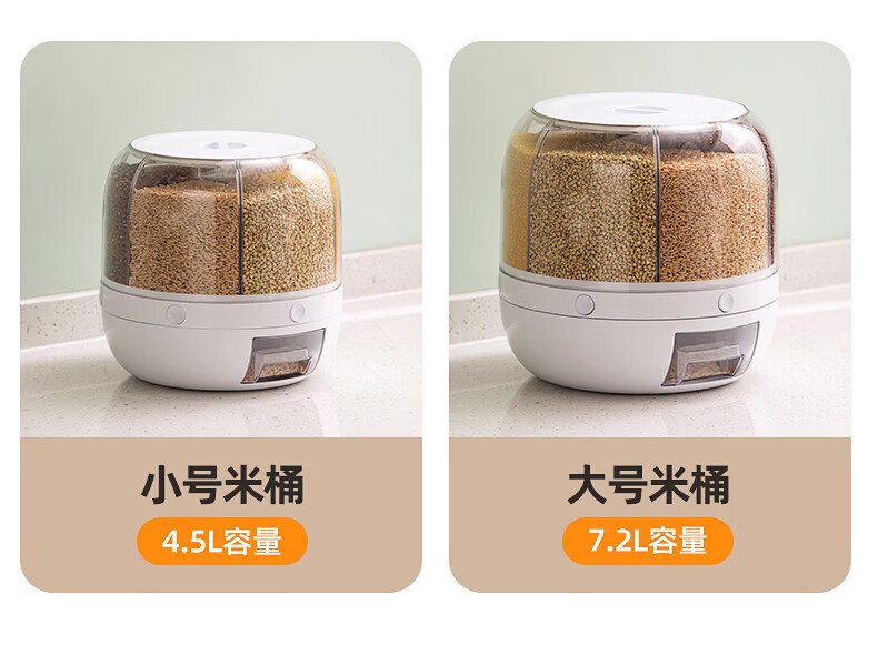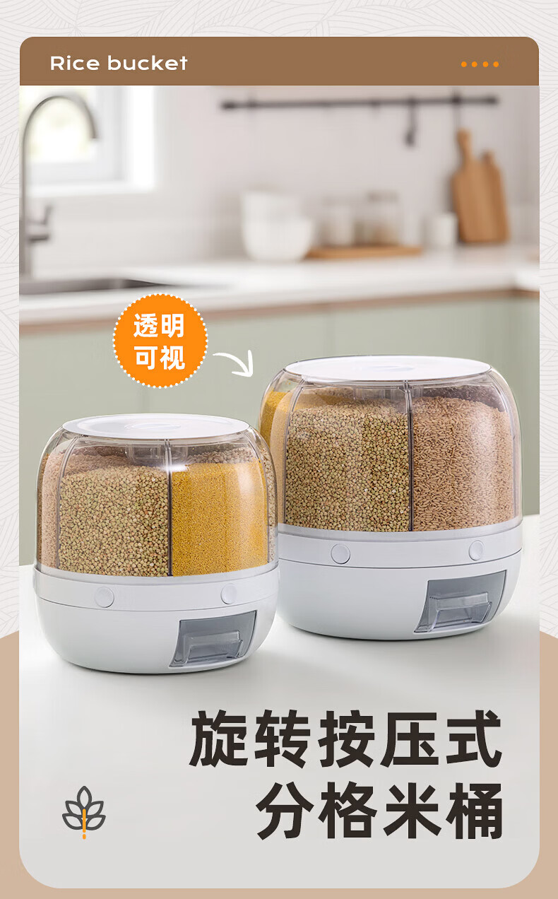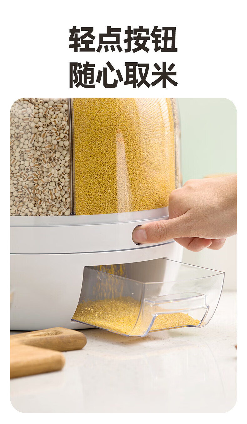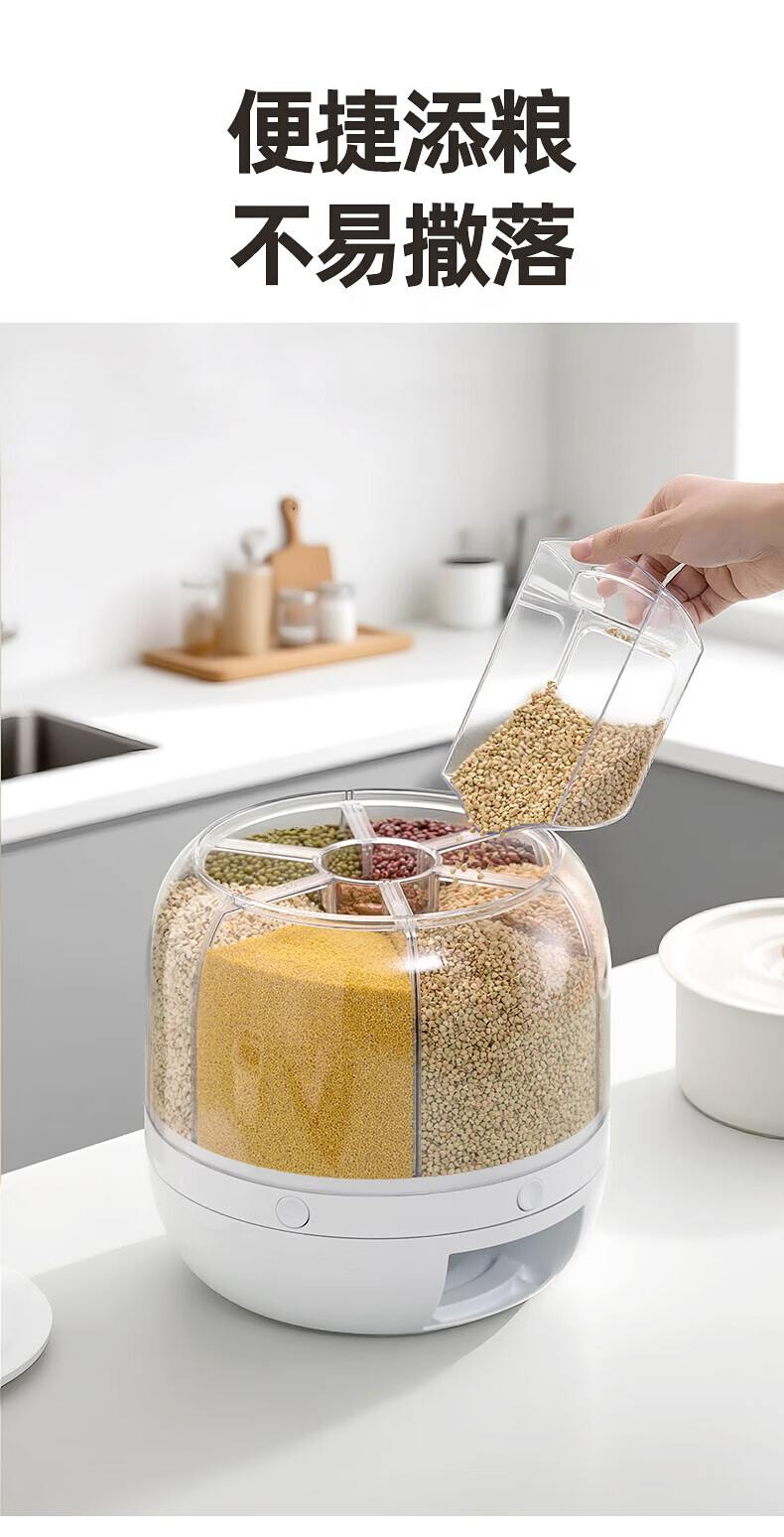 CHAHUA米桶防虫防潮储米箱旋转按压式出米五谷杂粮储物盒密封罐储米缸 【旋转六分格】1个装米桶7.2L