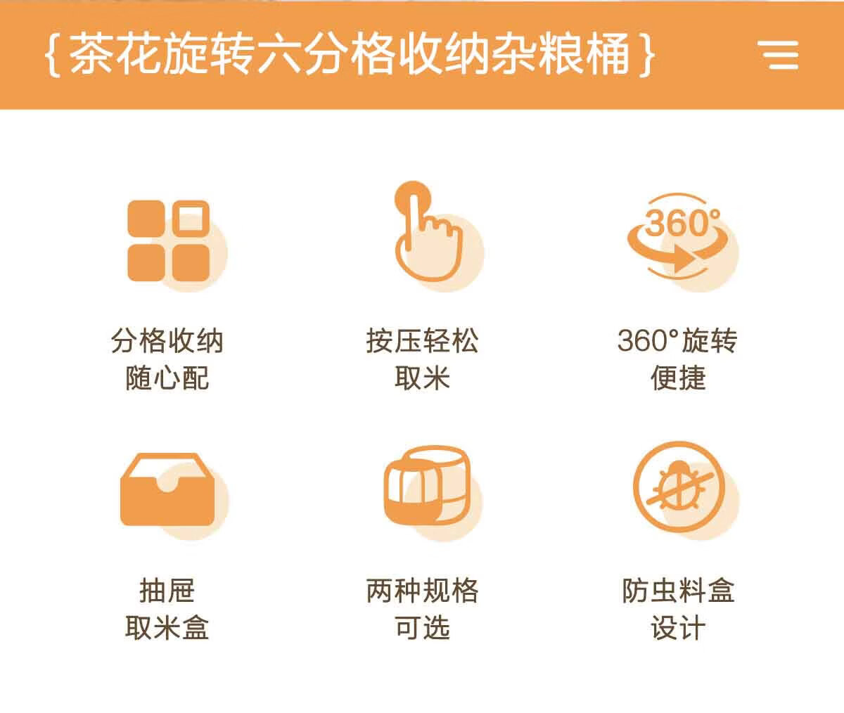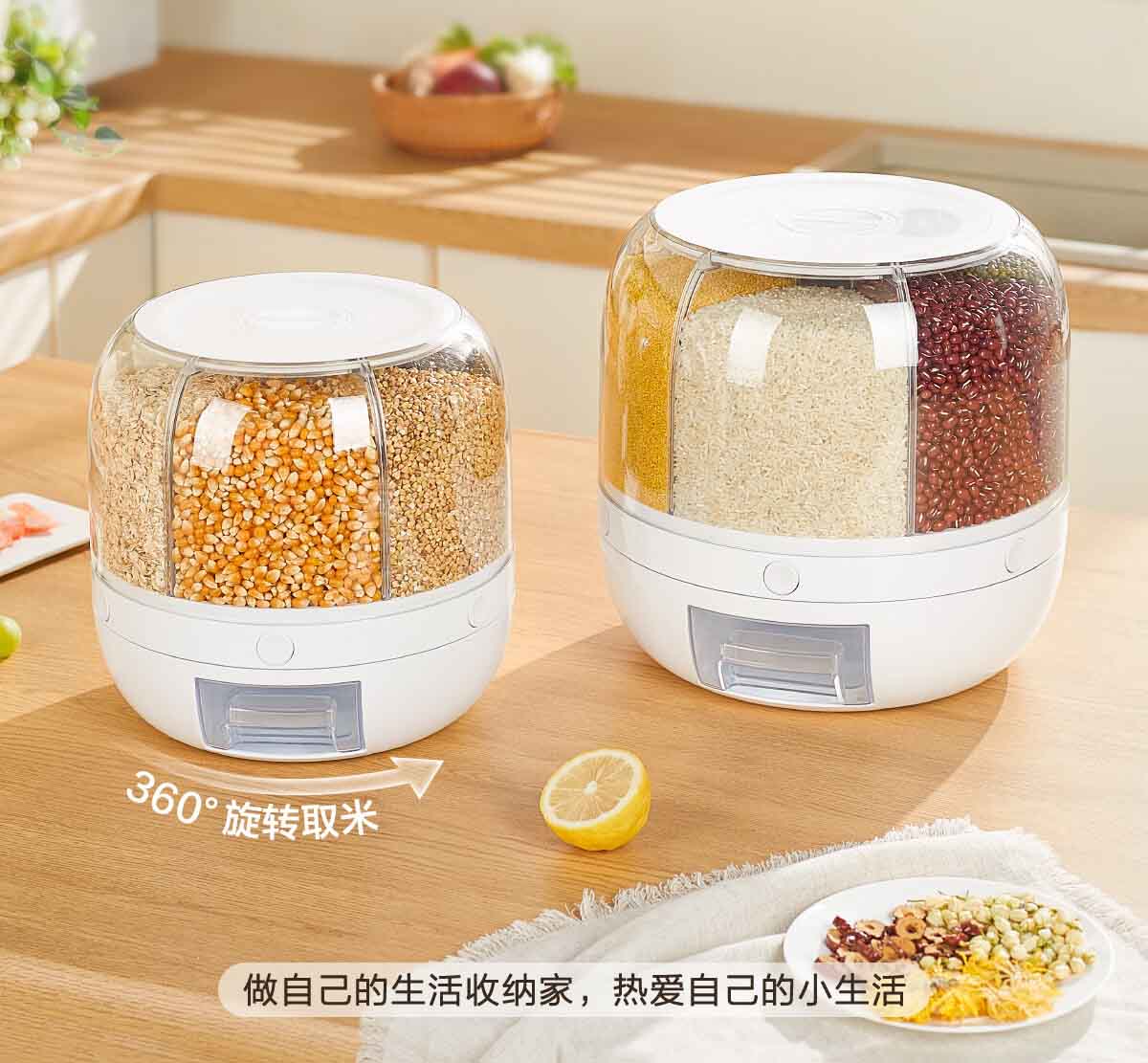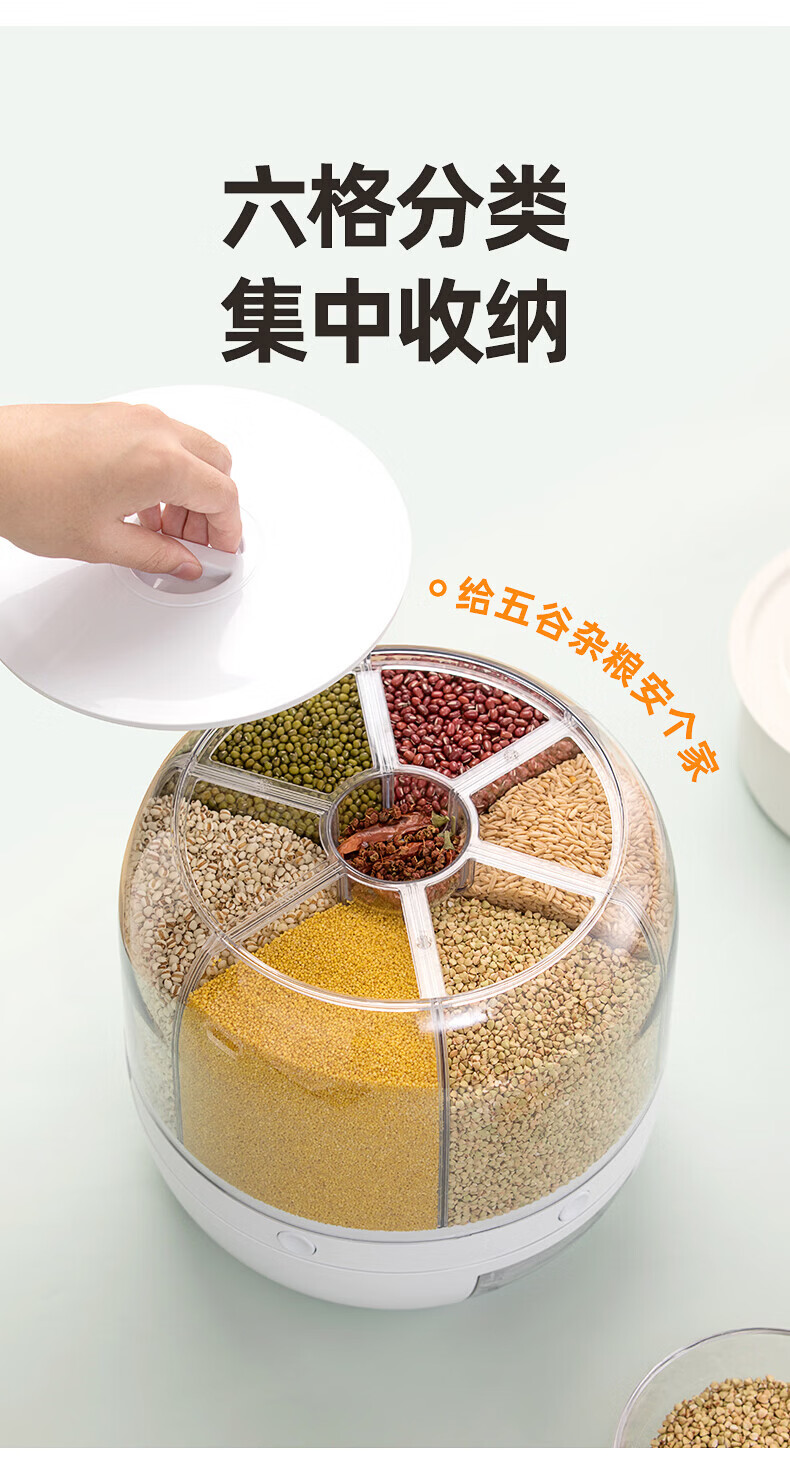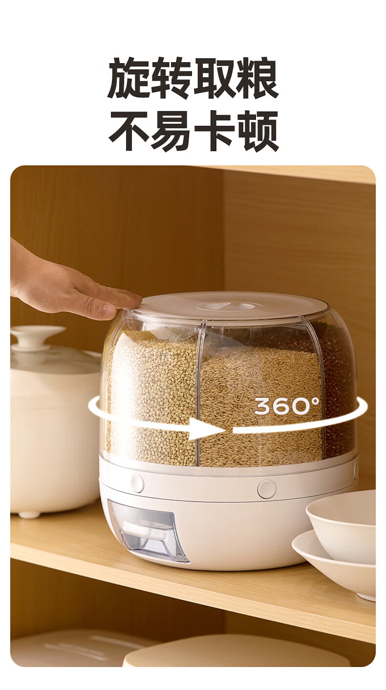 CHAHUA米桶防虫防潮储米箱旋转按压式出米五谷杂粮储物盒密封罐储米缸 【旋转六分格】1个装米桶7.2L