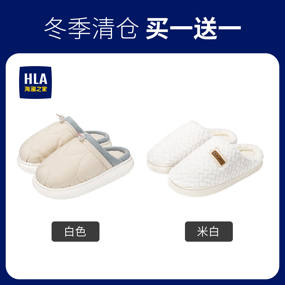 海澜之家(HLA)秋冬季买一送一棉拖鞋女士新款室内家居情侣厚底毛绒保暖拖鞋女 白色+粉色3 组合装 40-41+36-37 偏小一码