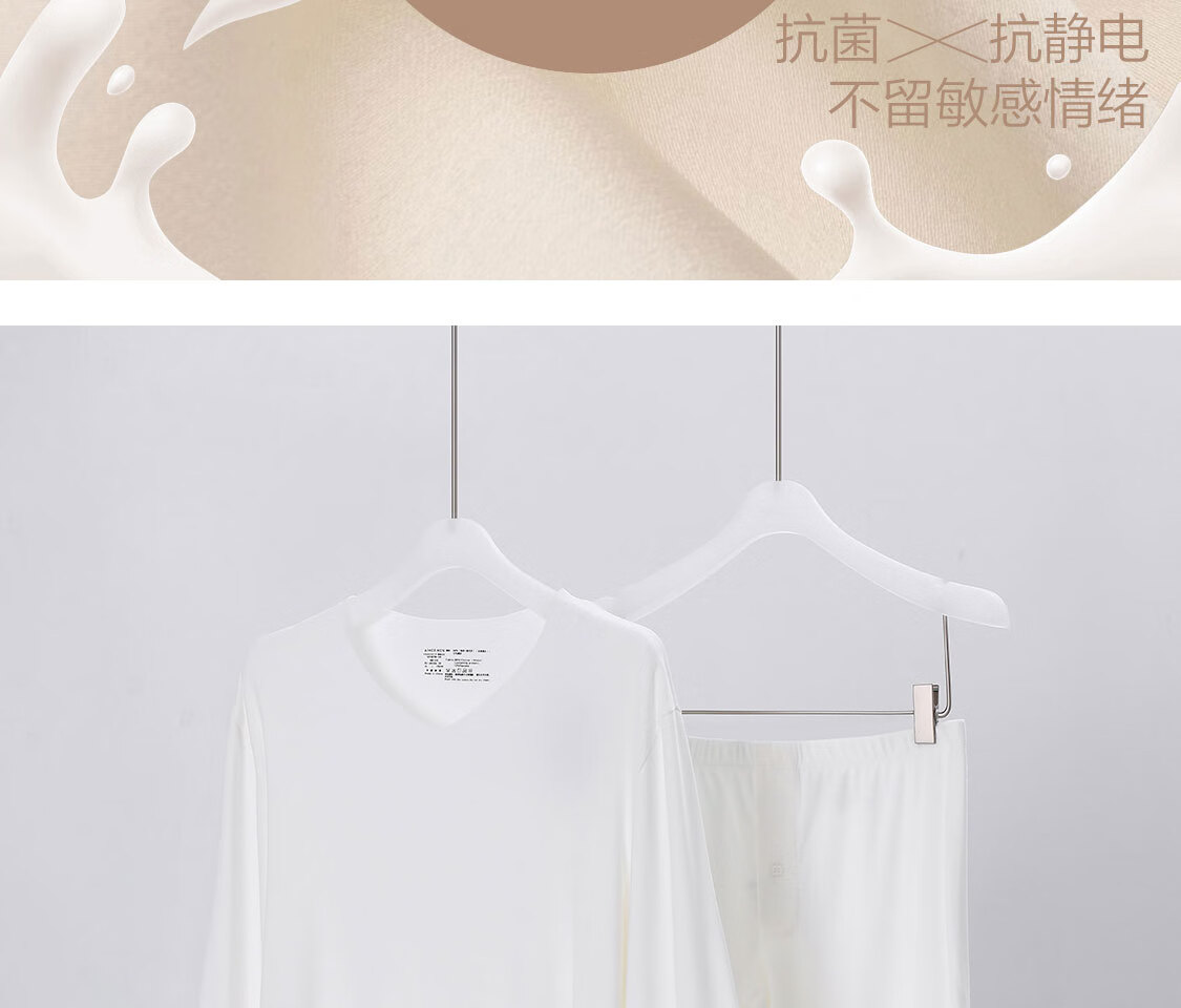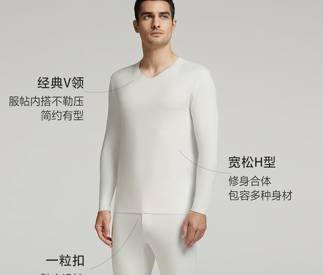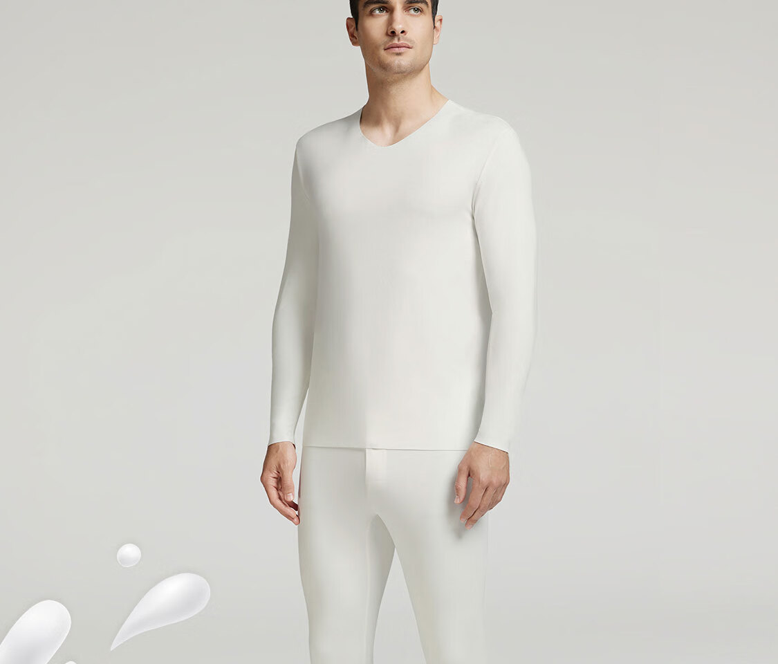 爱慕先生【牛奶系】含牛奶蛋白氨基酸不干燥抗静电保暖套装男秋衣秋裤 皓月白1H0 4XL 190