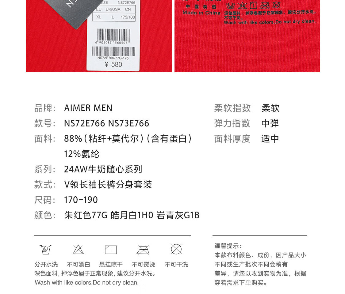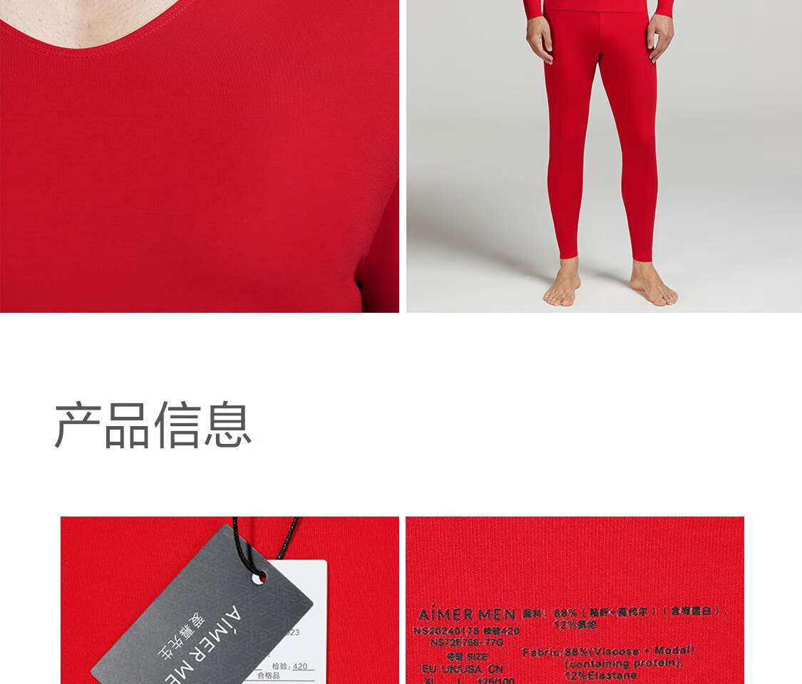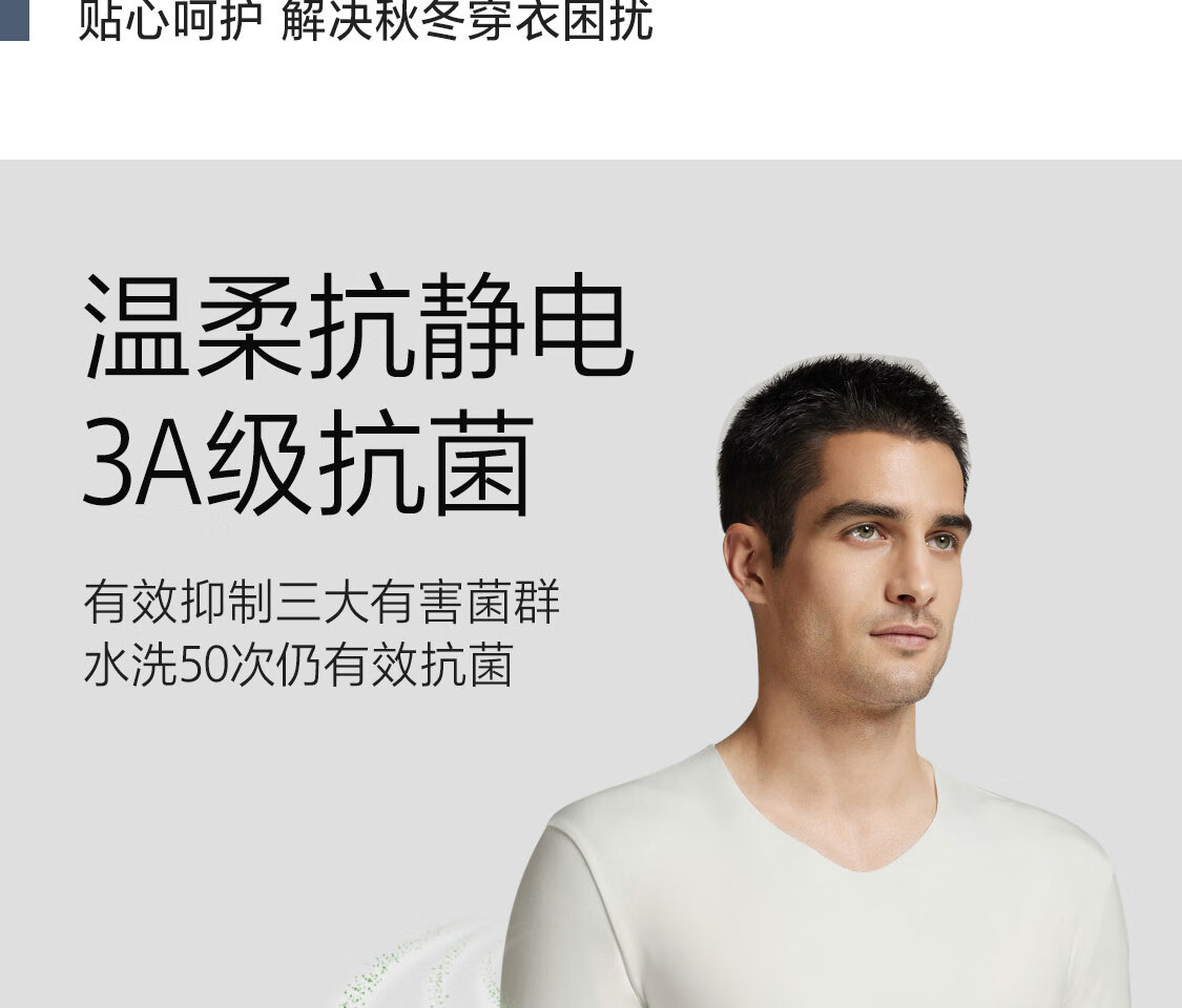 爱慕先生【牛奶系】含牛奶蛋白氨基酸不干燥抗静电保暖套装男秋衣秋裤 皓月白1H0 4XL 190