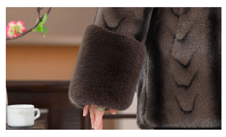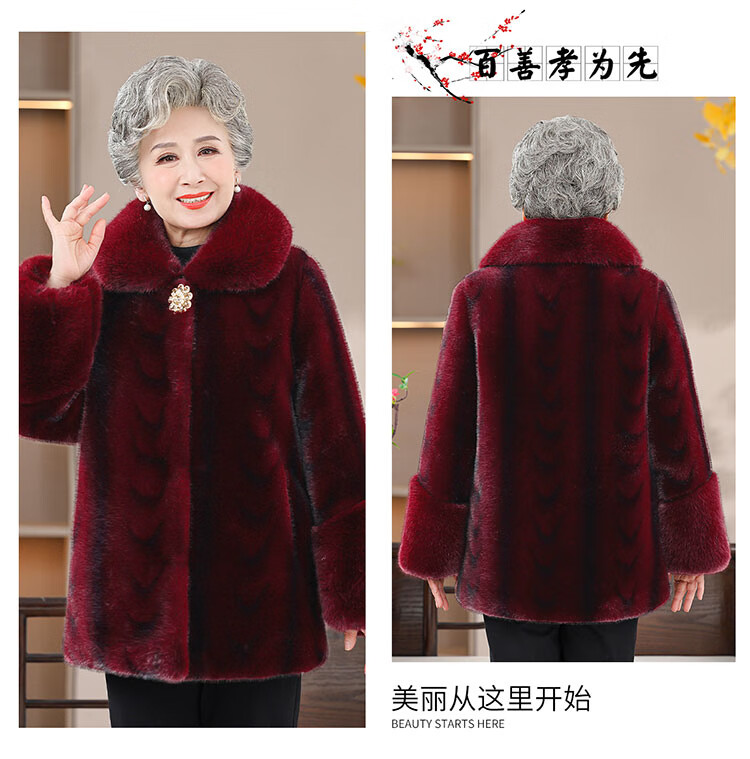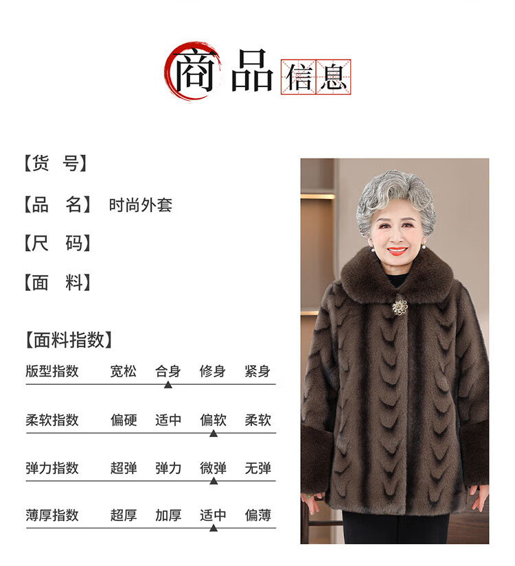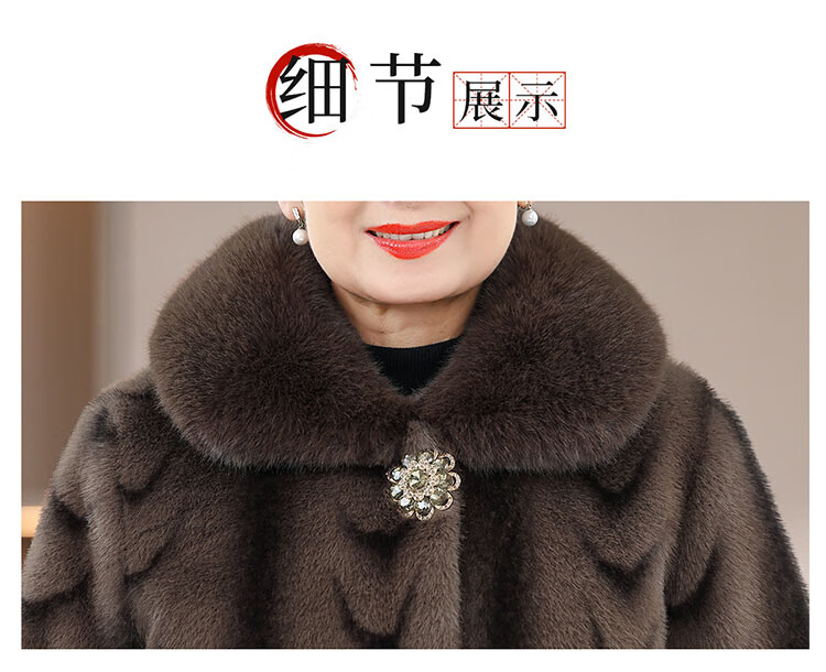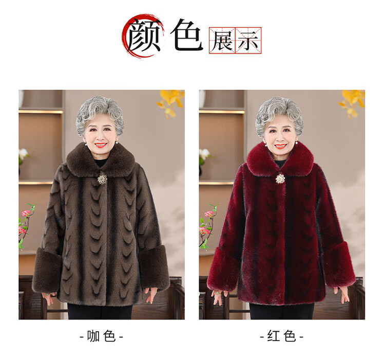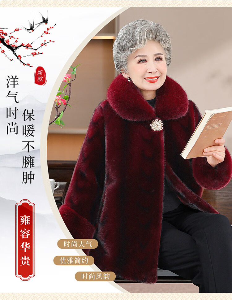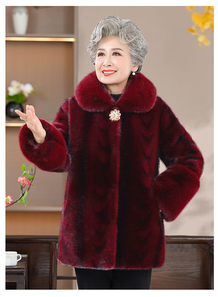 漫花格老年冬装女加绒加厚外套妈妈加绒仿皮草奶奶装冬季仿貂绒套装 咖啡色上衣+加绒裤 XL 建议85-105斤