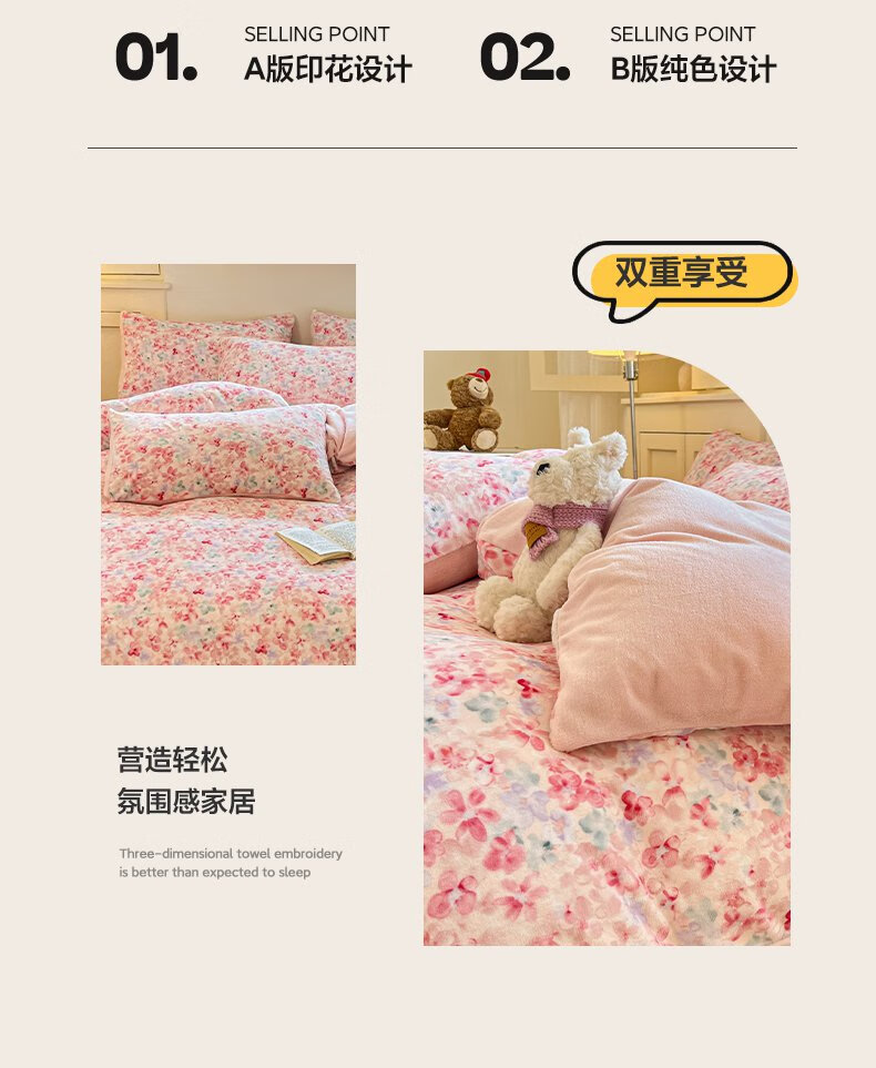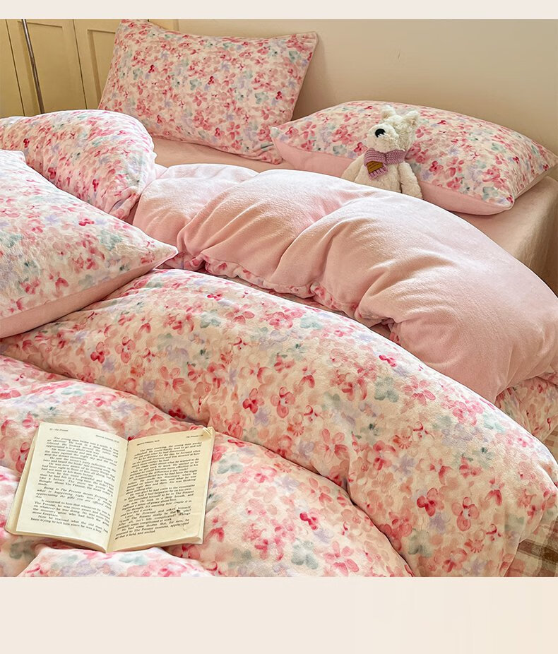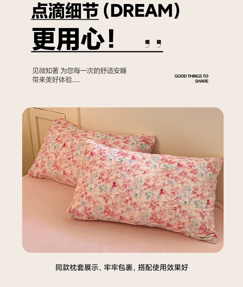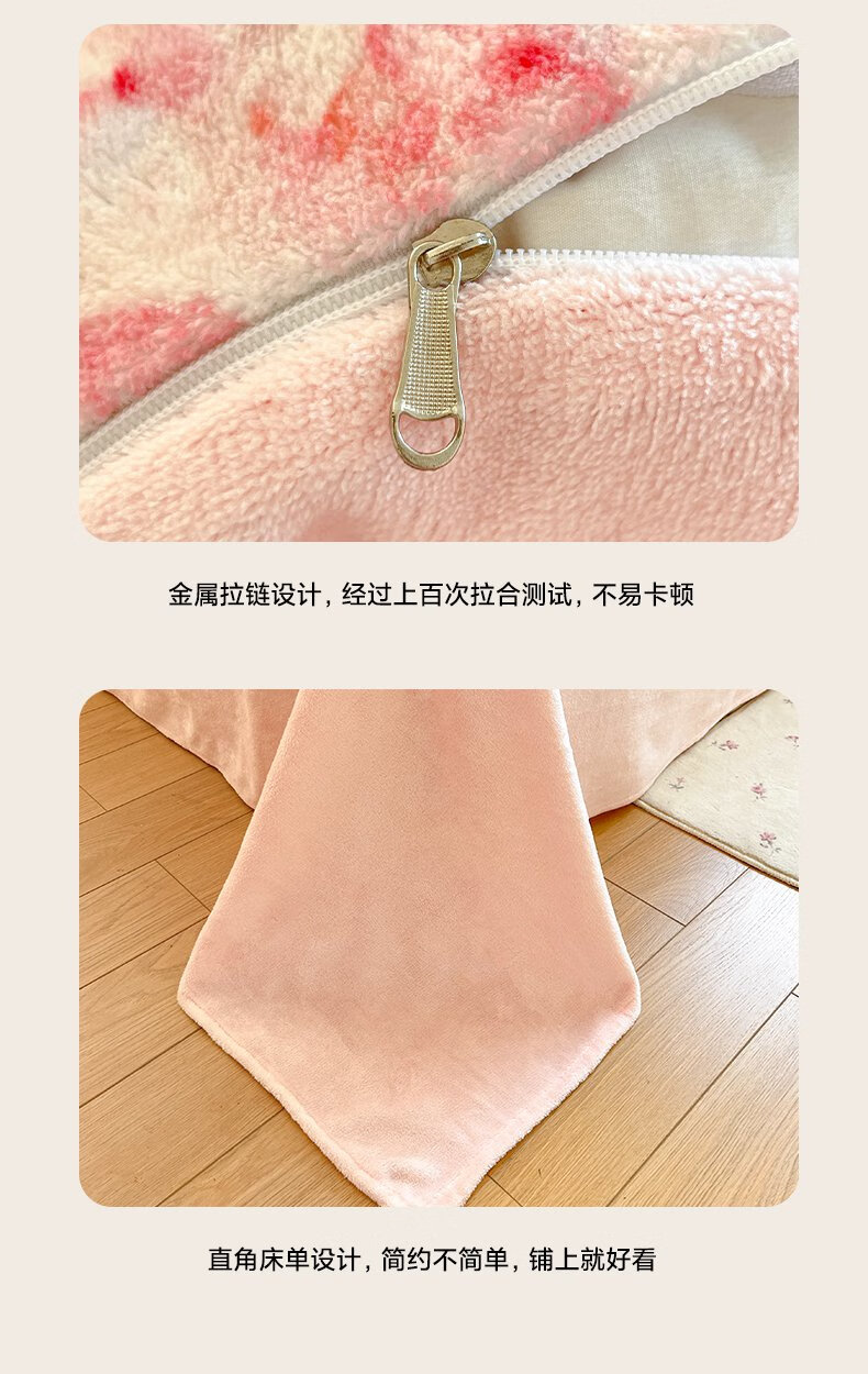 猫人(MiiOW)牛奶绒床上四件套 冬季加厚珊瑚绒床单被套罩单双人床品三件套 玫瑰粉黛 1.2 床单款 三件套(被套150*200cm)