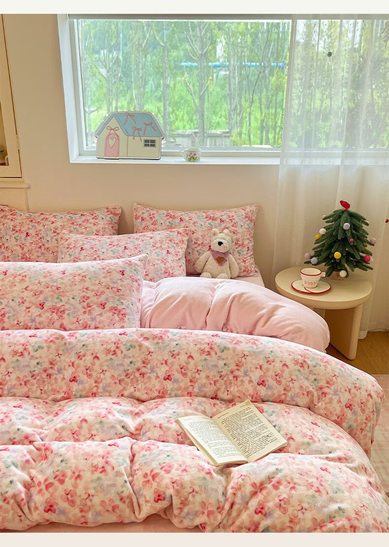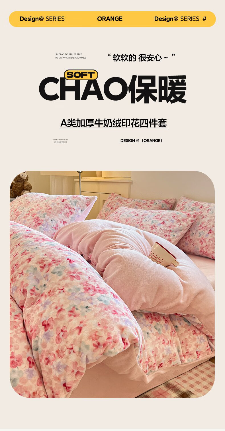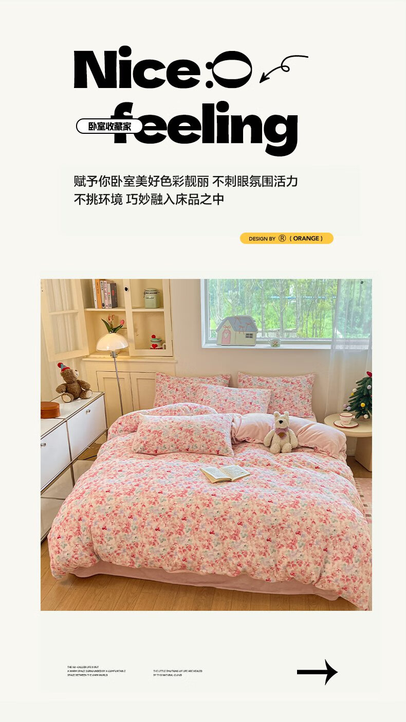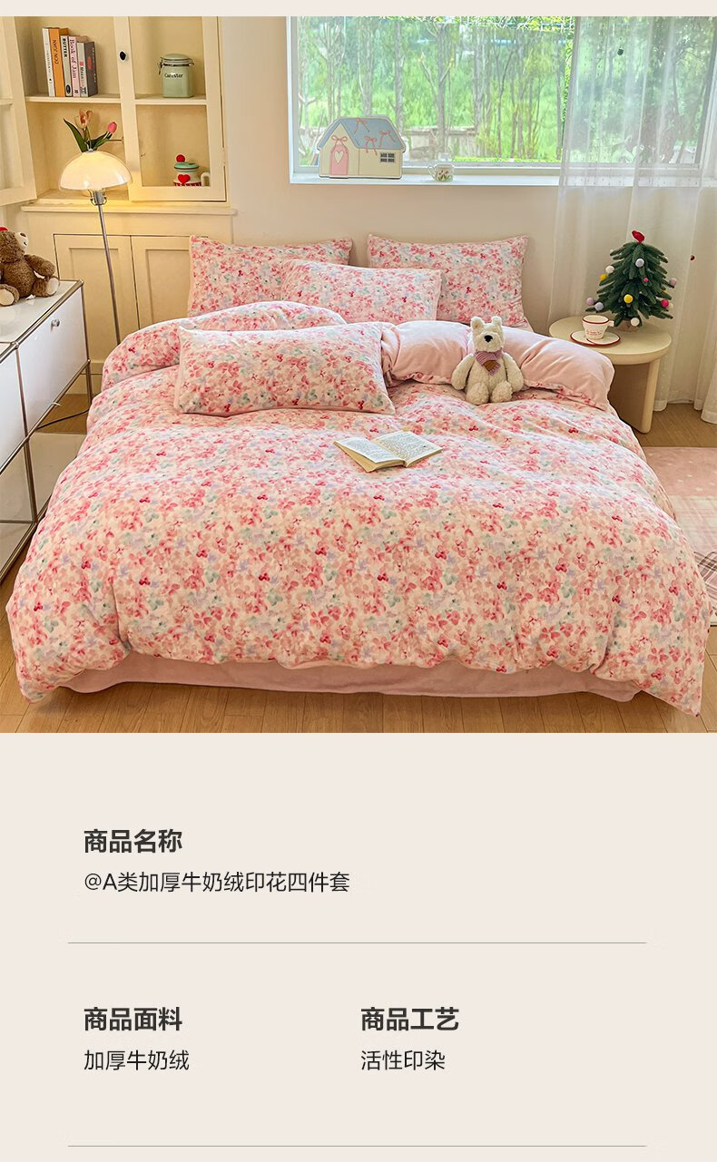 猫人(MiiOW)牛奶绒床上四件套 冬季加厚珊瑚绒床单被套罩单双人床品三件套 玫瑰粉黛 1.2 床单款 三件套(被套150*200cm)