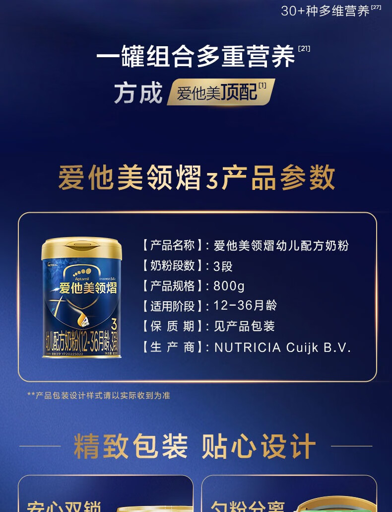 爱他美领熠3段800克原装进口婴幼儿奶粉 领熠3段800克*3罐 (咨询优惠)