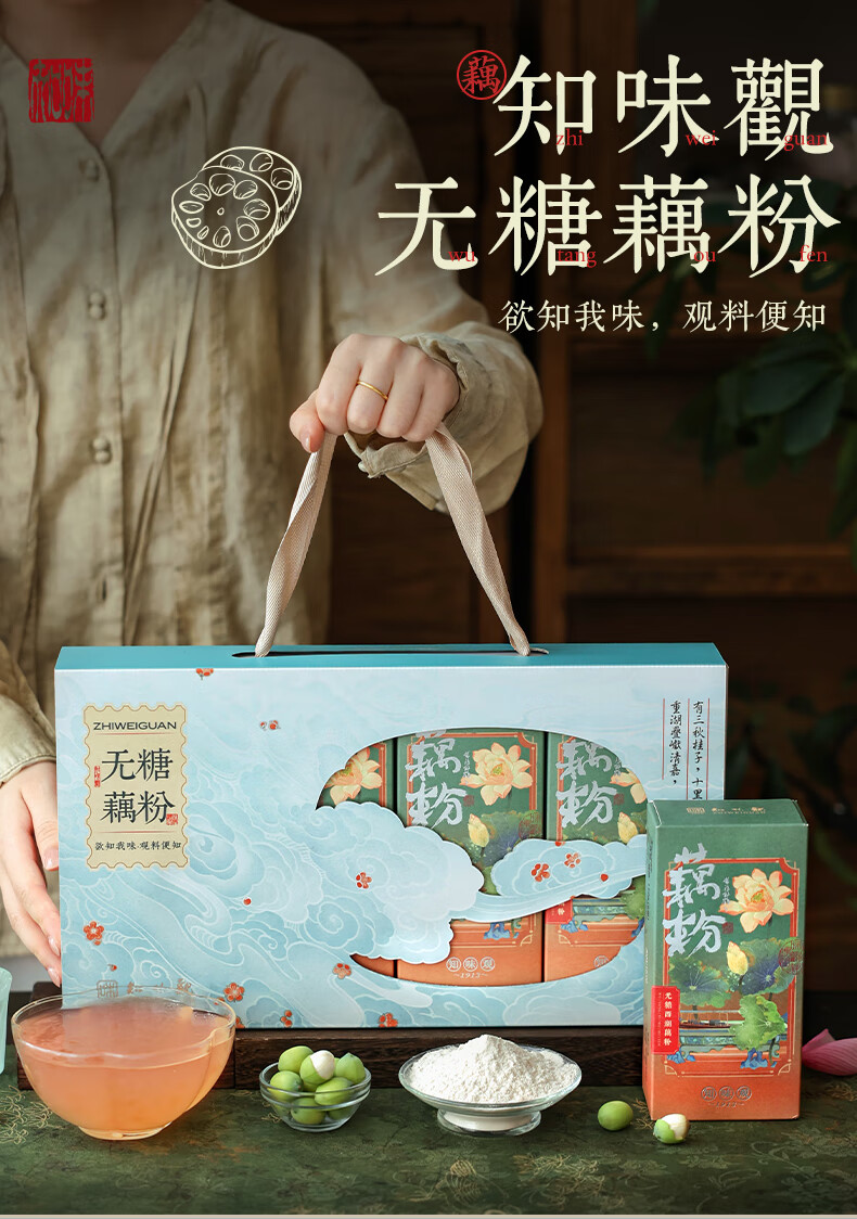 知味观无糖藕粉礼盒送礼杭州西湖特产早餐冲饮送长辈礼品600g