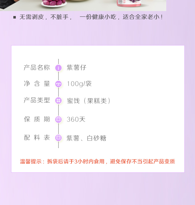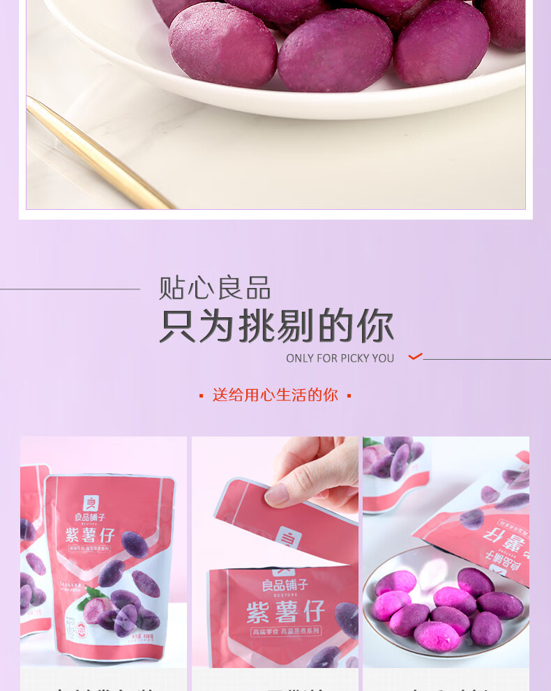 良品铺子香糯小紫薯紫薯仔紫薯干番薯干地瓜干蜜饯果干零食小吃休闲100g