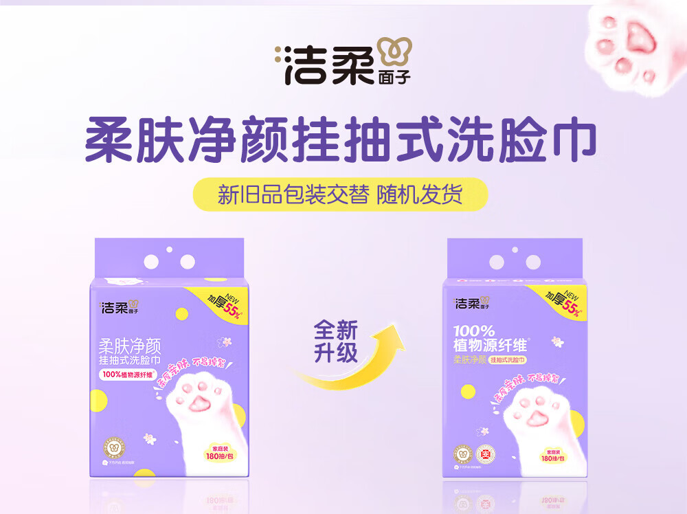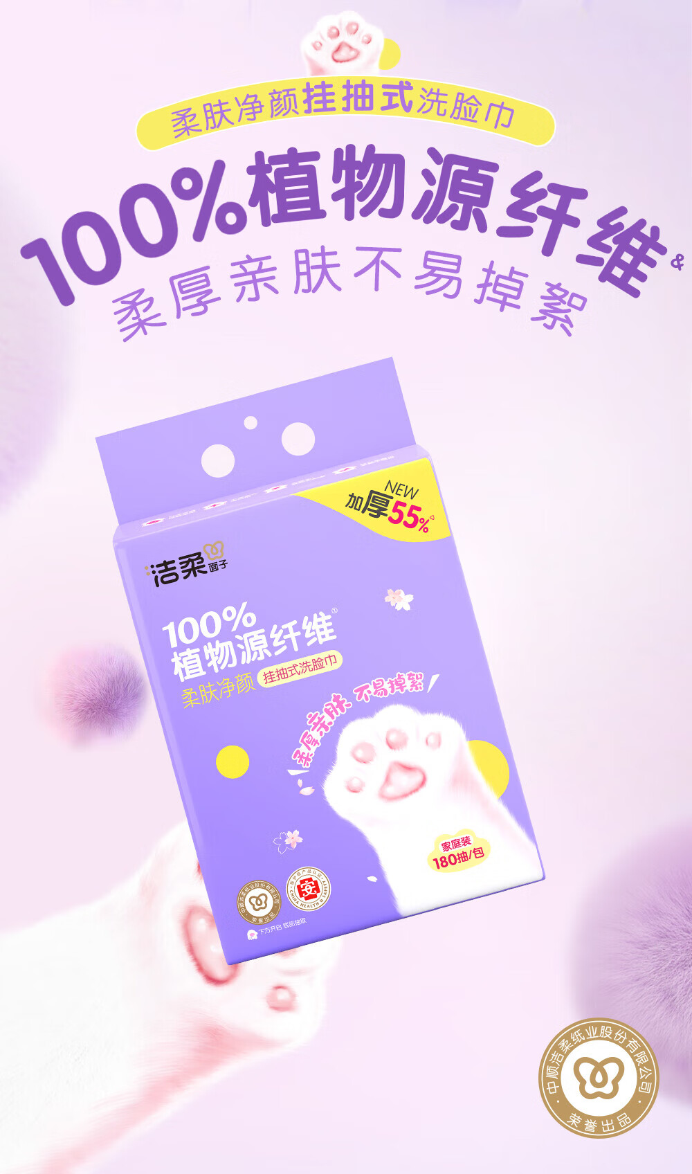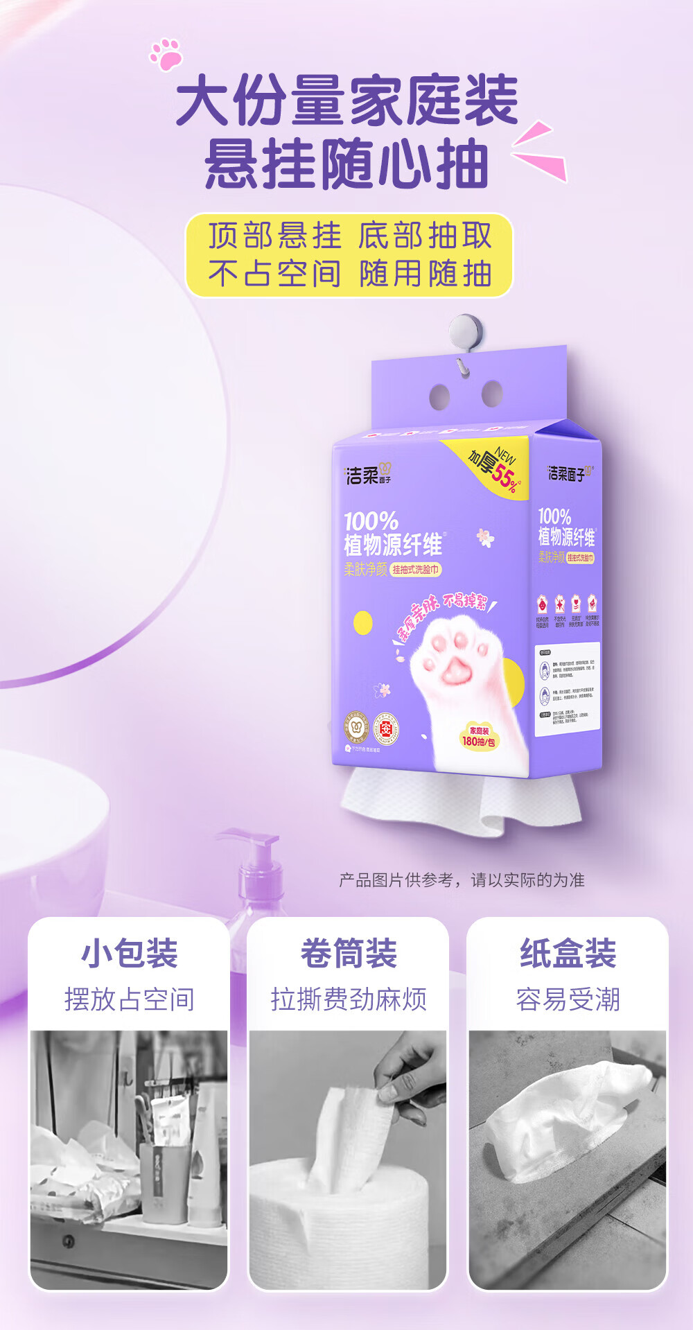 洁柔悬挂式洗脸巾棉柔巾擦脸巾一次性洁面巾洗面巾面巾纸洗面纸巾加厚 90片*1提