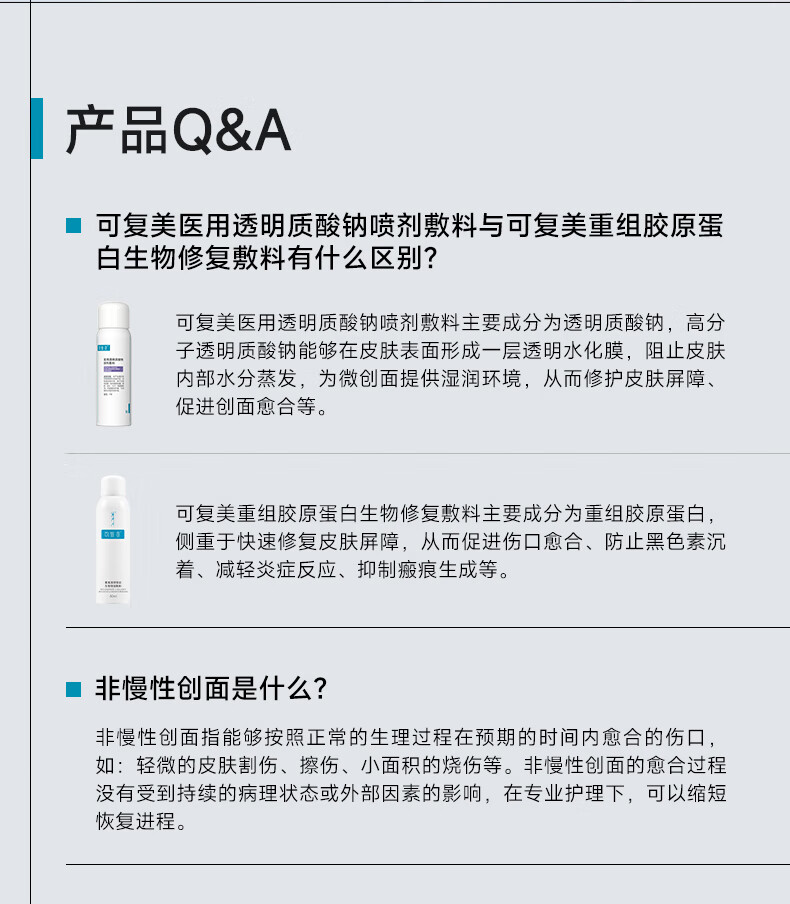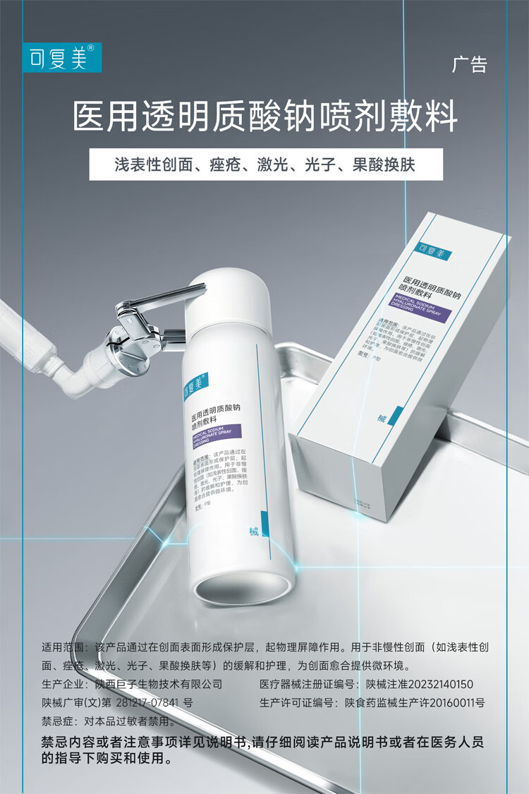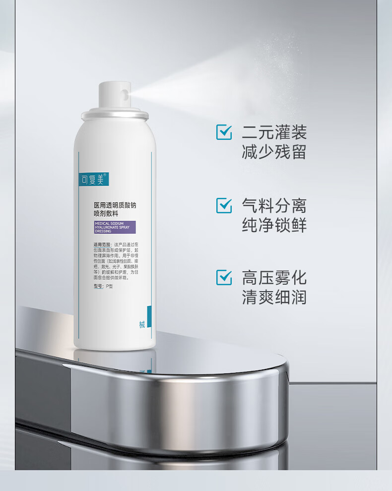 可复美医用透明质酸钠喷剂敷料P型喷雾 【50ml*6瓶】医用修复小白喷