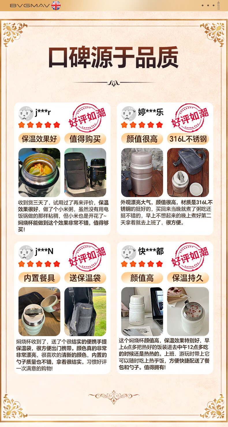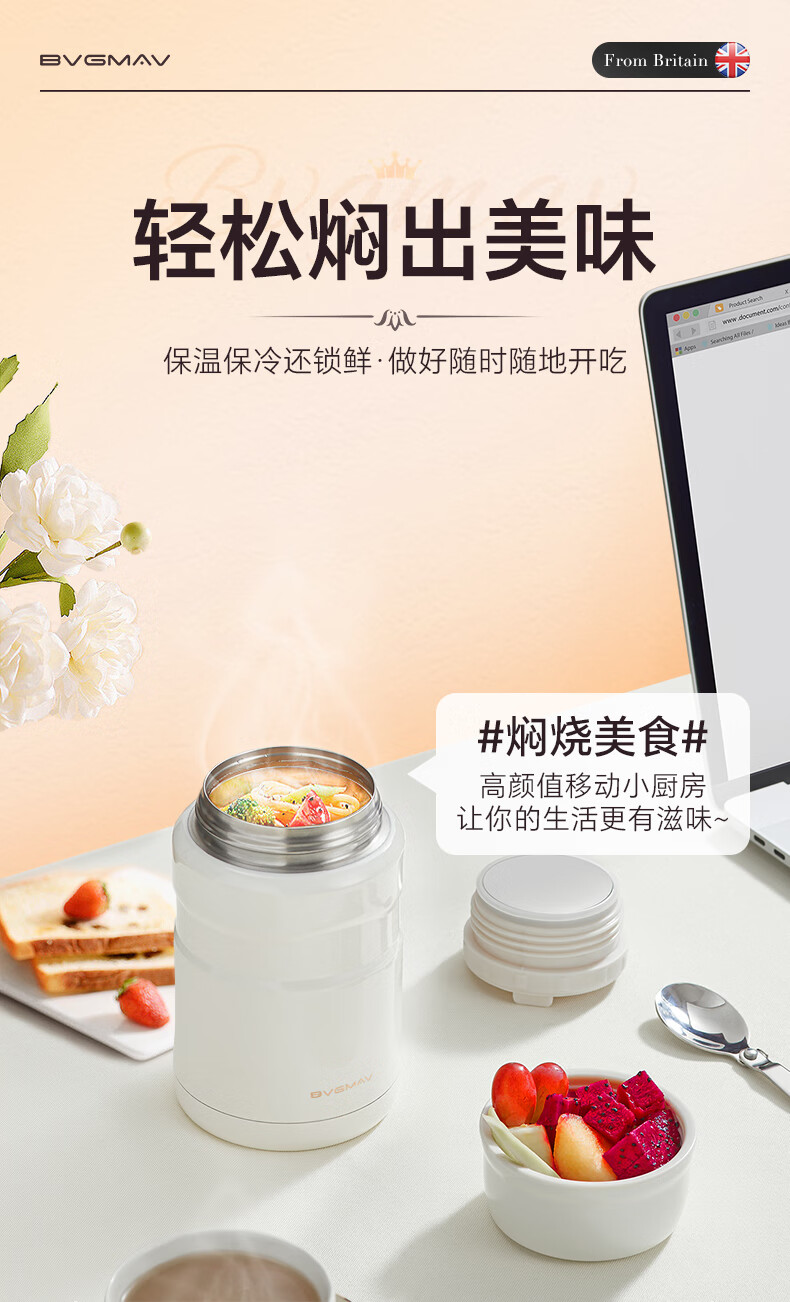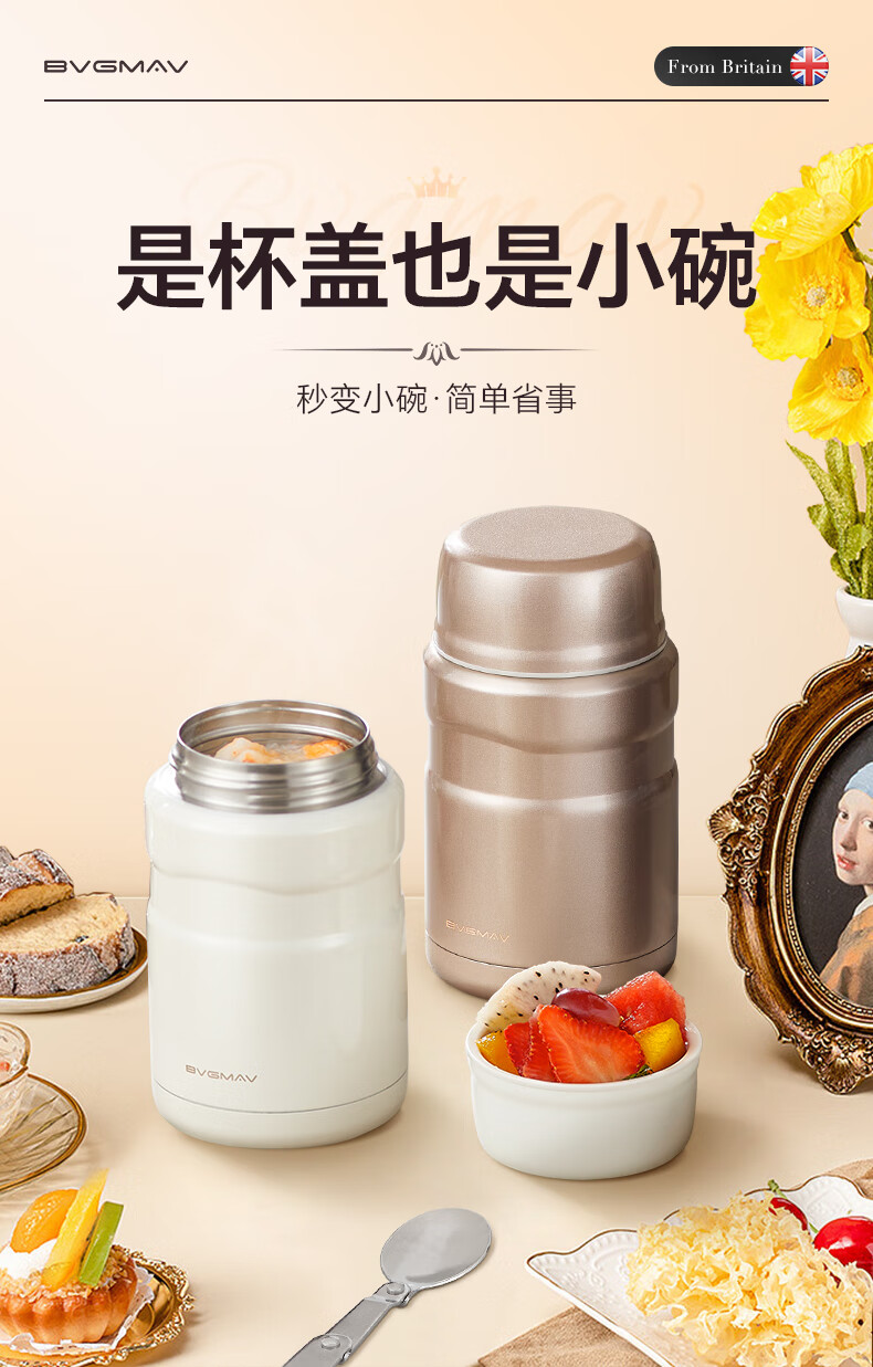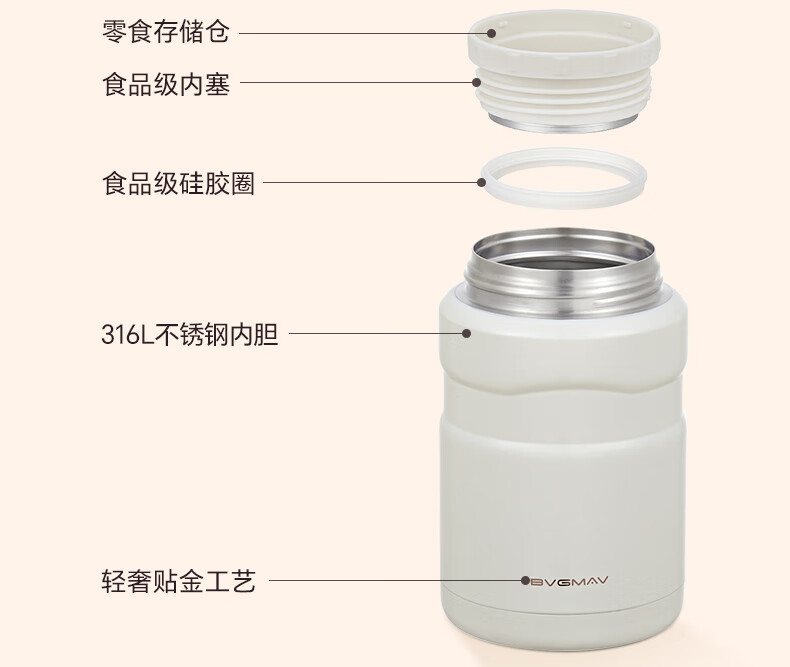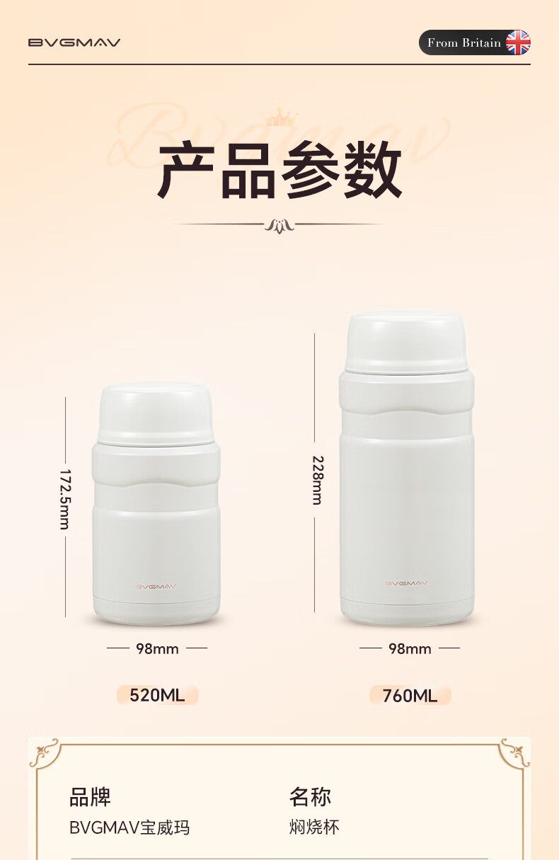 宝威玛(BVGMAV)焖烧杯大容量保温饭盒316高档焖烧壶燕窝银耳羹杯焖烧罐保温饭盒 【买一送三】雅士白520ml
