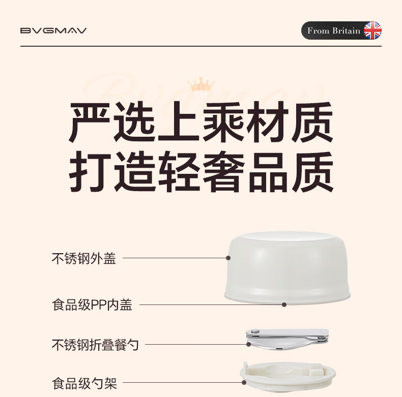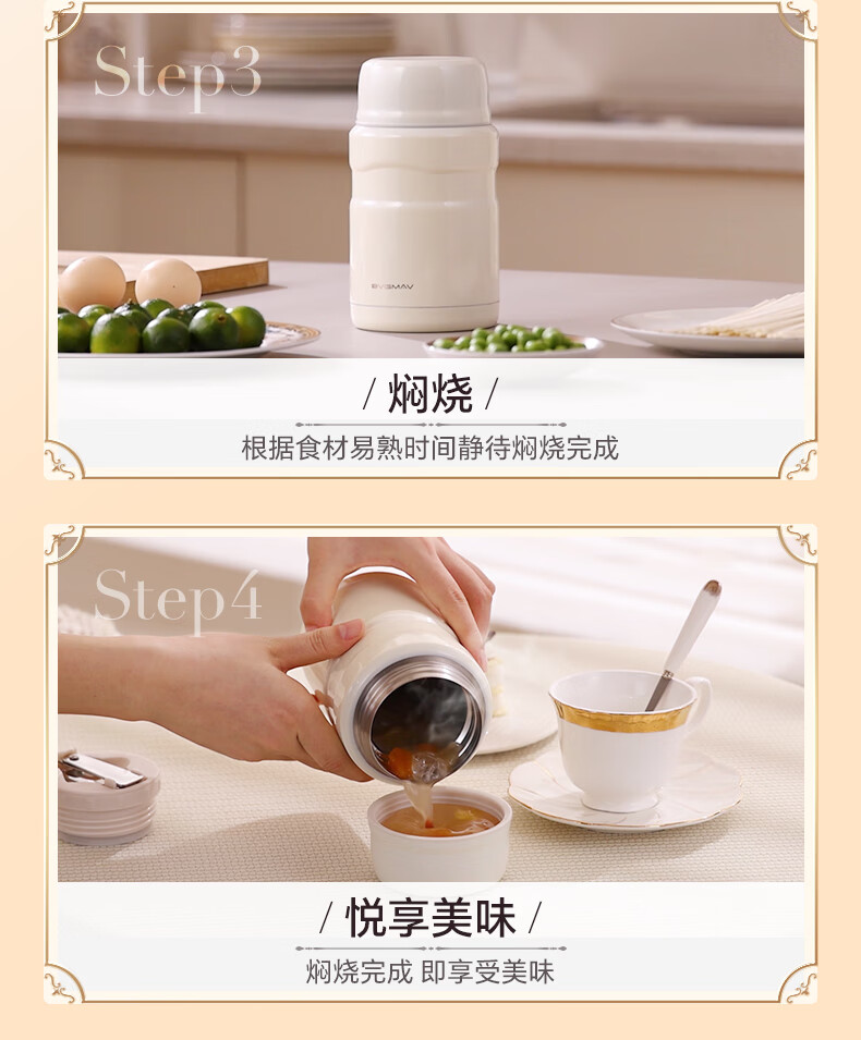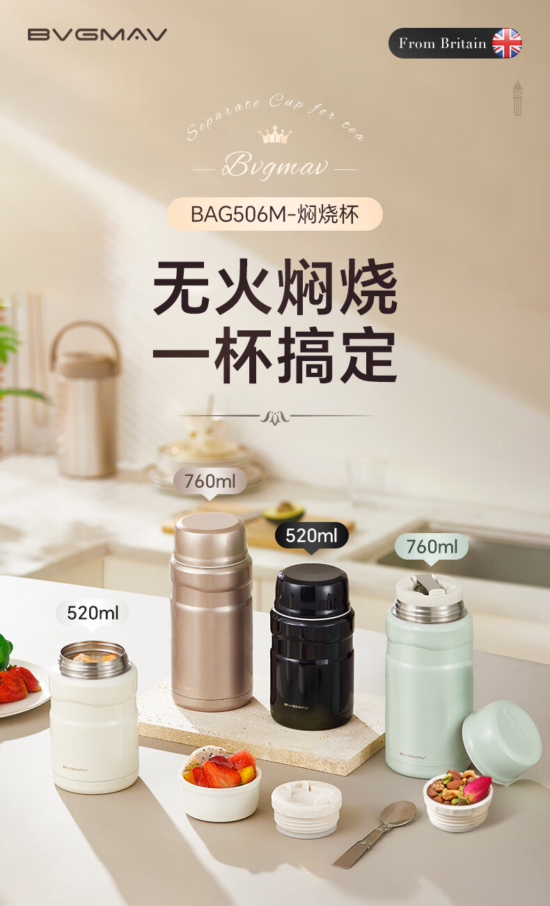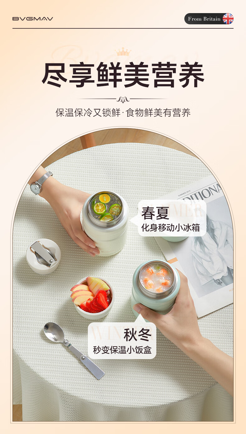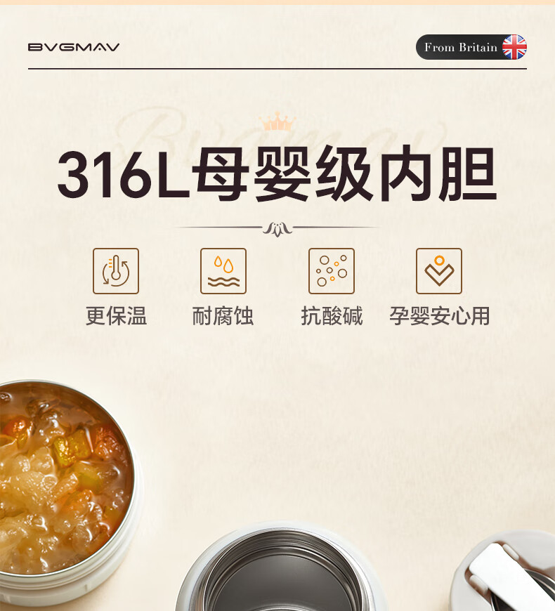 宝威玛(BVGMAV)焖烧杯大容量保温饭盒316高档焖烧壶燕窝银耳羹杯焖烧罐保温饭盒 【买一送三】雅士白520ml