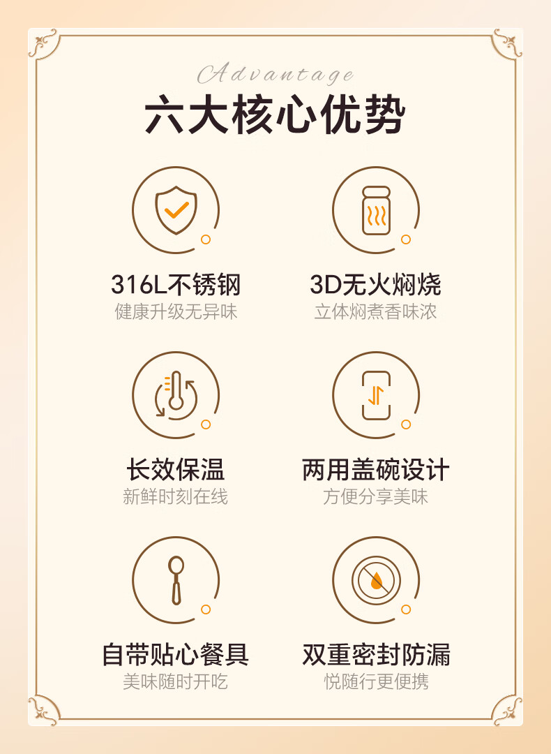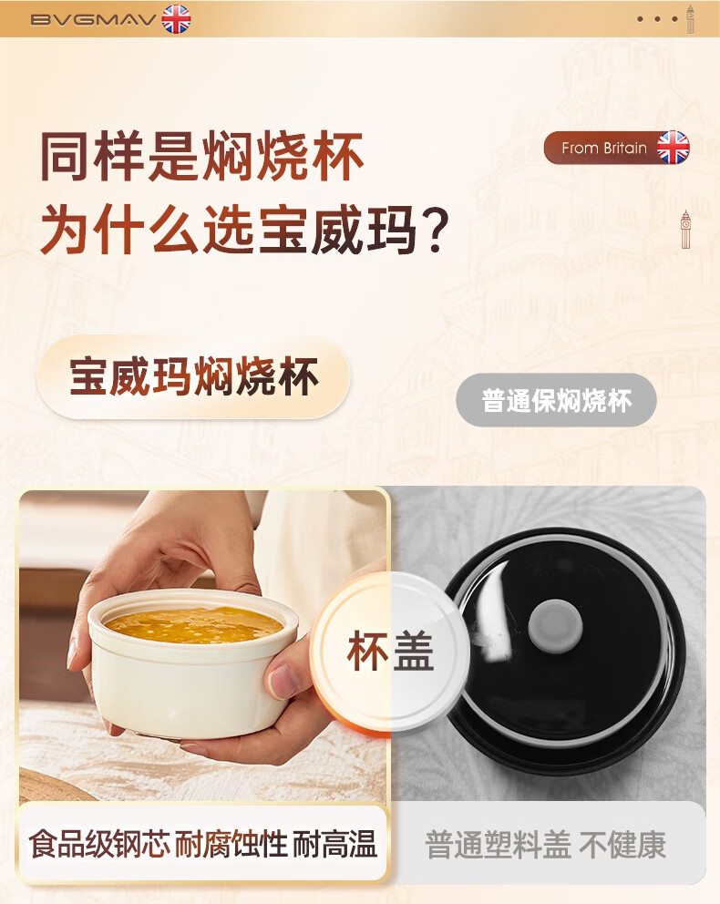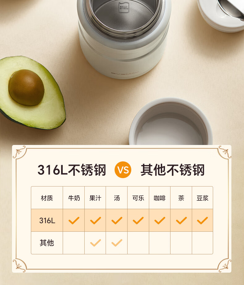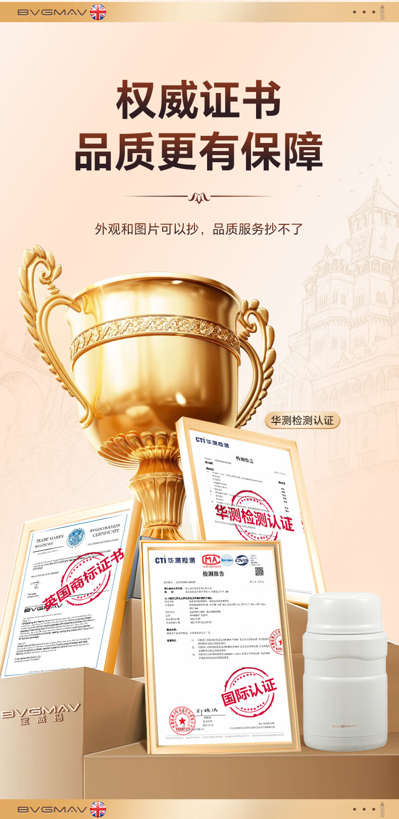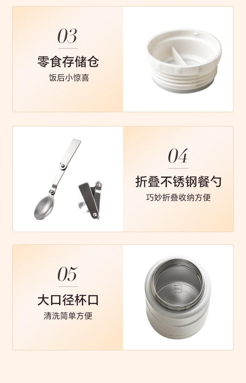 宝威玛(BVGMAV)焖烧杯大容量保温饭盒316高档焖烧壶燕窝银耳羹杯焖烧罐保温饭盒 【买一送三】雅士白520ml