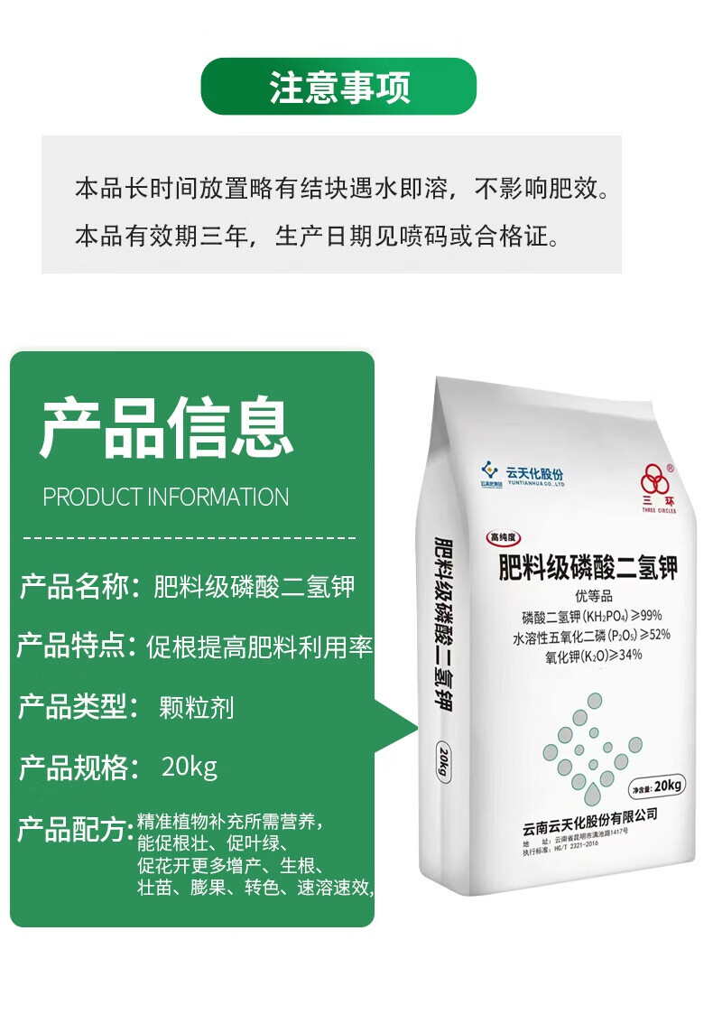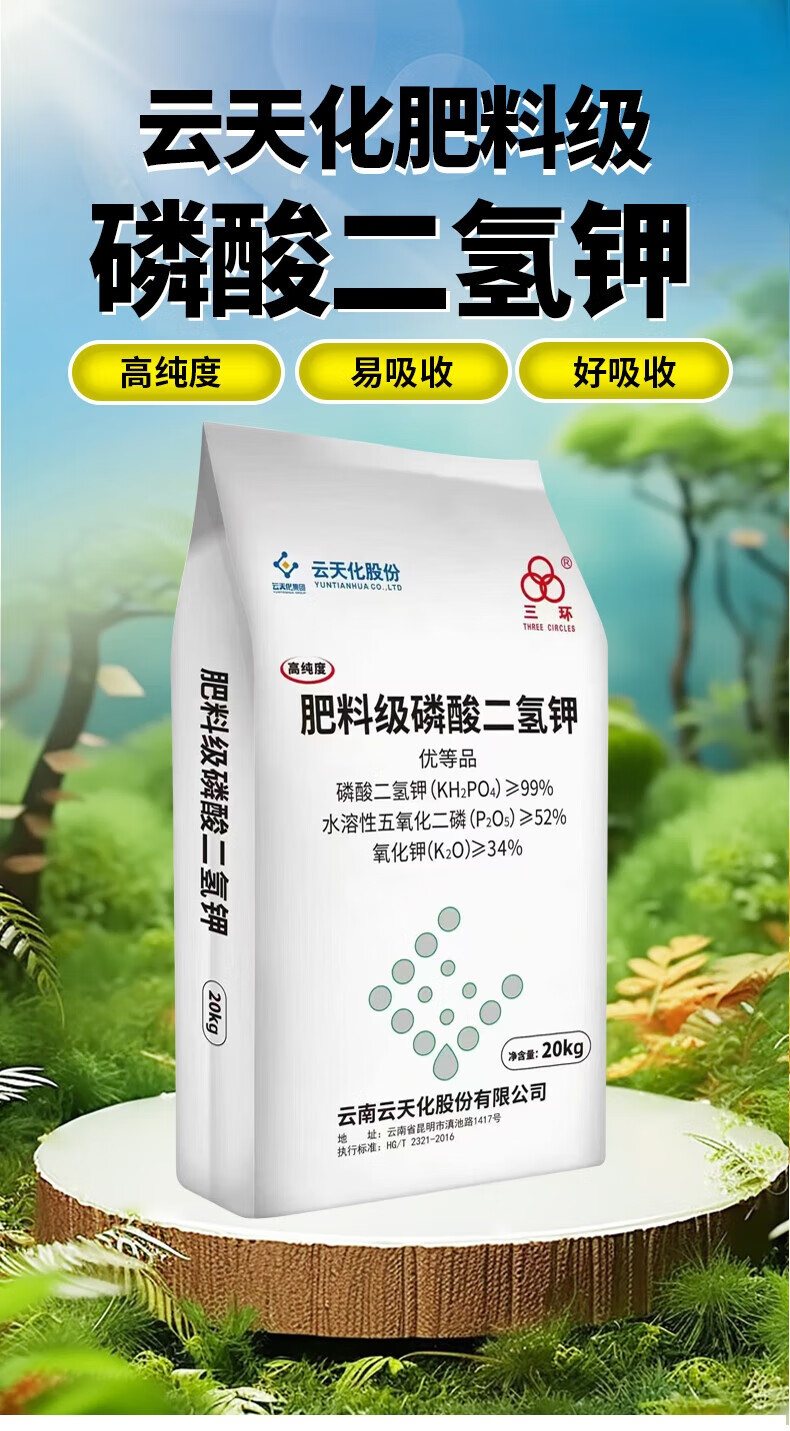 云天化99%特级飞防磷酸二氢钾农用叶面肥高纯度高磷钾肥水溶肥通用