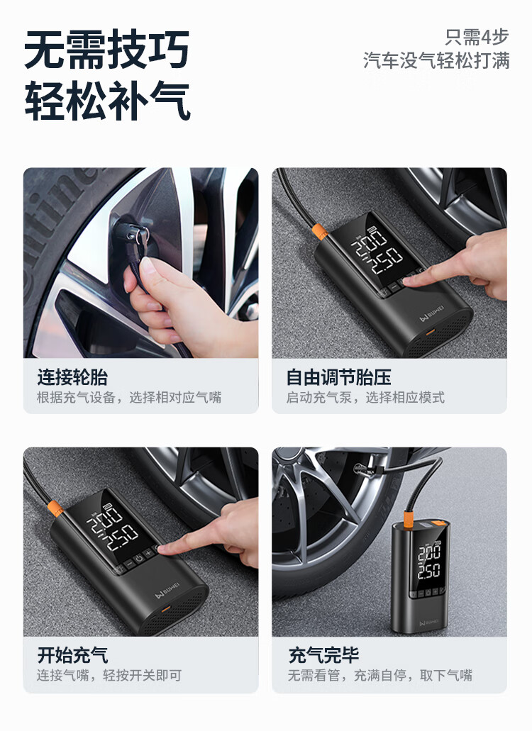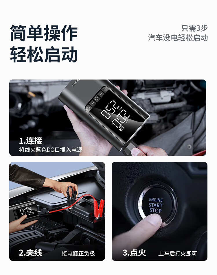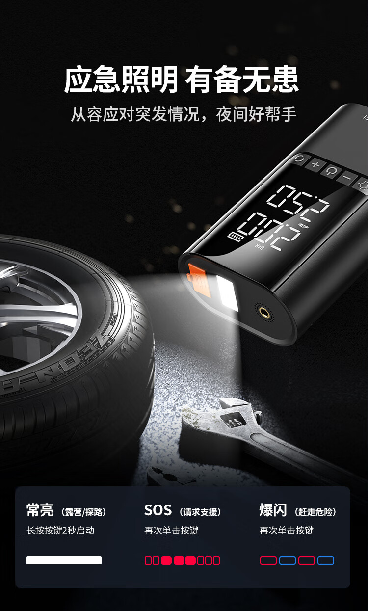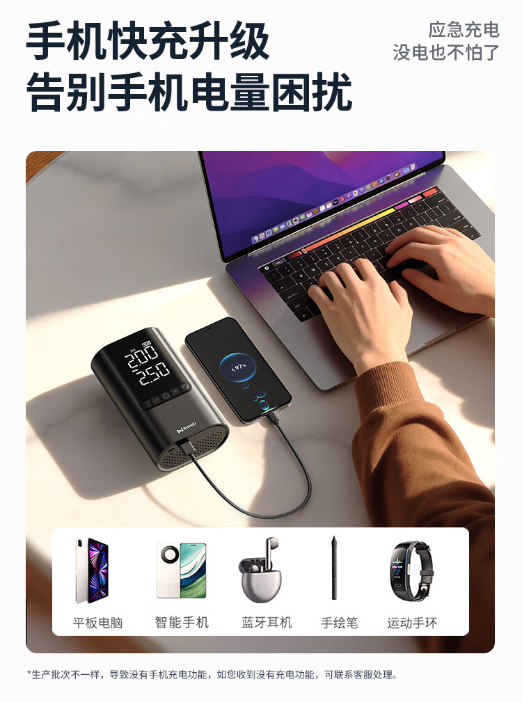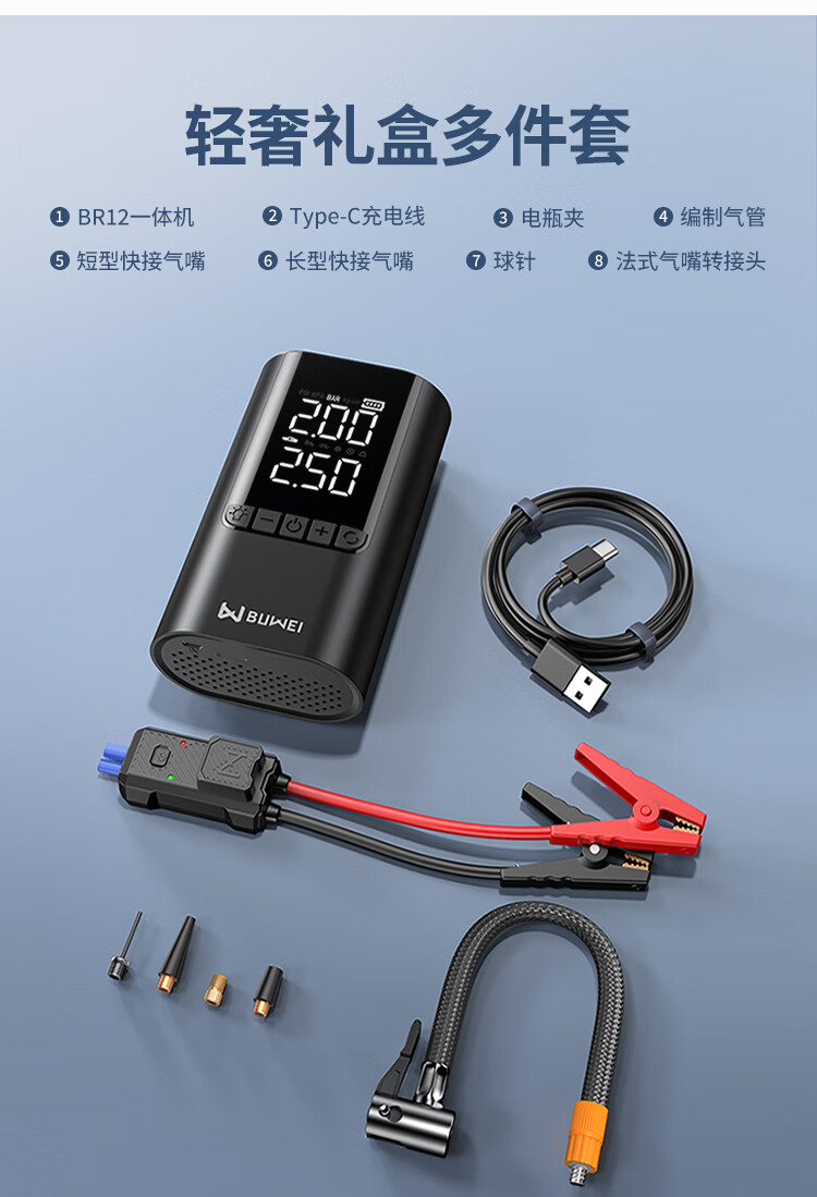 埠威BUWEI【3C认证】汽车应急启动电源充气泵一体机搭电宝轮胎打气泵电瓶电车强启12V打火照明户外电源