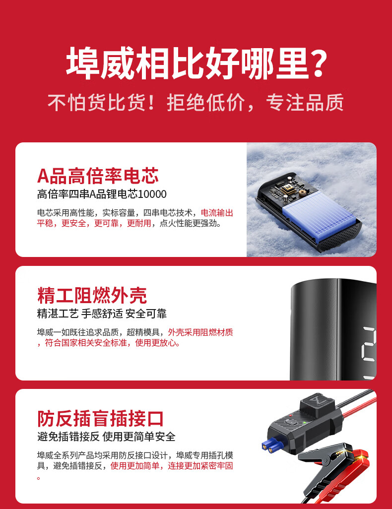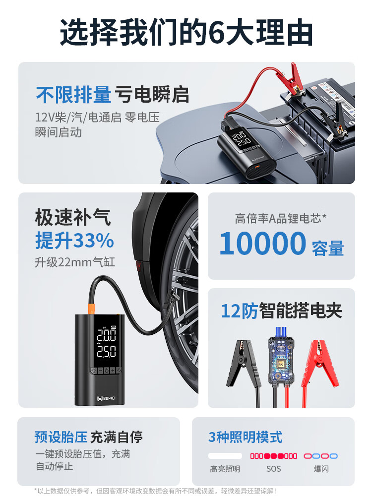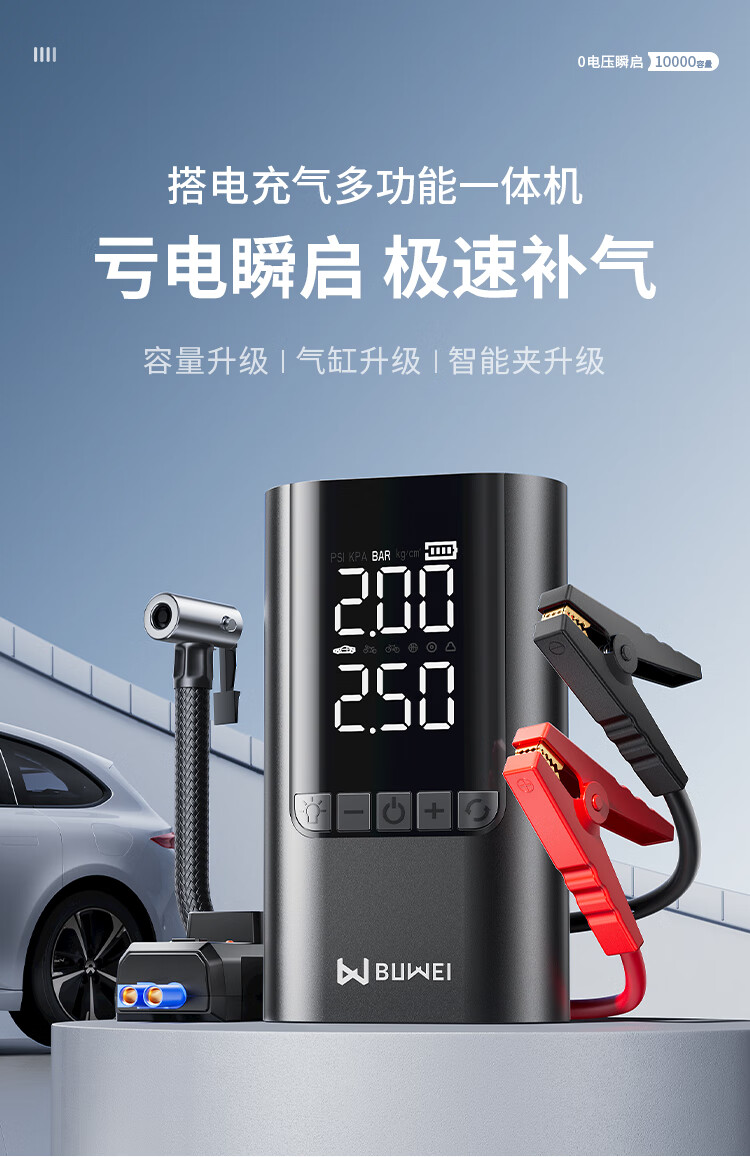 埠威BUWEI汽车应急启动电源充气泵一体机车载电瓶搭电宝打气搭电户外充电宝移动电源打火10000容量