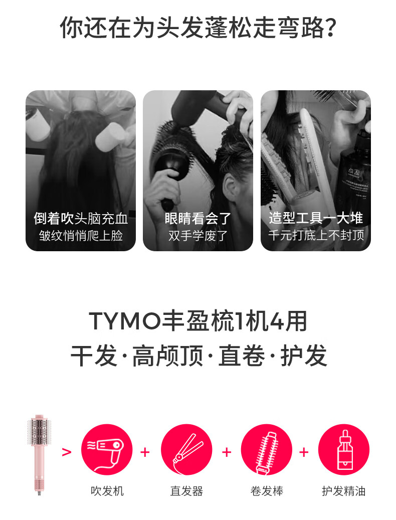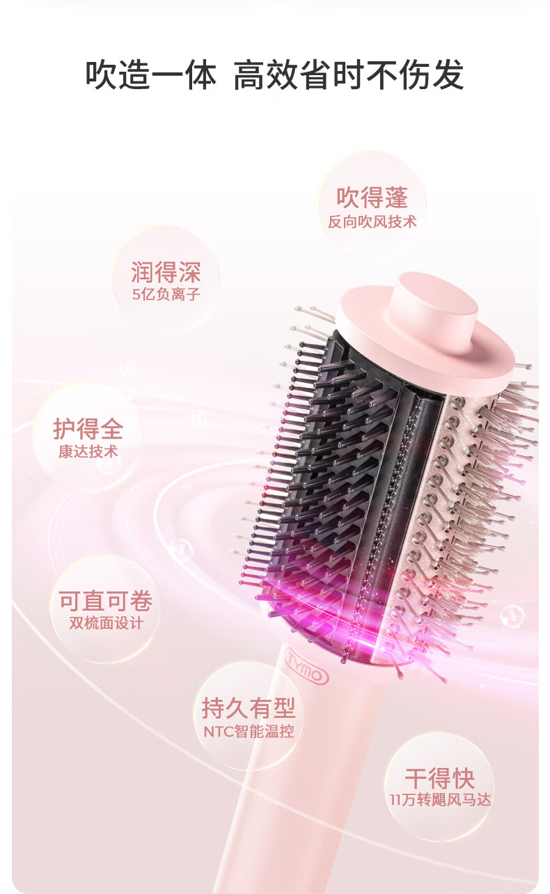 TYMO第3代丰盈梳直发吹风机吹干直发二合一湿发造型蓬松高颅顶气流造型直发梳夹板 情人节礼物送女生
