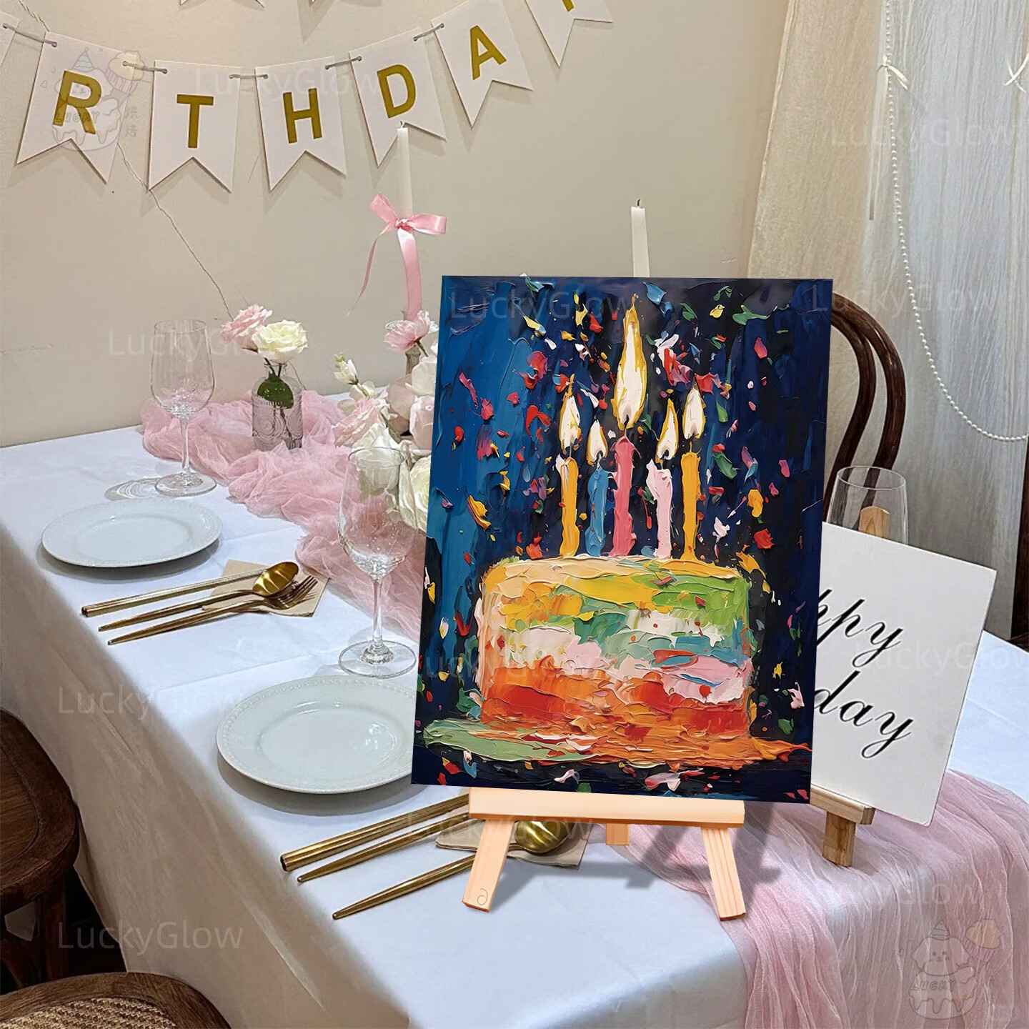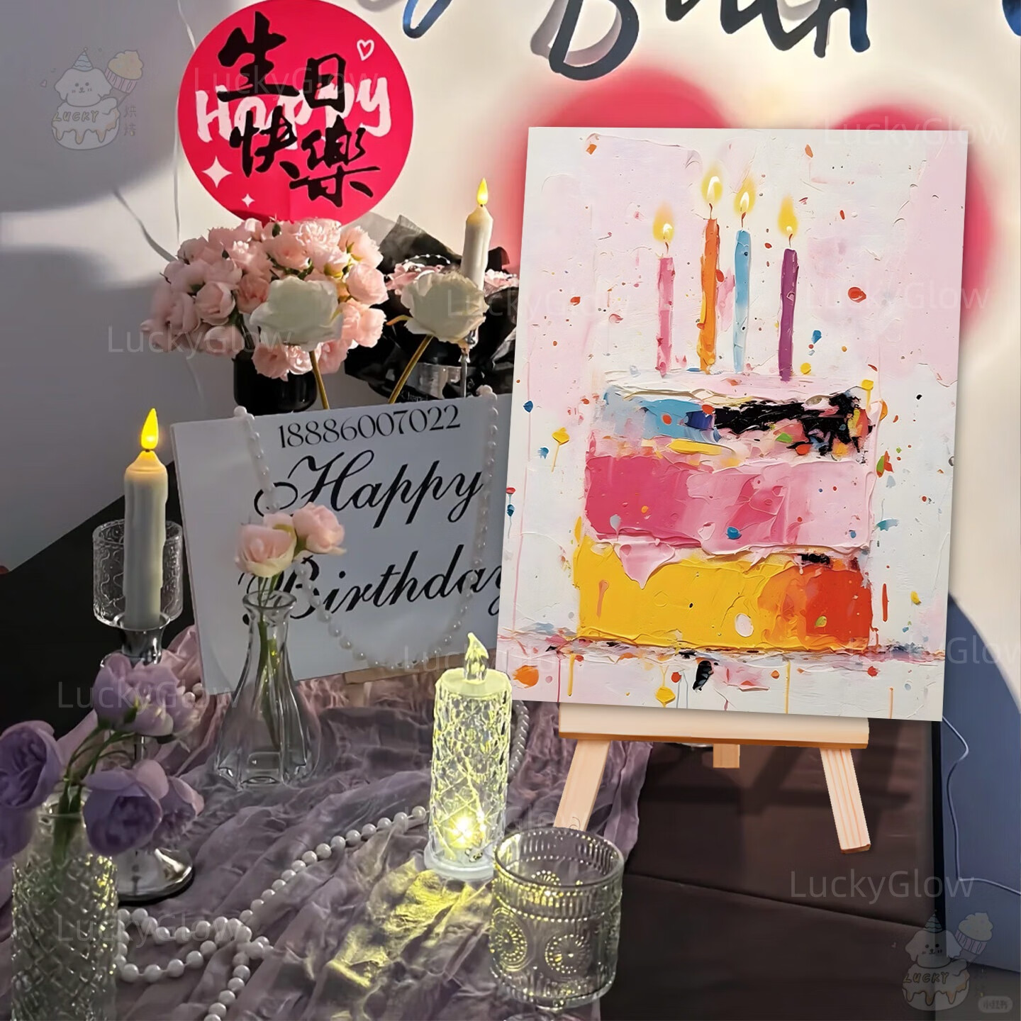 皇莉诗生日布置装饰桌面kt板创意油画蛋糕摆件派对餐厅桌拍照道具装饰品 生日桌面摆件01 送木架 无规格