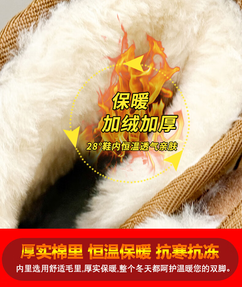 沙驰(SATCHI)男鞋【羊毛皮】防寒保暖雪地靴秋冬棉鞋舒适轻底休闲鞋男靴 卡其(H12A9G0320) 加绒 38 欧码(选小一码)