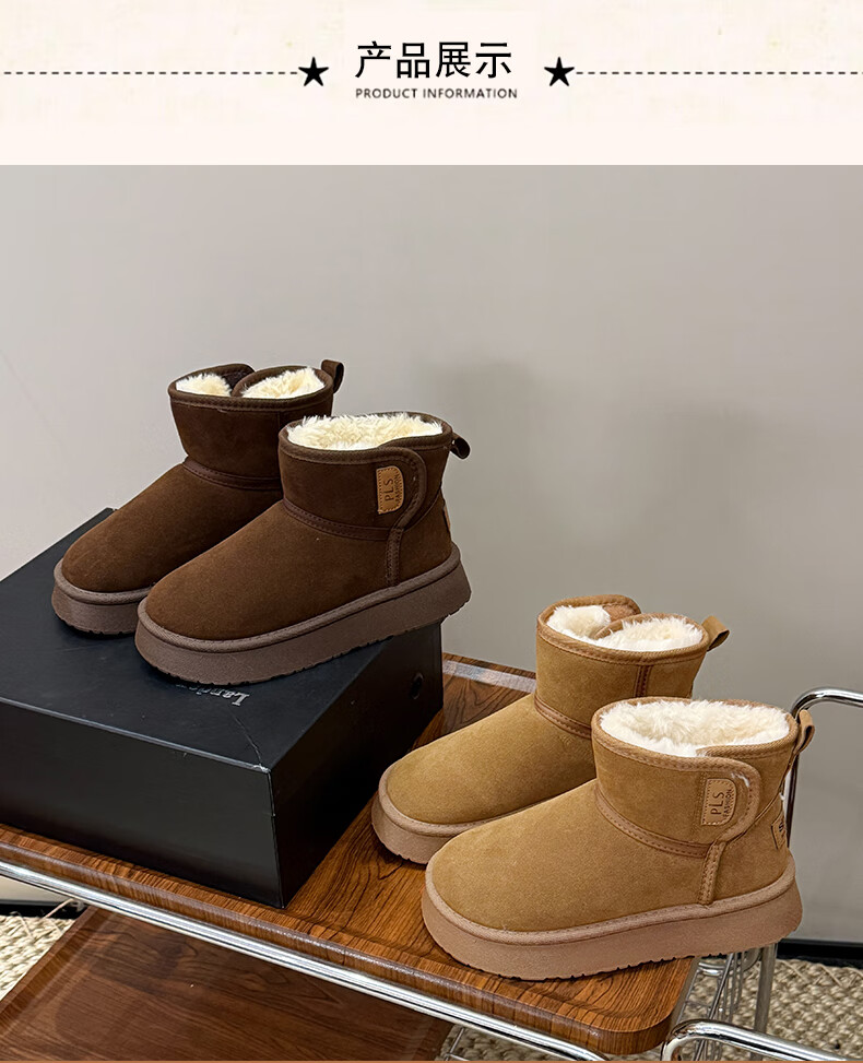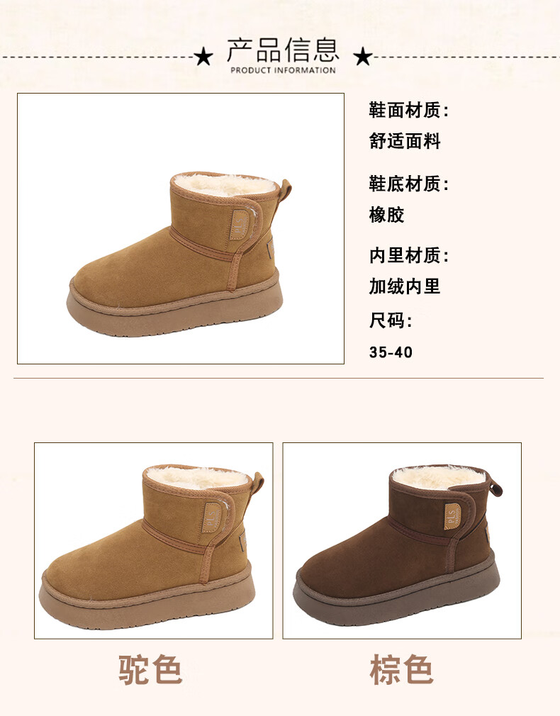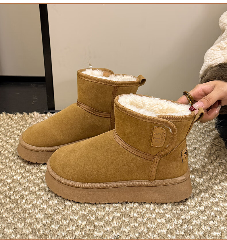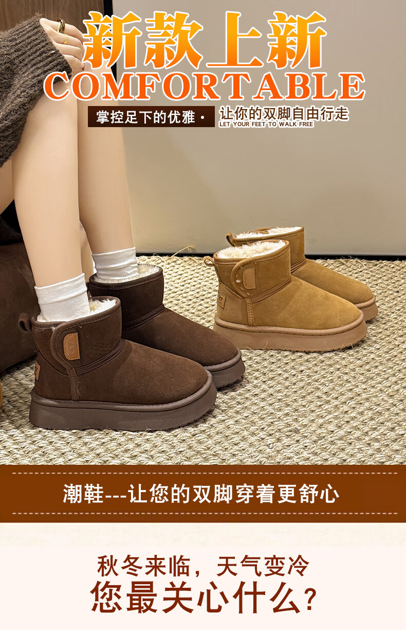 星期六毛绒雪地靴女款冬季加绒2025新款女鞋东北短筒棉鞋厚底保暖面包鞋 卡其色 【冬季保暖】跟高3cm 38