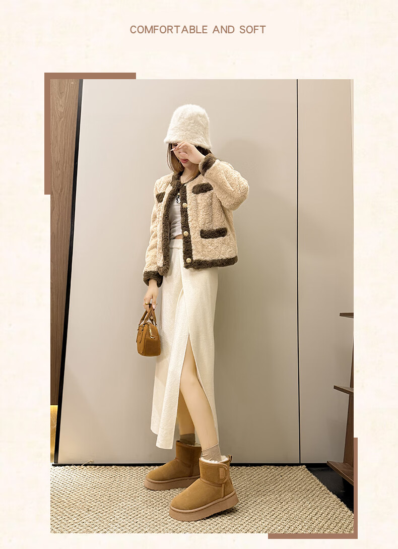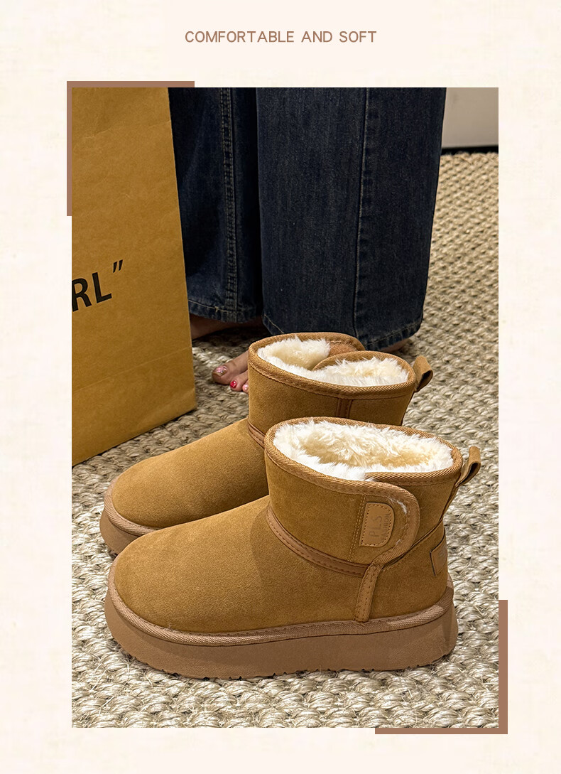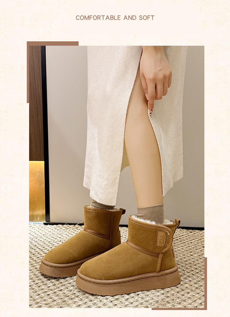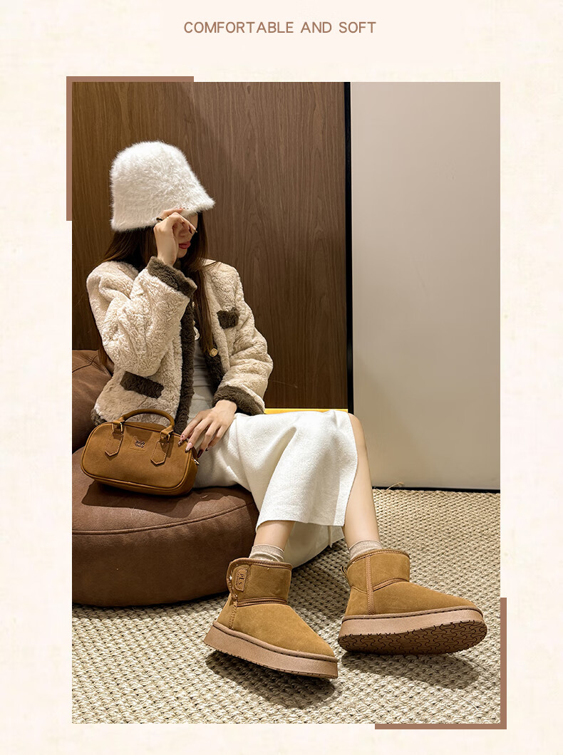 星期六毛绒雪地靴女款冬季加绒2025新款女鞋东北短筒棉鞋厚底保暖面包鞋 卡其色 【冬季保暖】跟高3cm 38