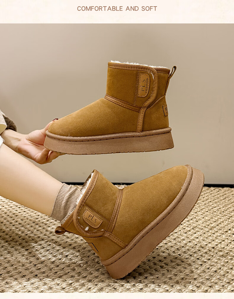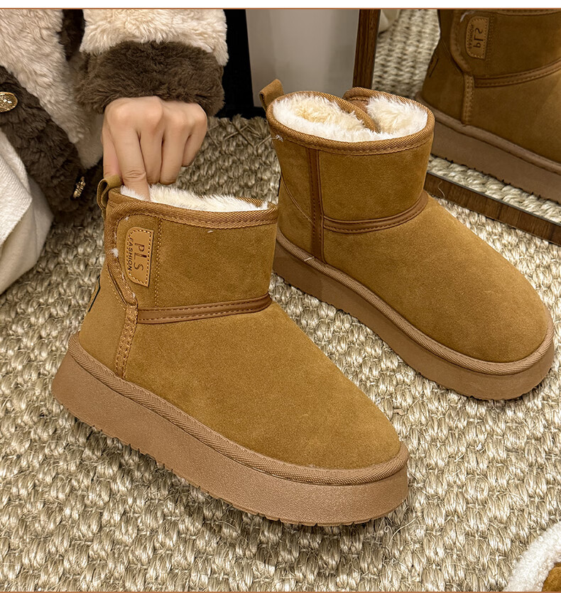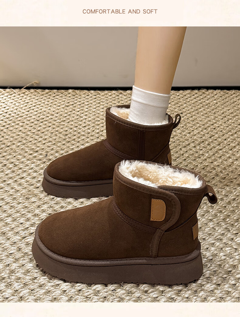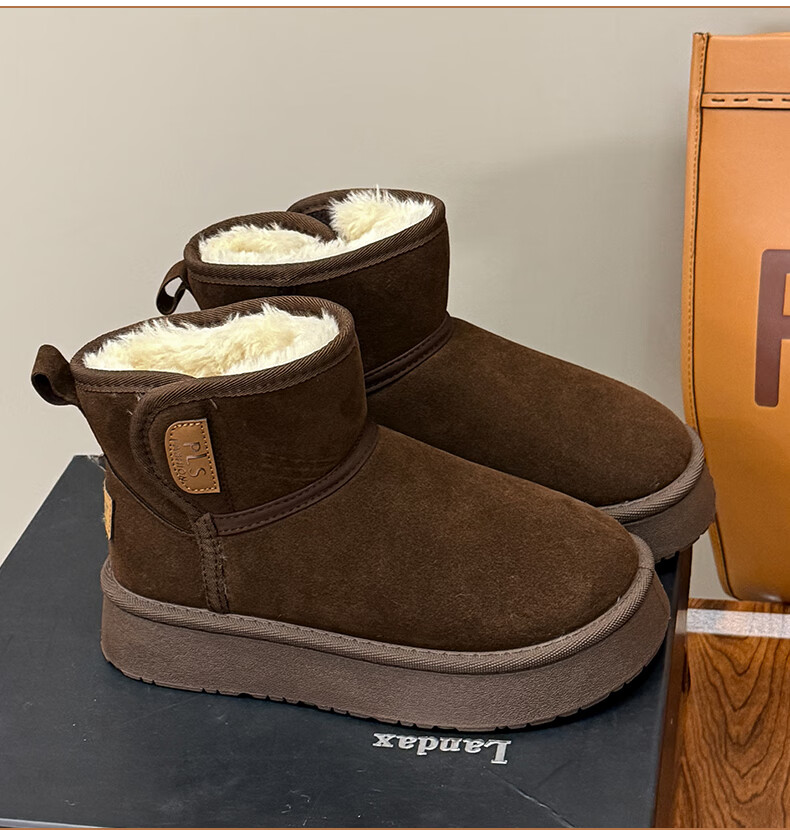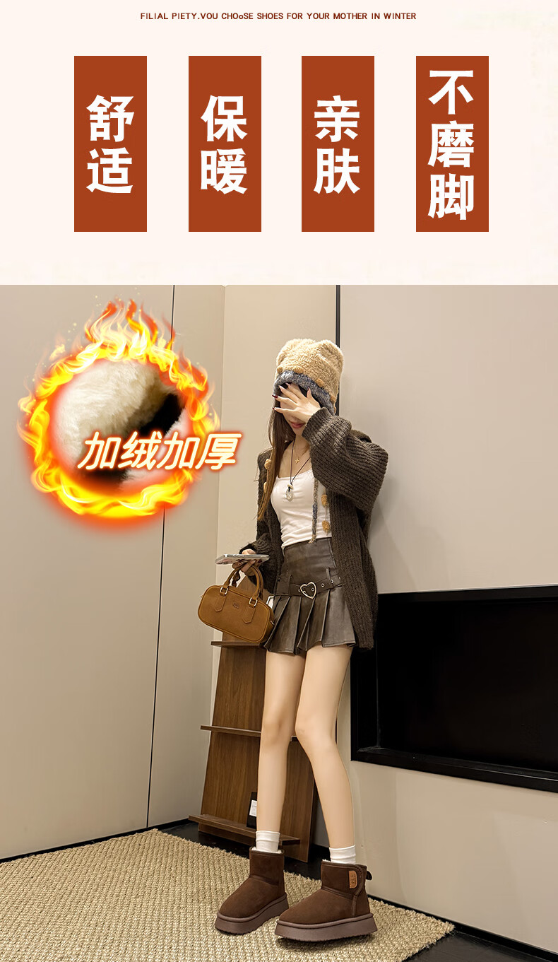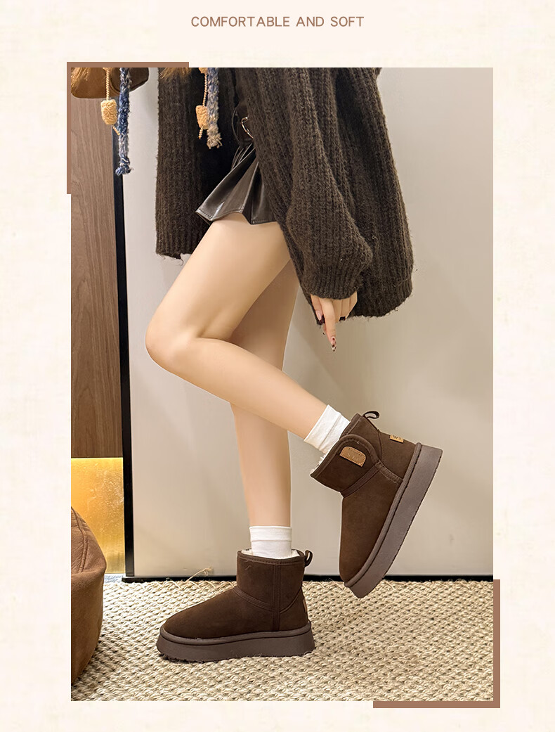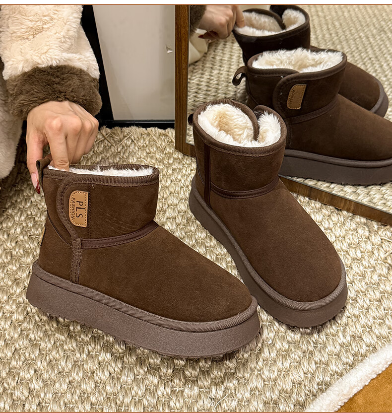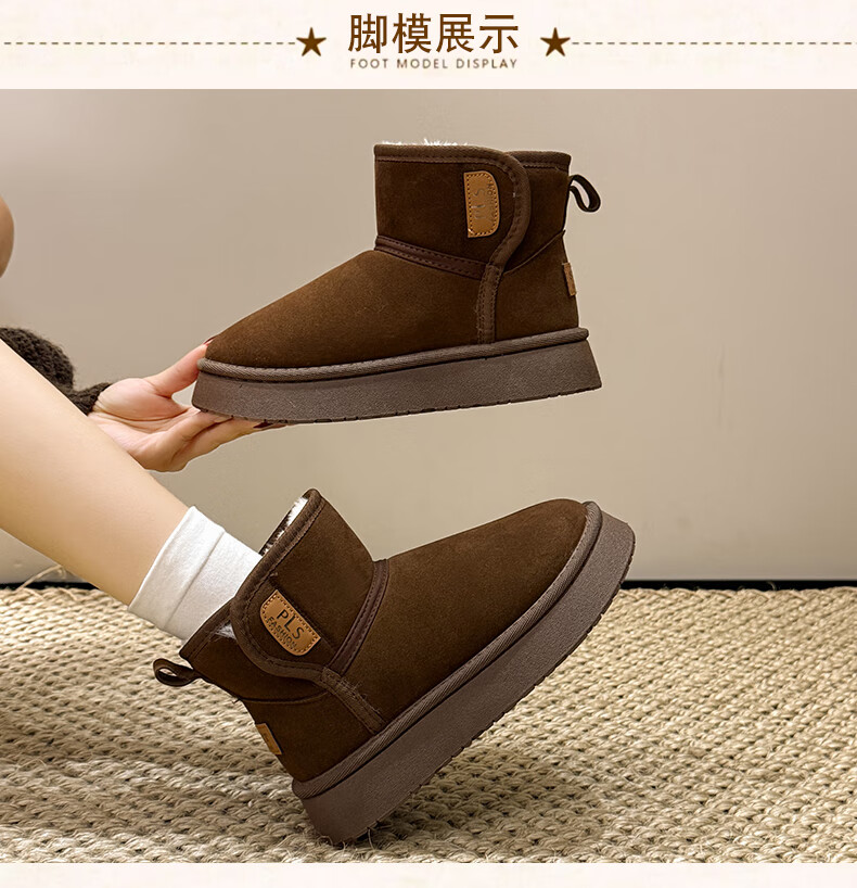 星期六厚底雪地靴女2025新款冬季加绒加厚面包鞋防滑短靴保暖棉鞋 咖啡色 【加绒保暖】 35