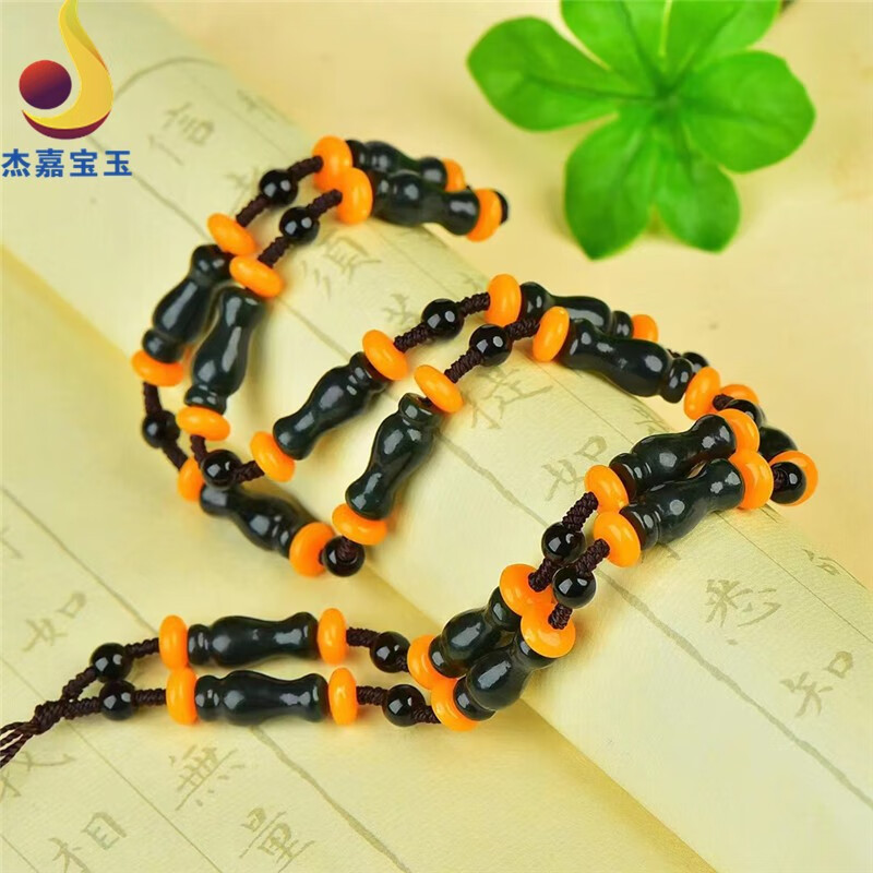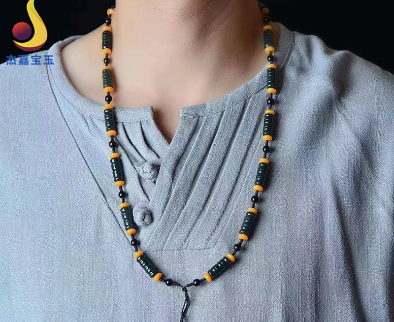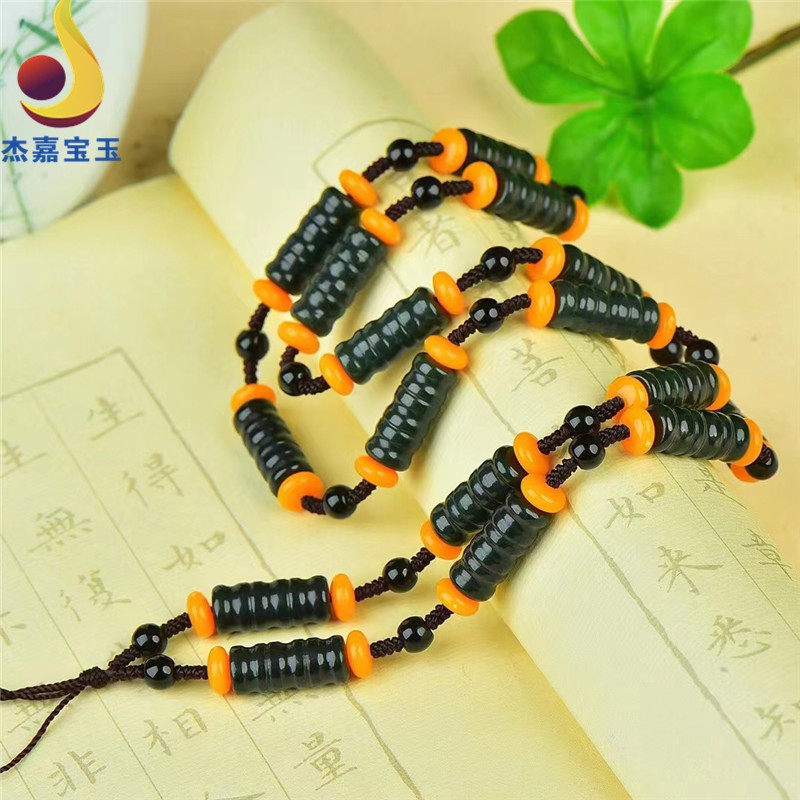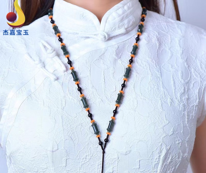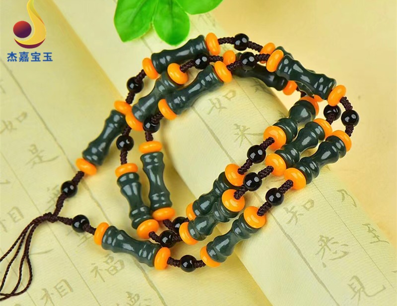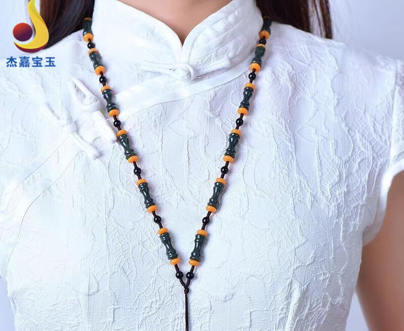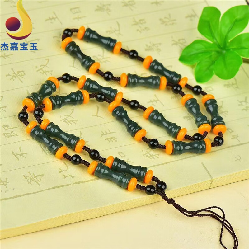 杰嘉宝玉 原创新款手工编织和田青玉挂绳珠子项链竹节男女款礼物带证书 挂绳1款+证书+精美包装