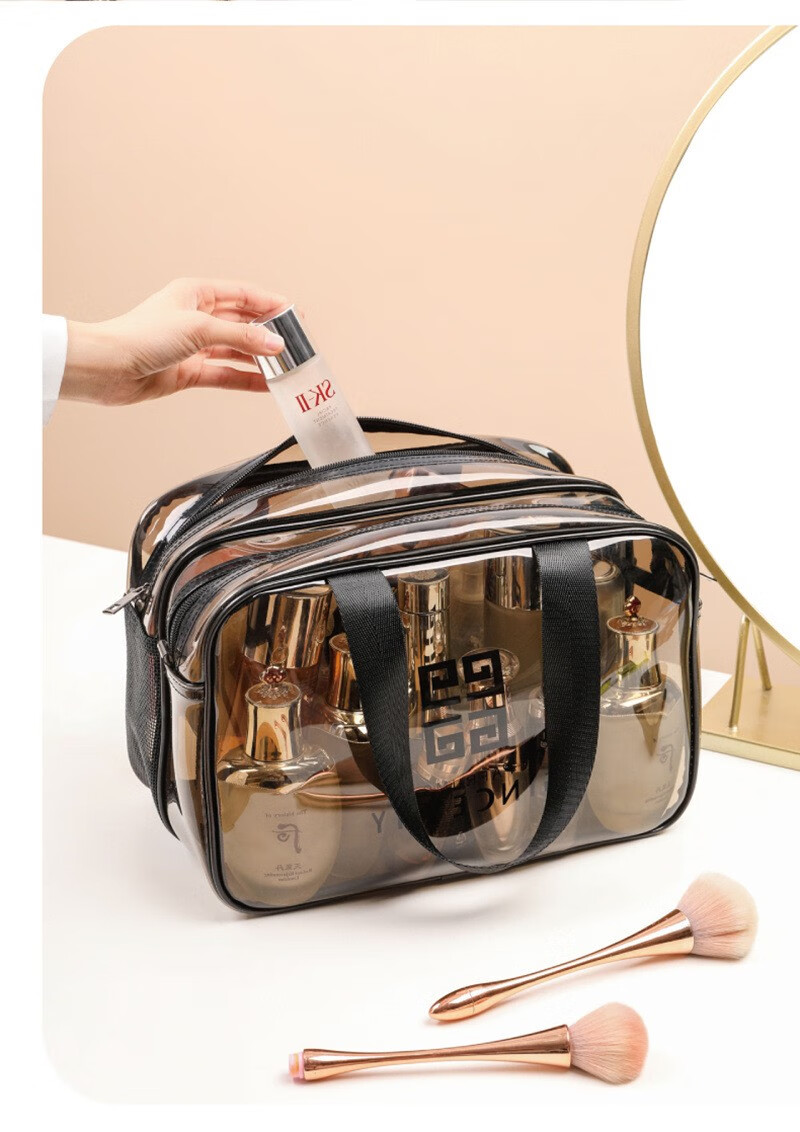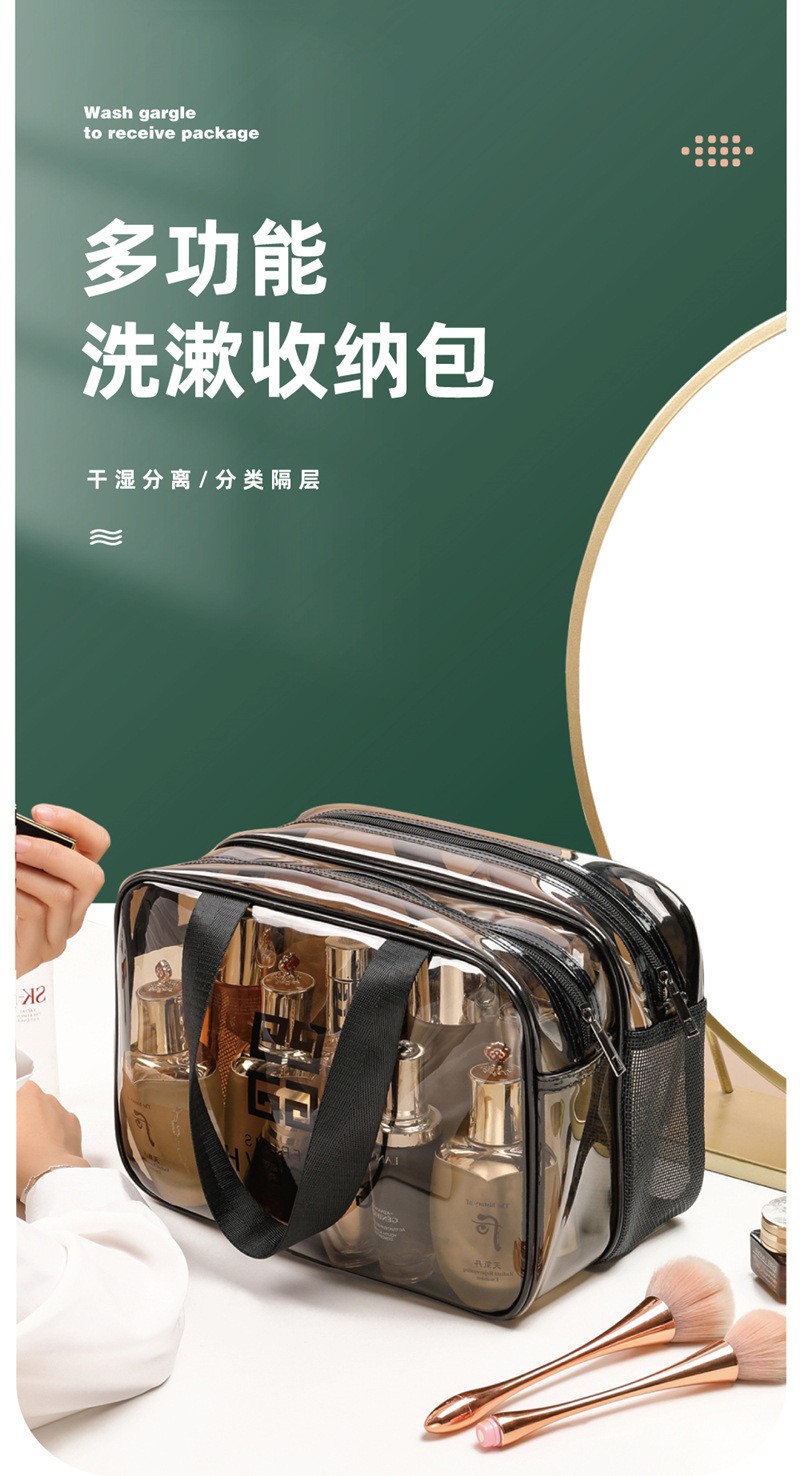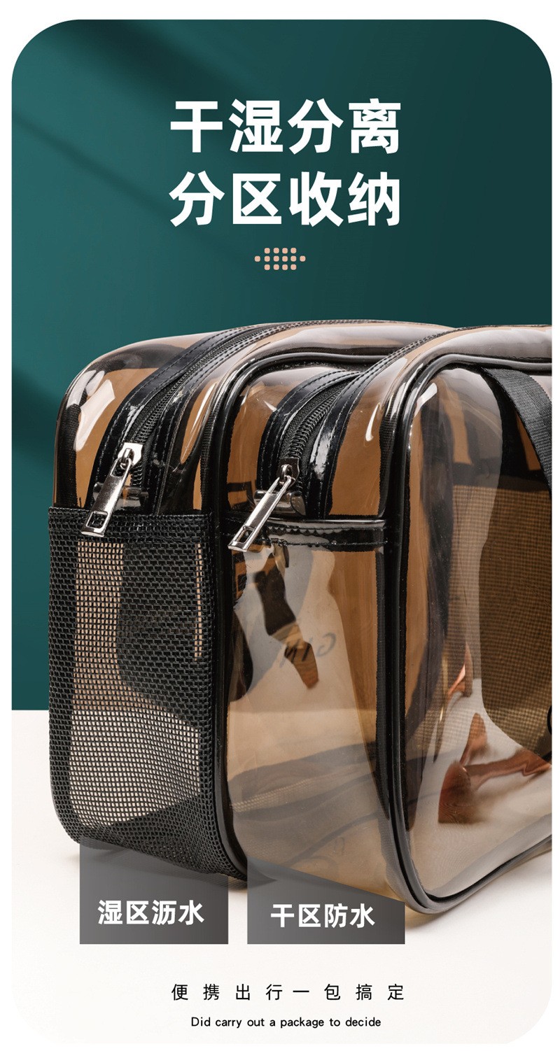 米德恩 透明化妆包防水干湿分离双层大容量便携洗漱包旅行健身洗澡收纳包 双层灰色大号