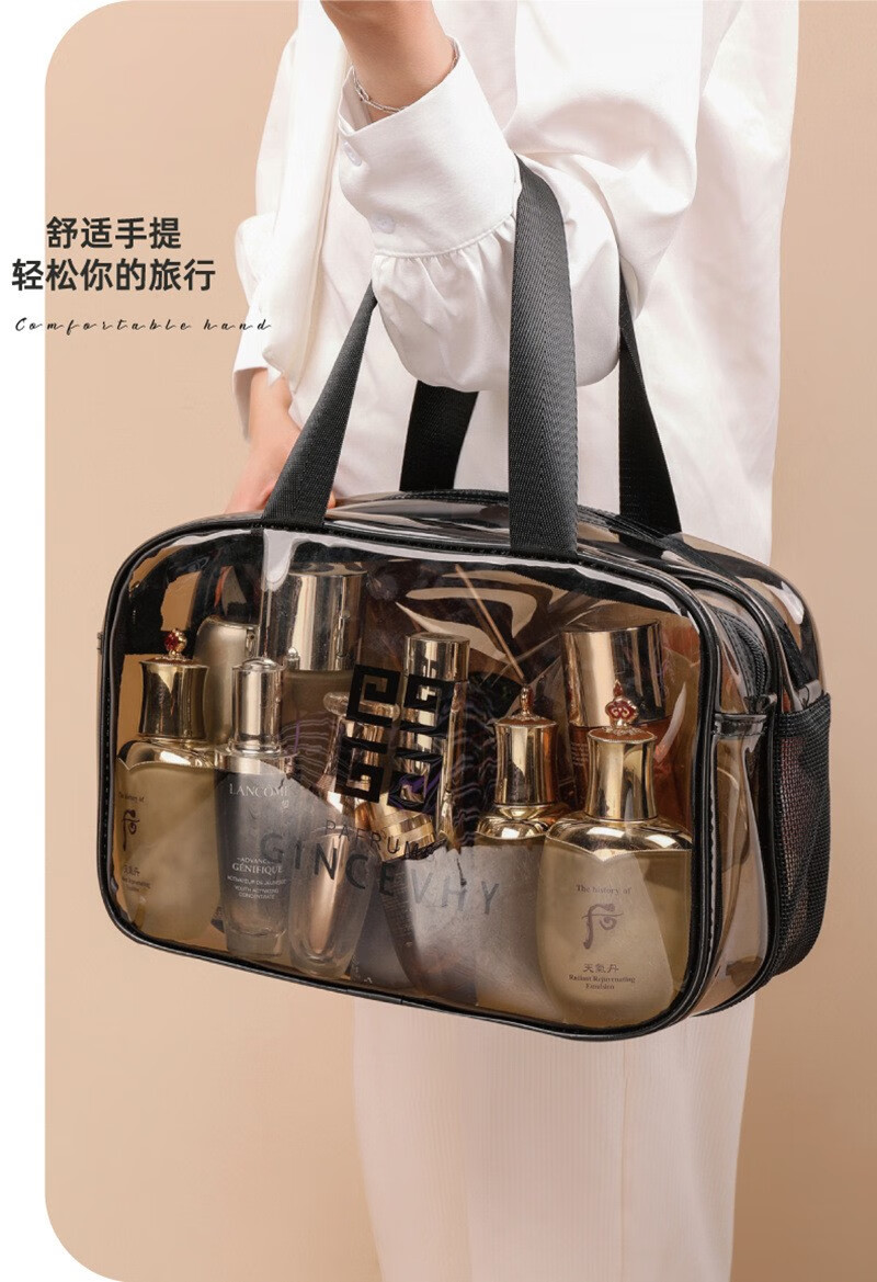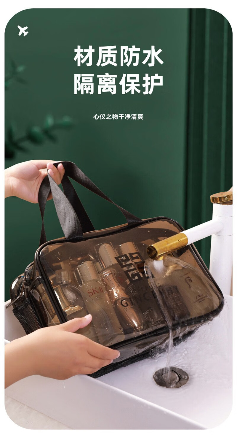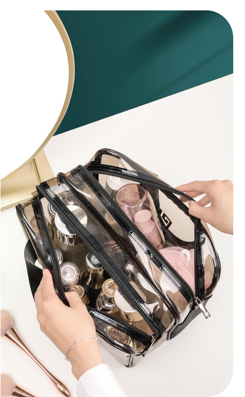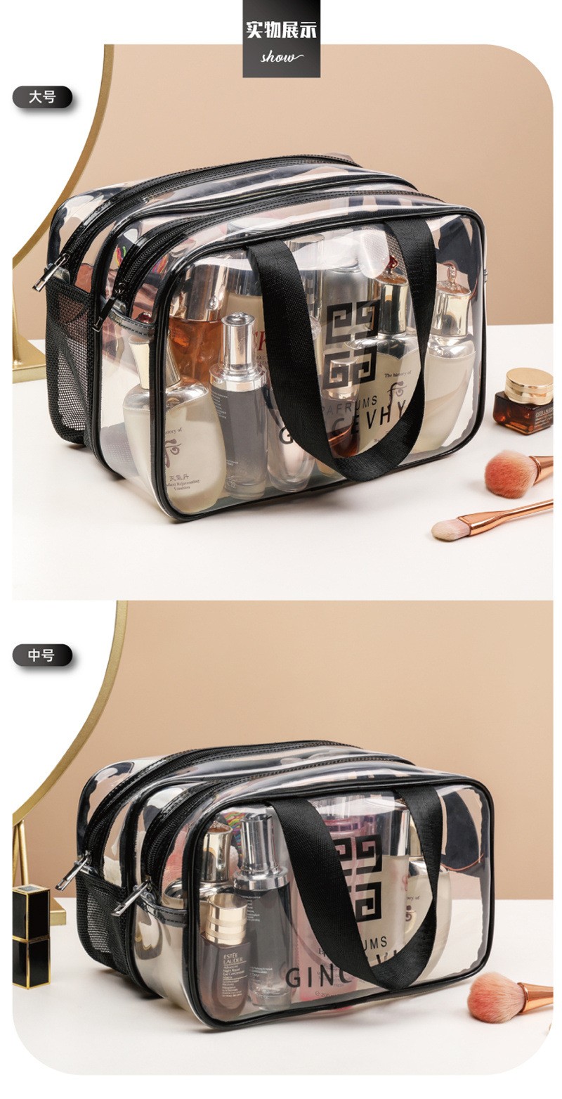 米德恩 透明化妆包防水干湿分离双层大容量便携洗漱包旅行健身洗澡收纳包 双层灰色大号