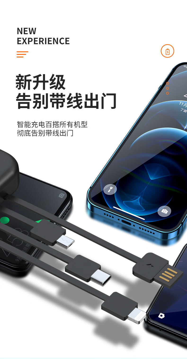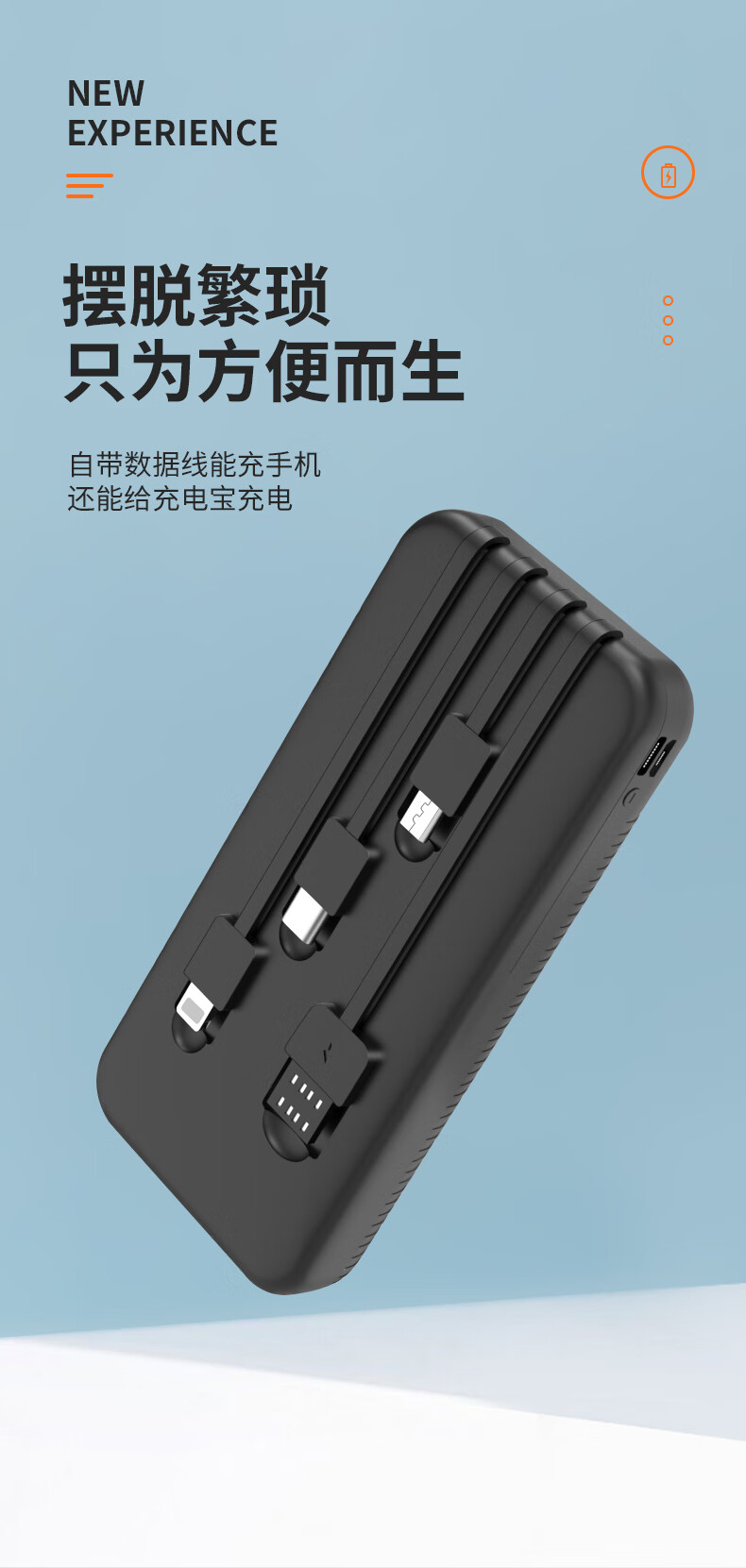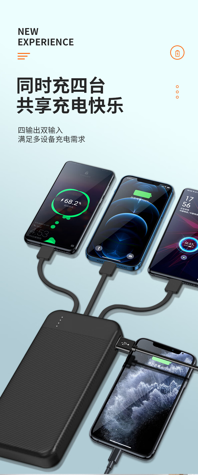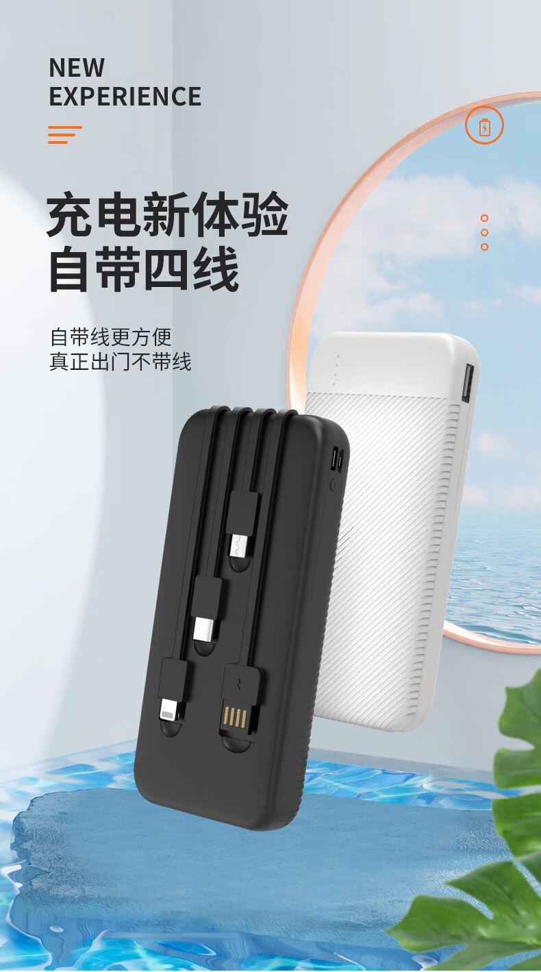 铁达信【新国标3C认证】超级快充10000毫安充电宝 自带四线 超薄小巧 移动电源苹果华为小米OPPO手机通用 【蓝色】自带四线/1万毫安/支持华为苹果8-16