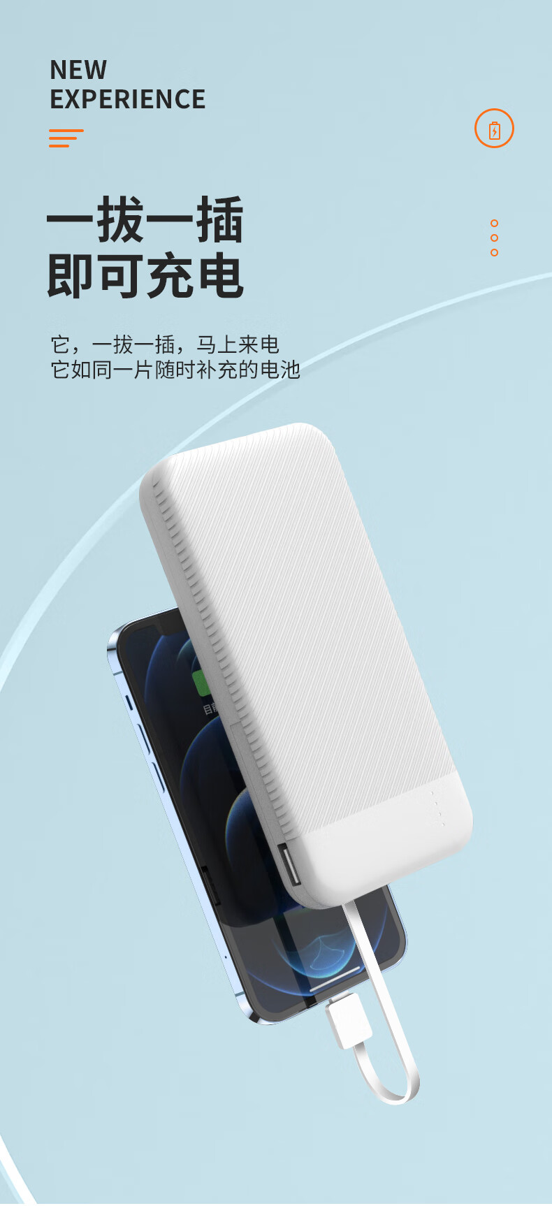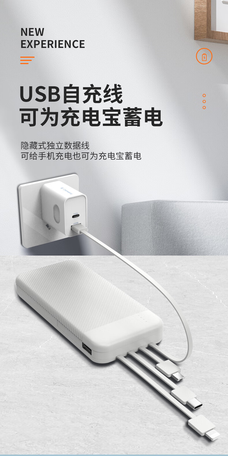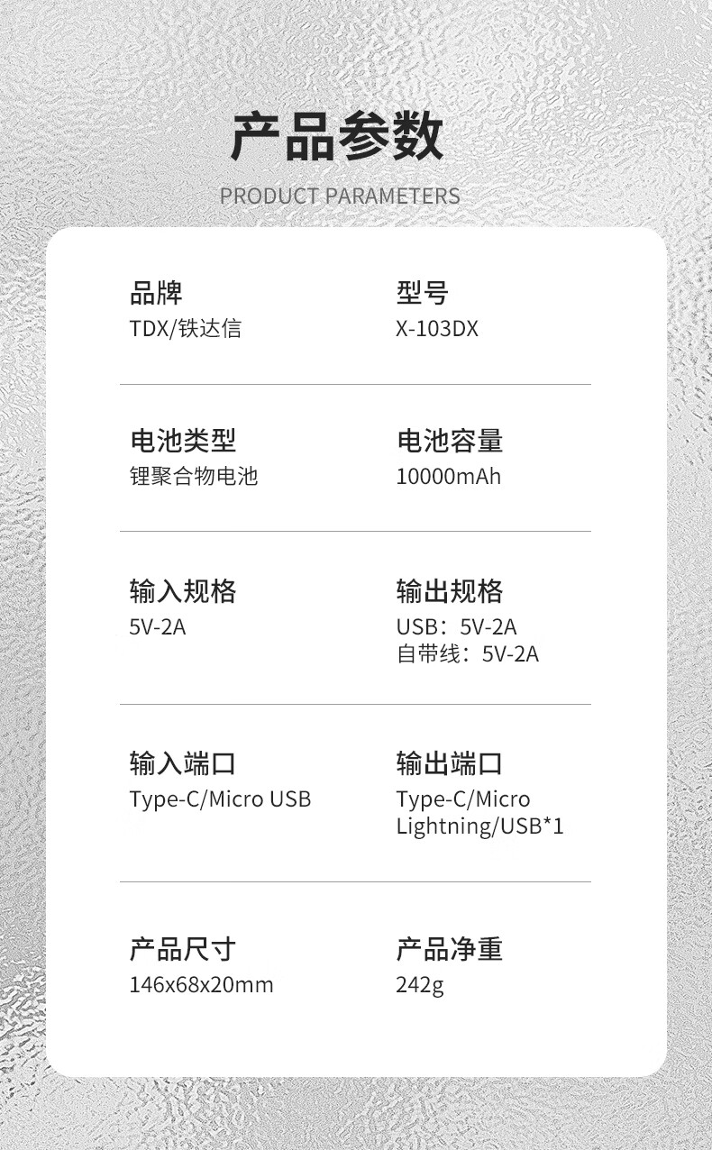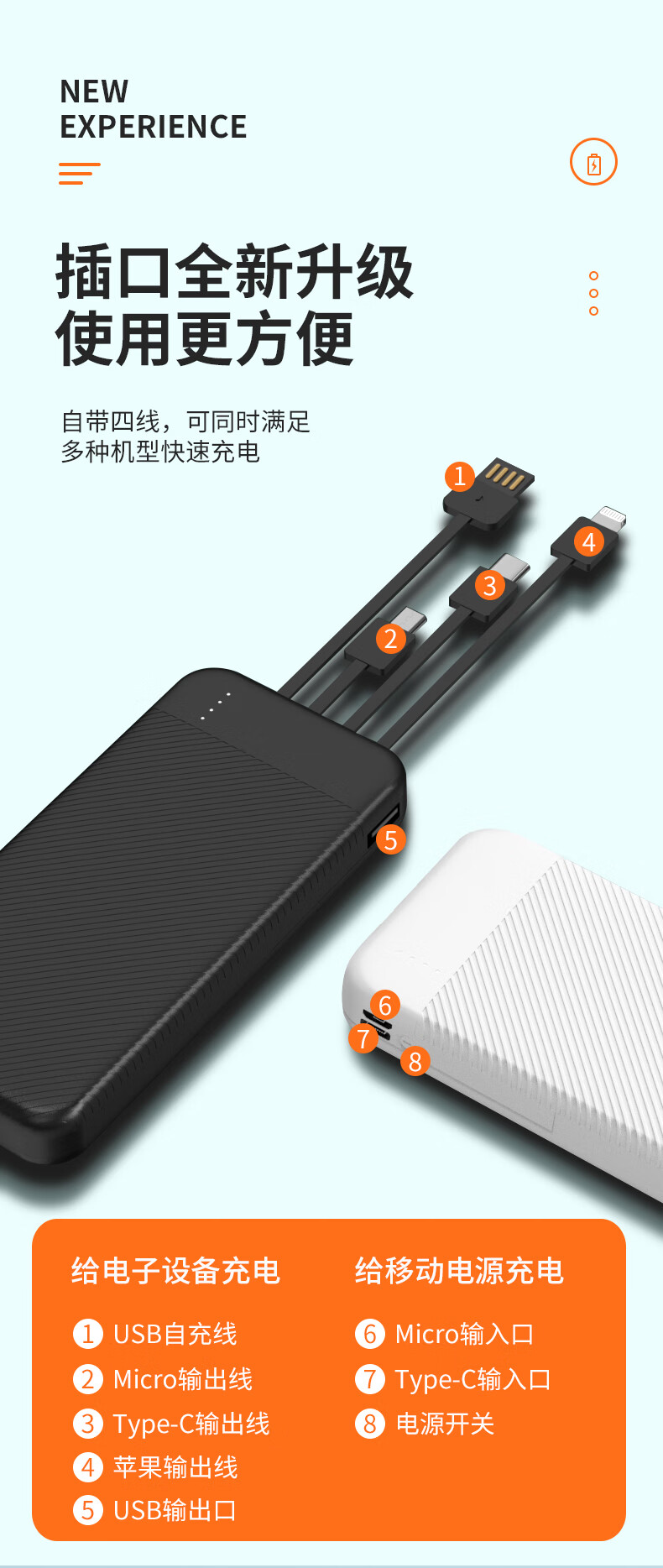 铁达信【新国标3C认证】超级快充10000毫安充电宝 自带四线 超薄小巧 移动电源苹果华为小米OPPO手机通用 【蓝色】自带四线/1万毫安/支持华为苹果8-16