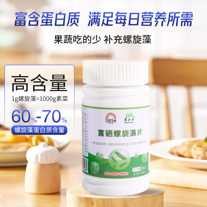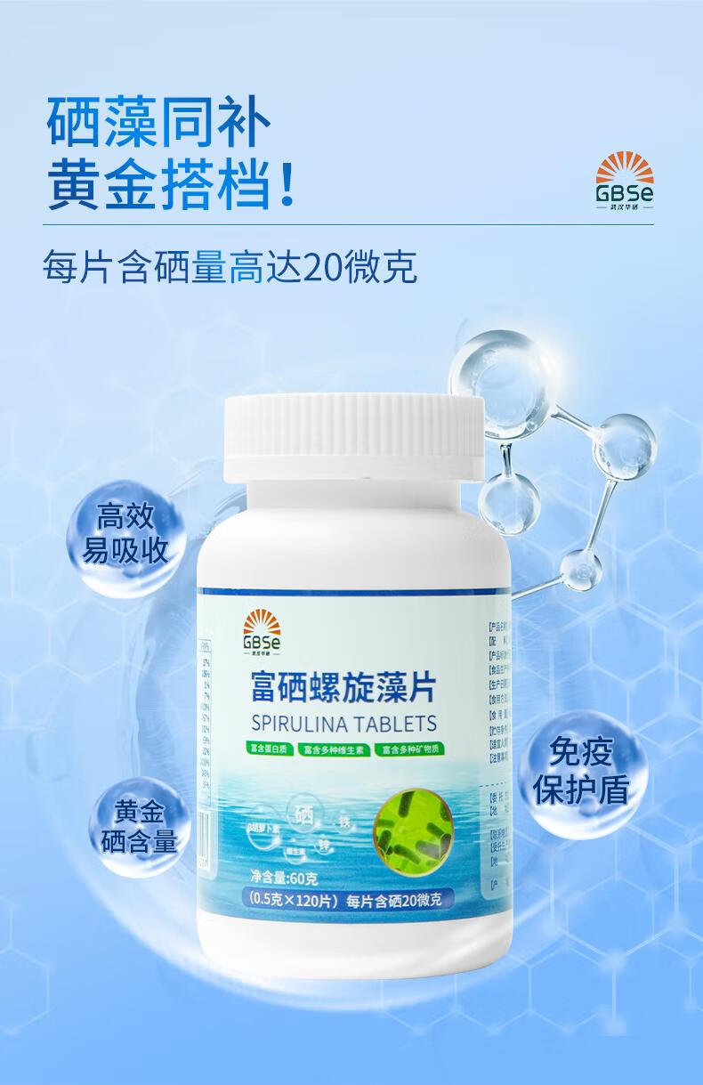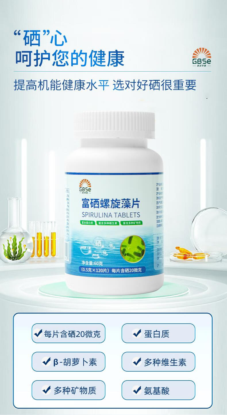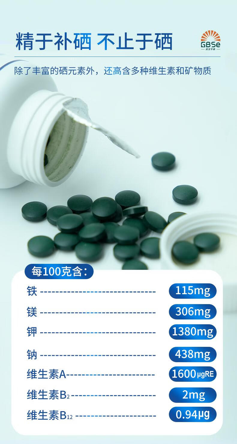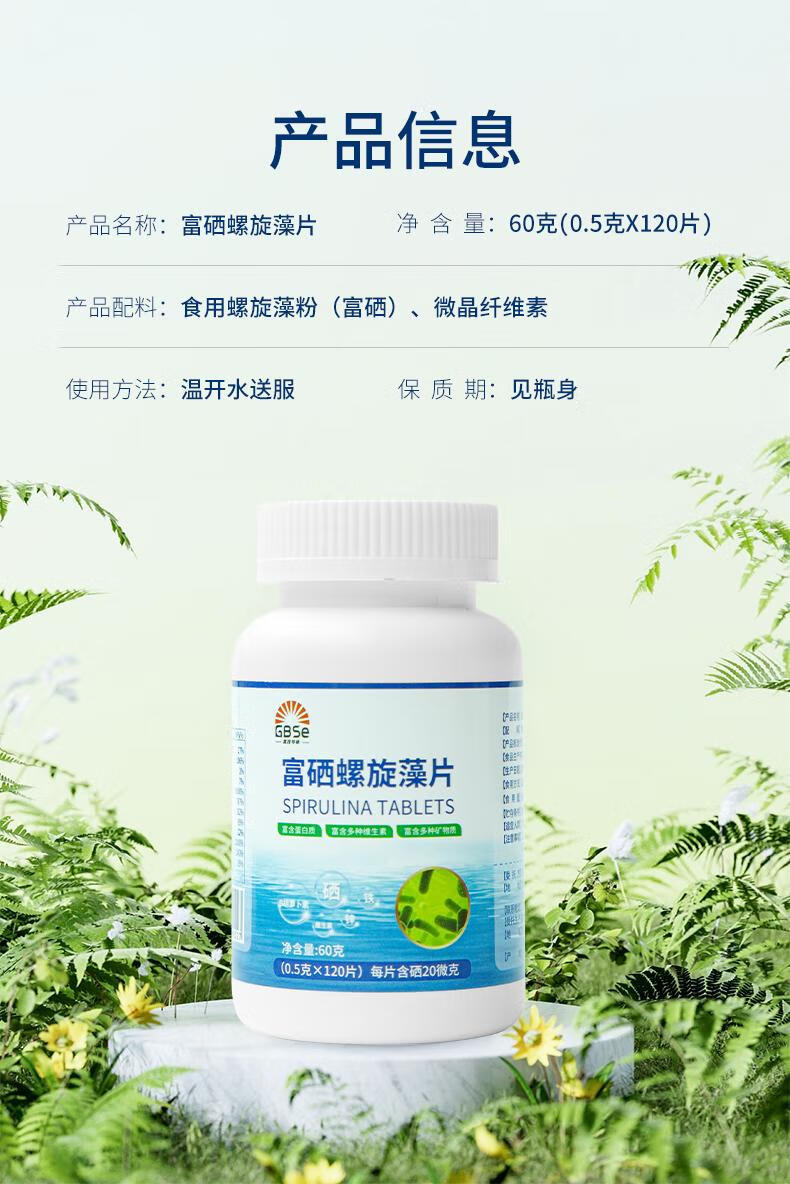 GBSE天然富硒螺旋藻片 补充富硒蛋白质多维多矿补充人体所需营养瓶装 大瓶120片 120片*1瓶