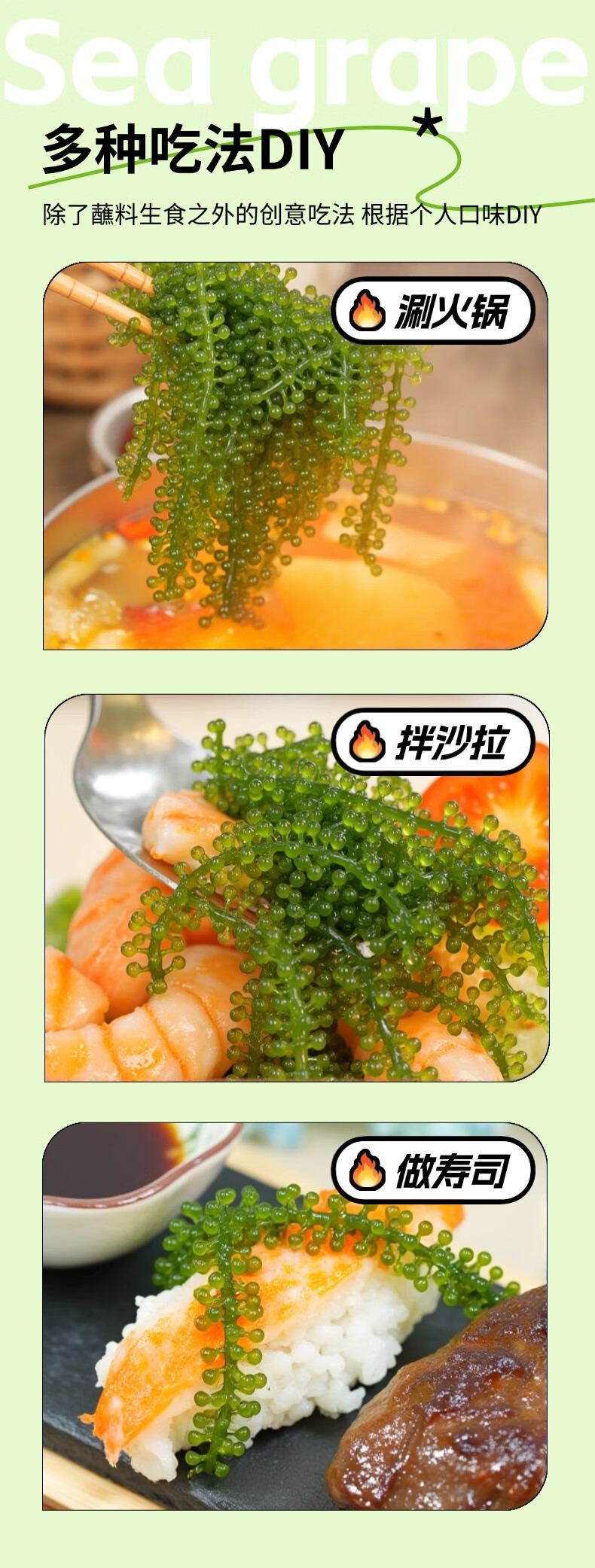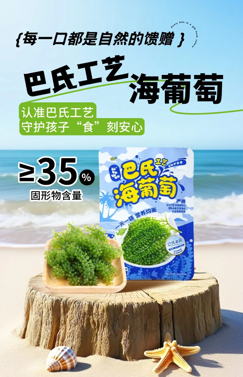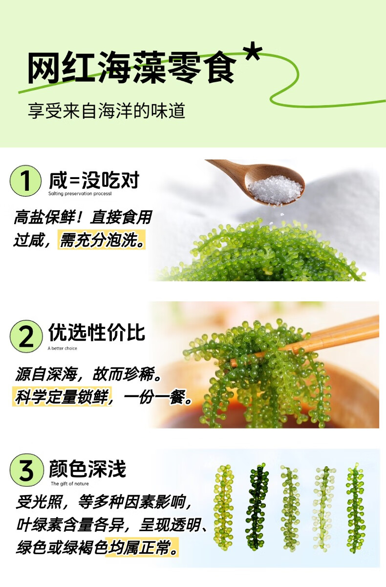 海葡萄【蓝盒装300g】盐渍海藻植物鱼子酱儿童爱吃网红零食附蘸料 一盒【送蘸料酱油芥末番茄酱】