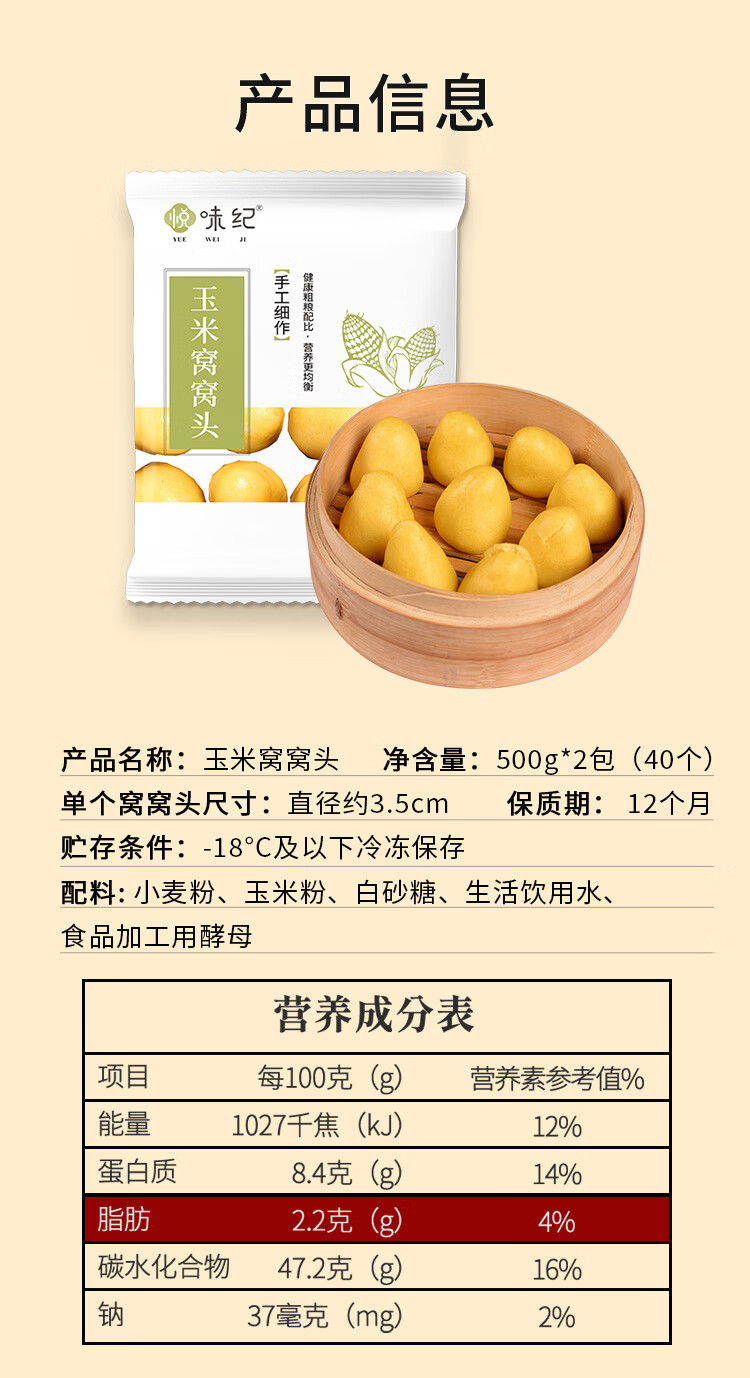 悦味纪 玉米窝窝头1kg 共40个 手工粗粮杂粮包馒头 半成品早餐方便速食