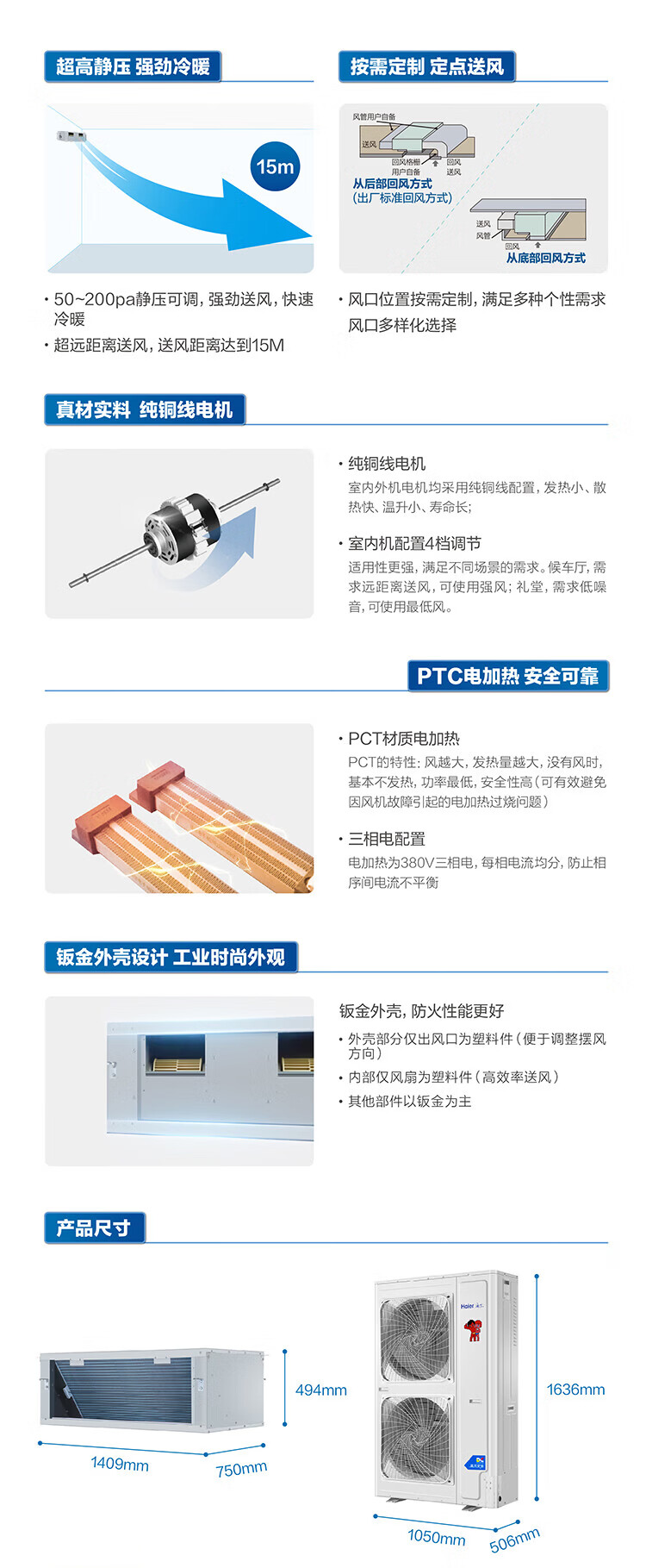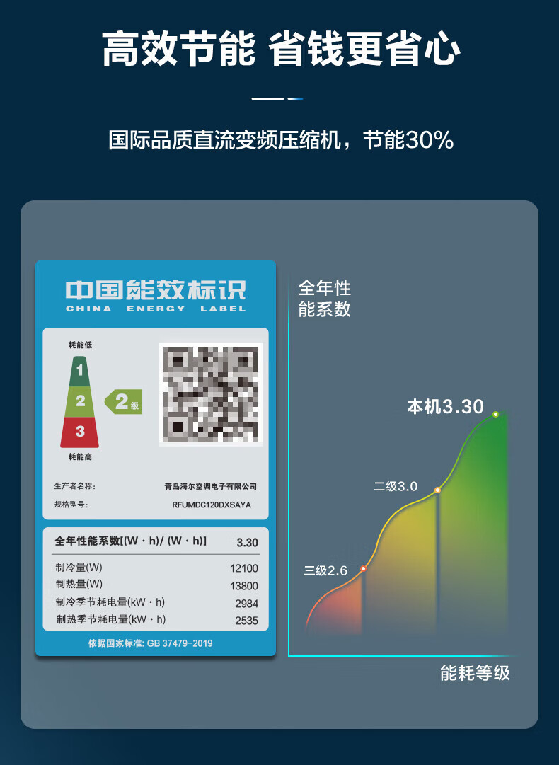 海尔中央空调嵌入式5匹6匹7匹风管机大风量二级节能变频商用办公室餐厅厂房商铺中央空调空调不含安装 5匹 二级能效 RFUMC120DXSAYA 无电辅热