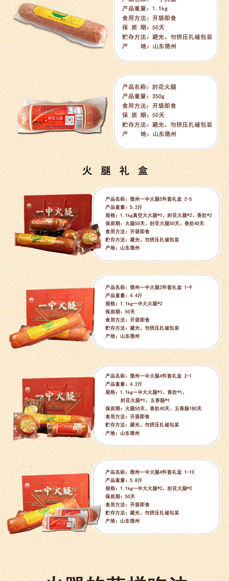 慧供德州特产老字号一中火腿熟食大香肠猪肉肠开袋即食真空春节礼品盒 马到礼成 一中火腿礼盒四件套【2-1】