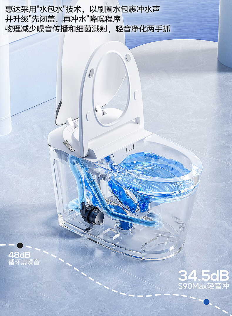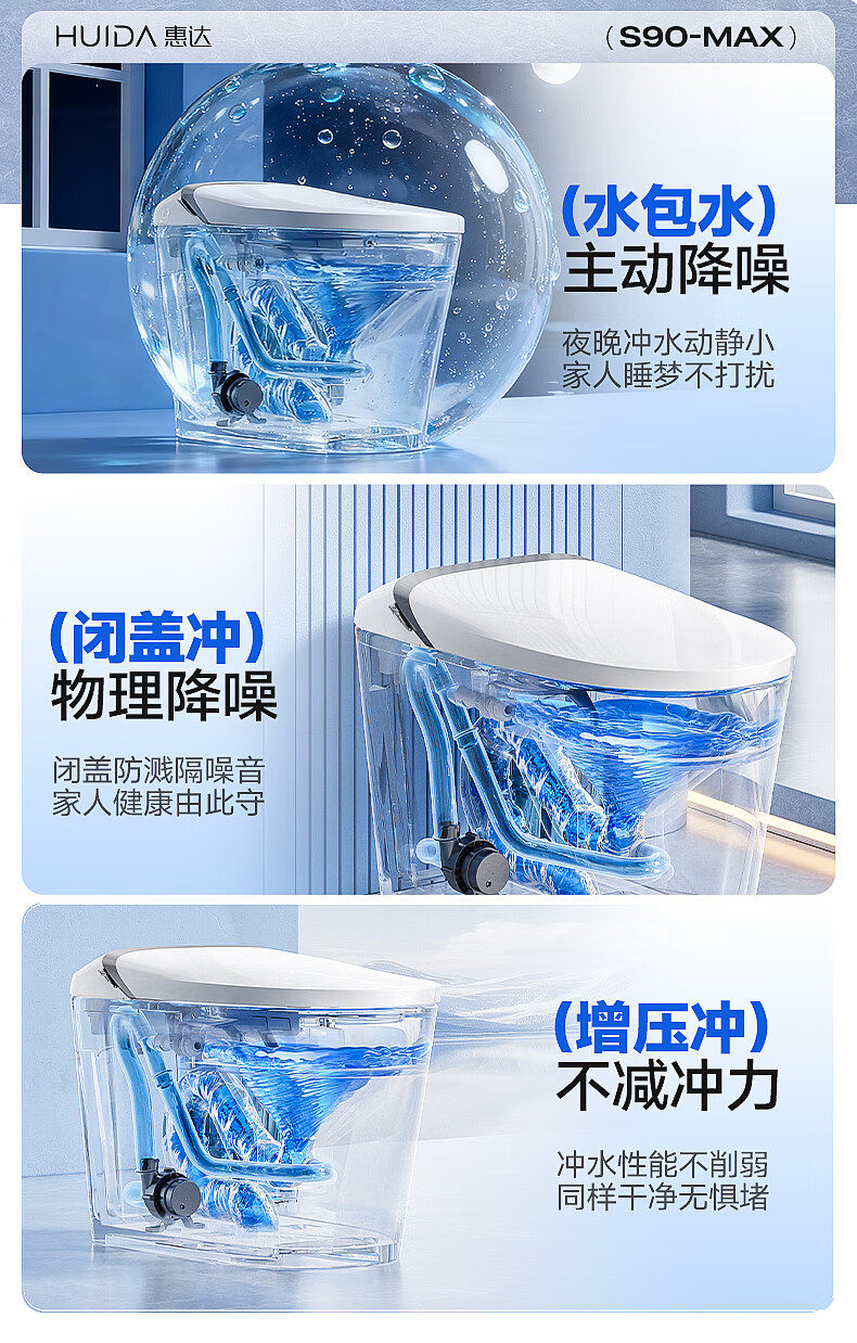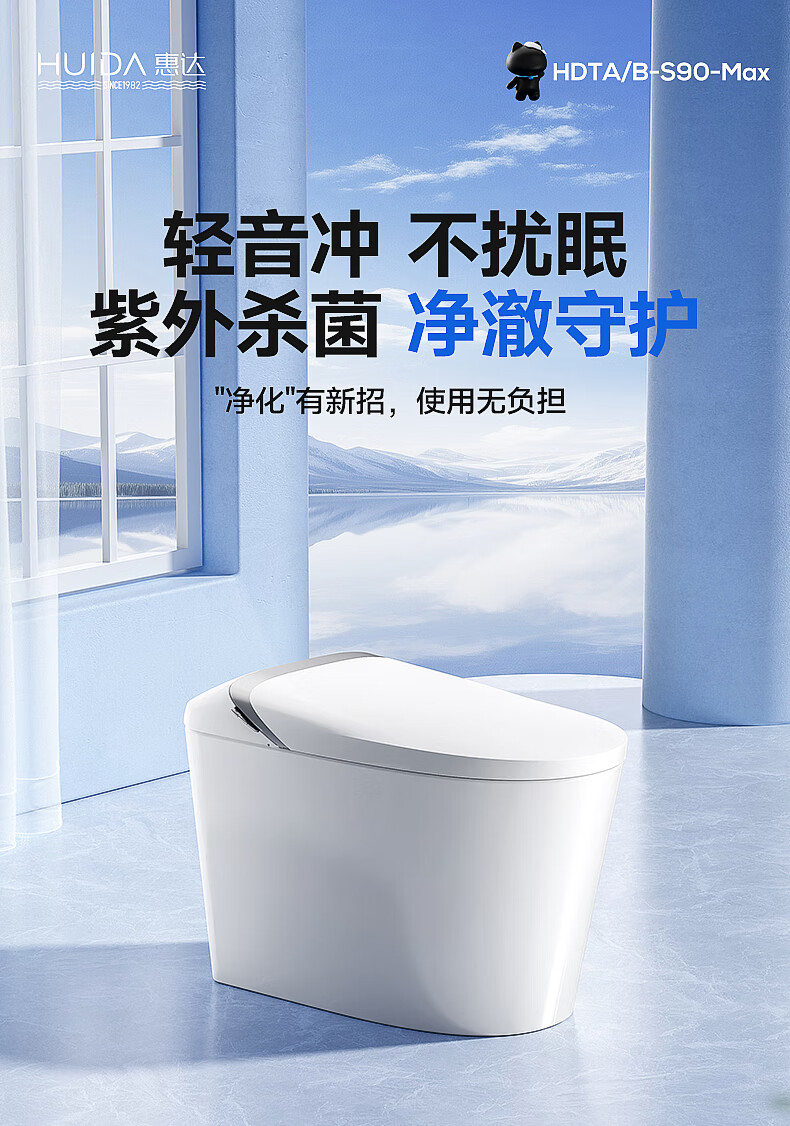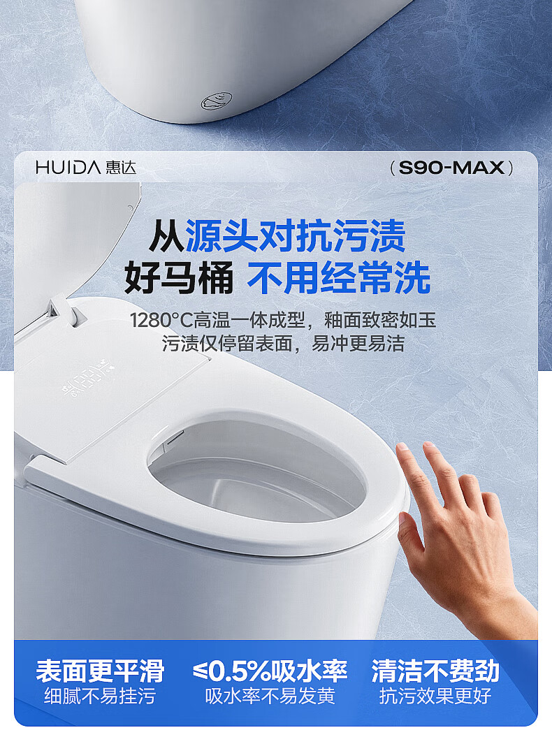 惠达(HUIDA)全智能马桶清洗加热烘干一体带水箱免触翻盖魔力泡座圈加热座便器 紫外杀菌+电解除菌S90-MAX 坑距在385mm以上选· 400mm