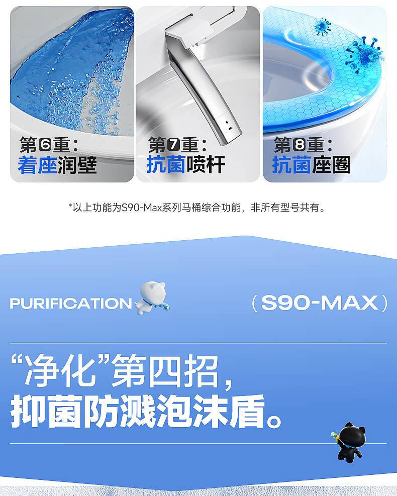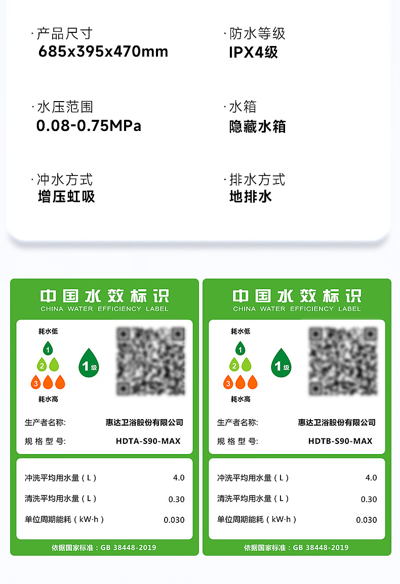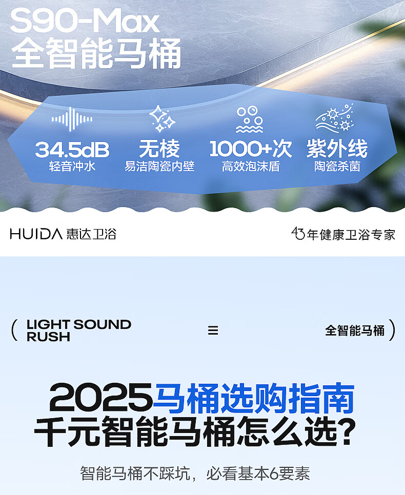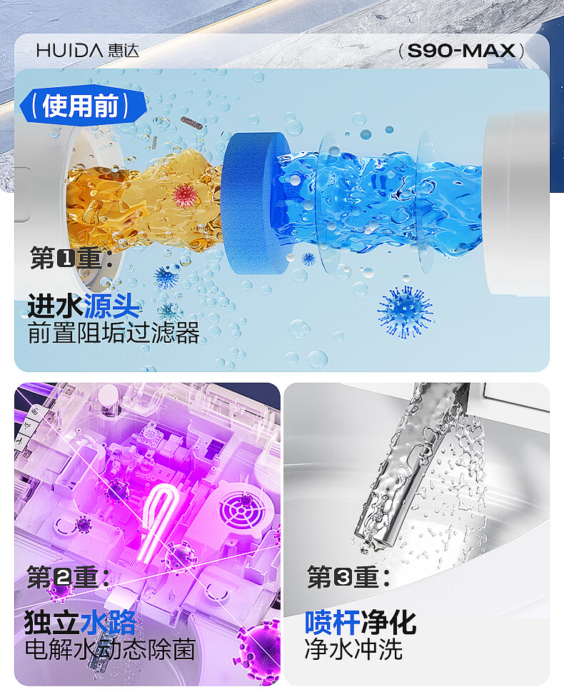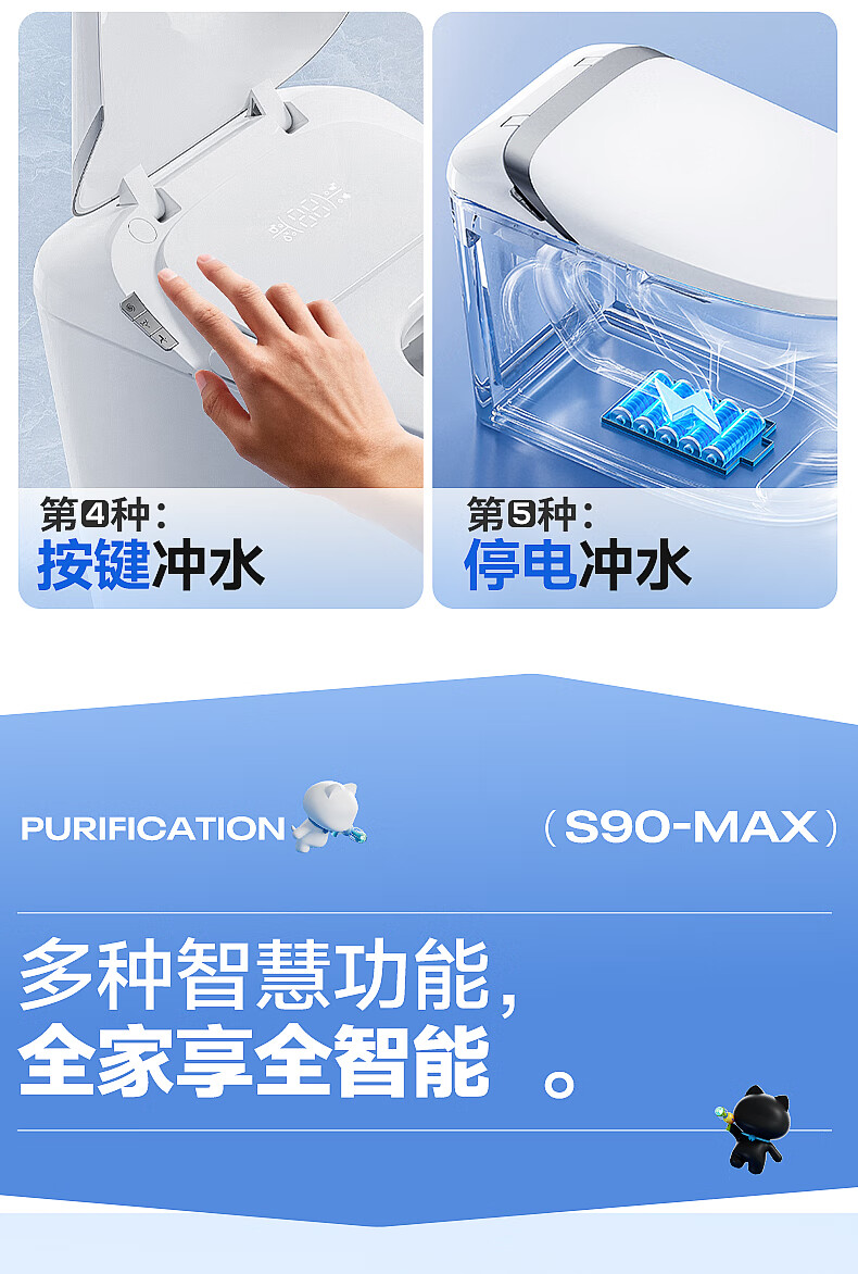 惠达(HUIDA)全智能马桶清洗加热烘干一体带水箱免触翻盖魔力泡座圈加热座便器 紫外杀菌+电解除菌S90-MAX 坑距在385mm以上选· 400mm