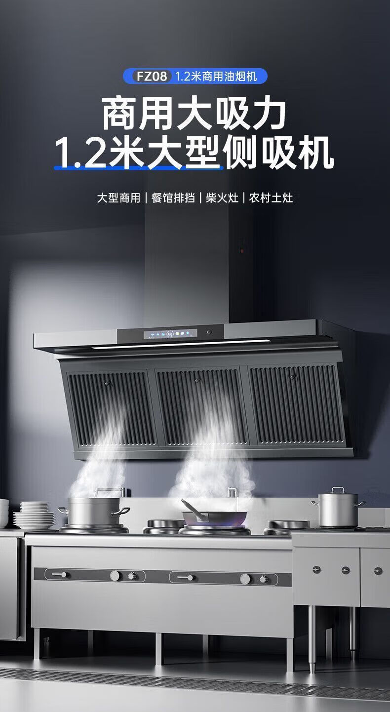 TOYODENKI商用侧吸式抽油烟机柴火灶电机食堂土灶抽烟机 单塔双塔商用净化大功率大吸力 1500mm商用升级1000W纯铜单电机+油烟分离