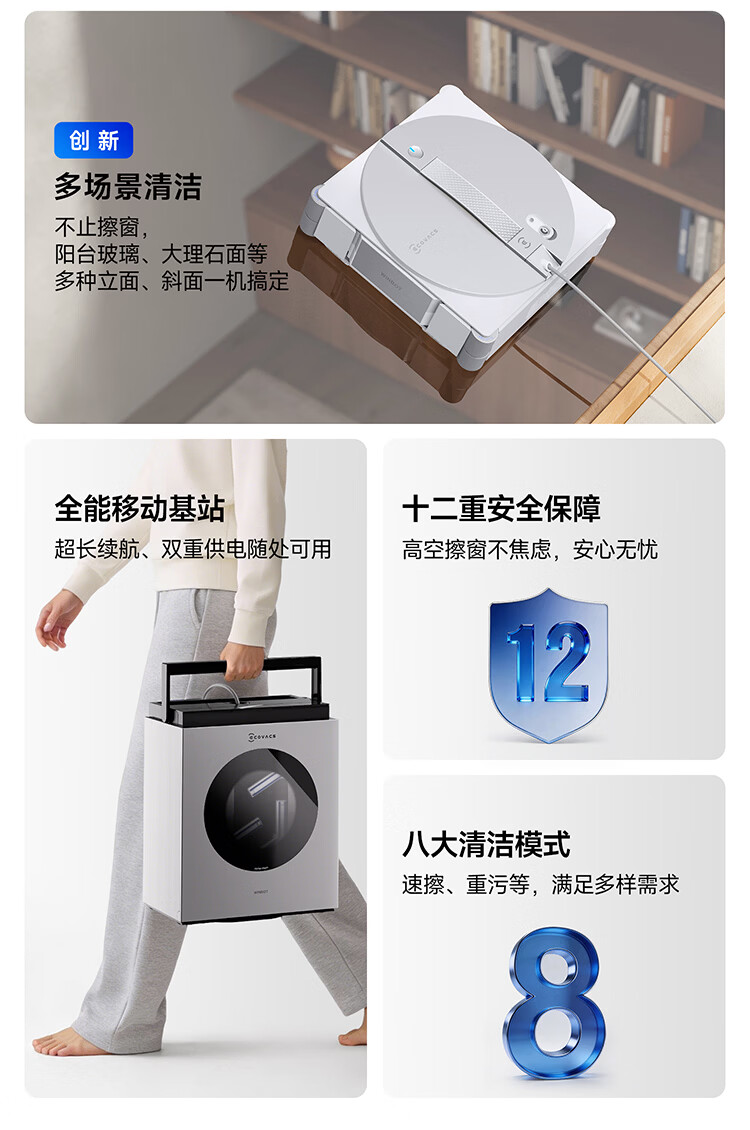 科沃斯(ECOVACS)擦窗机器人新品窗宝W3全能基站版自动擦玻璃喷水湿擦家用擦窗神器高层户外擦窗户擦玻璃基站洗抹布