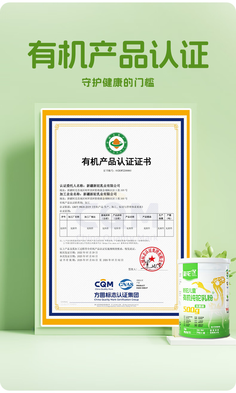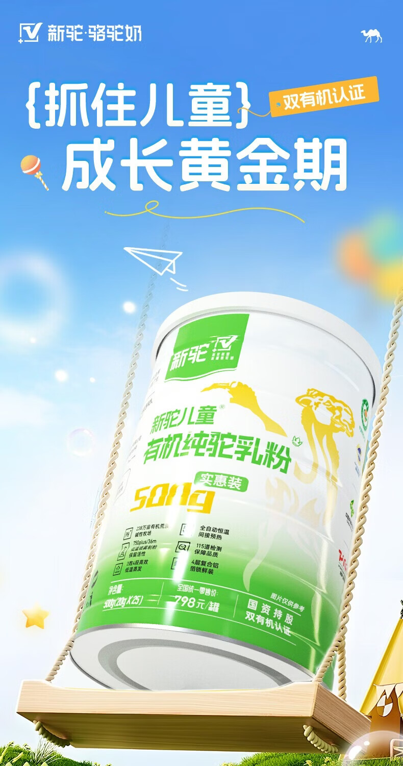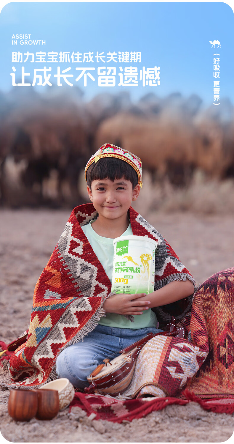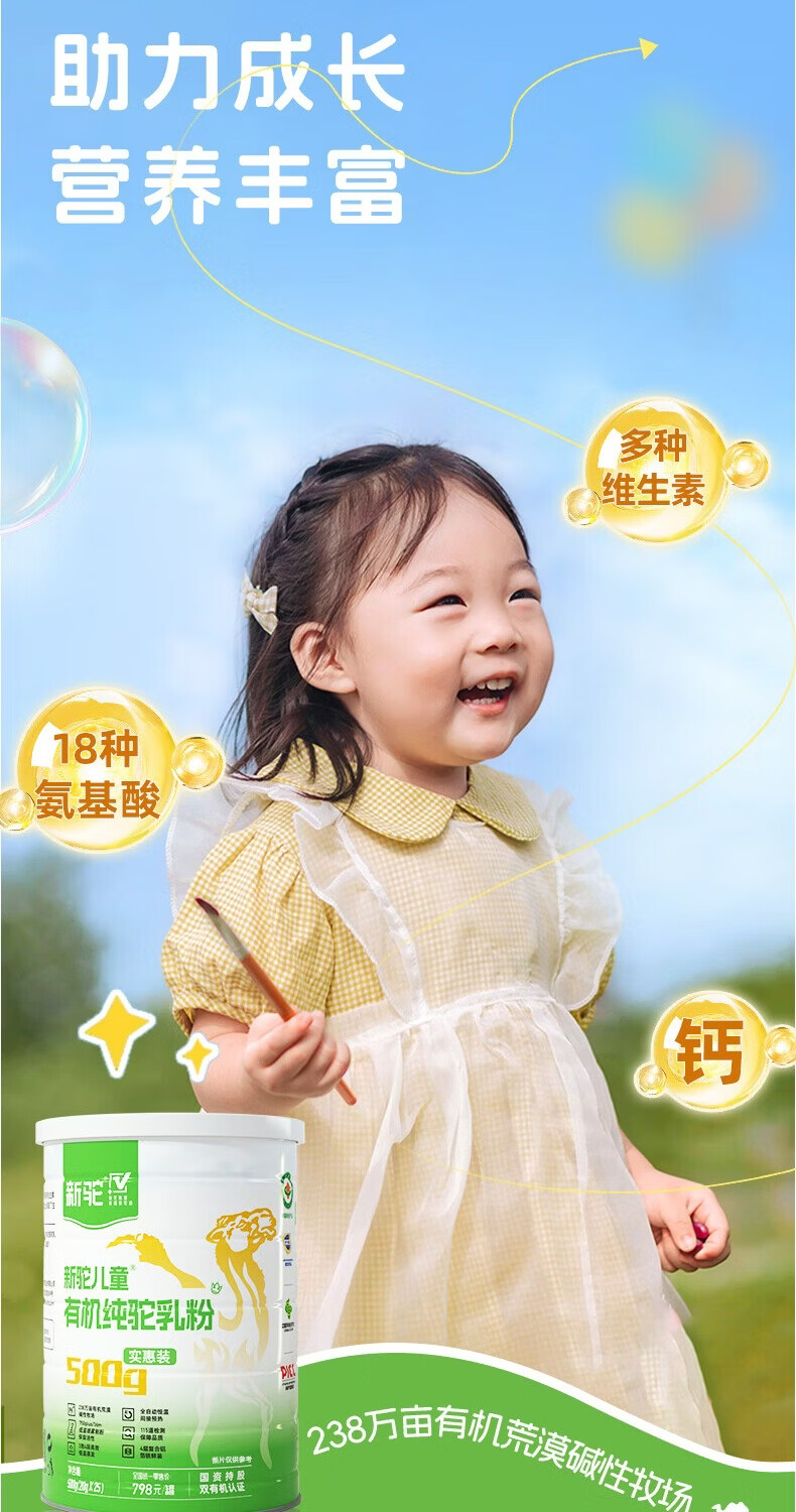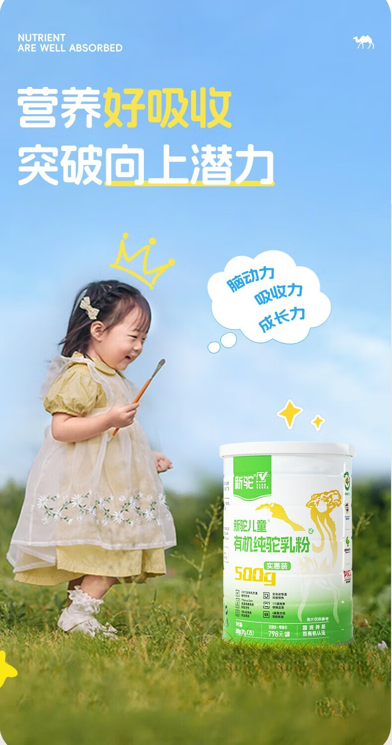 新驼儿童有机纯骆驼奶粉新疆驼乳粉学生青少年高钙奶粉营养品送礼 儿童款500g(实惠装)*1罐