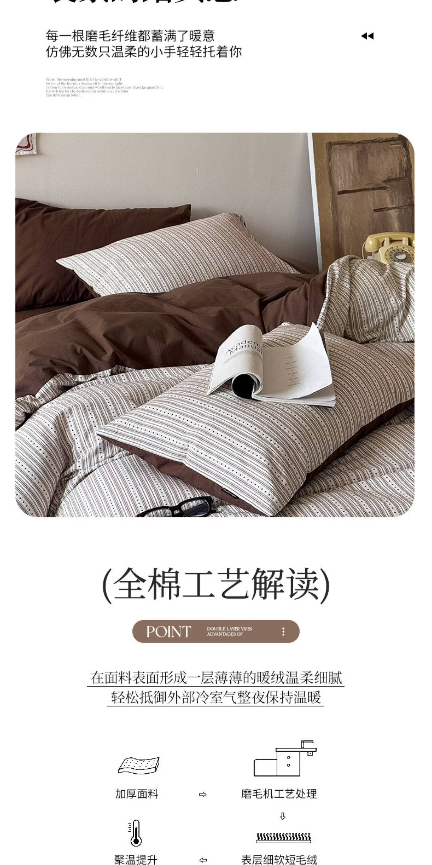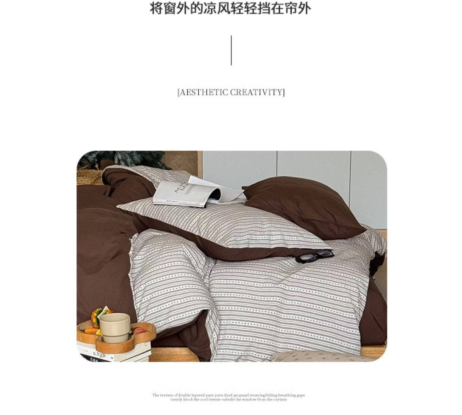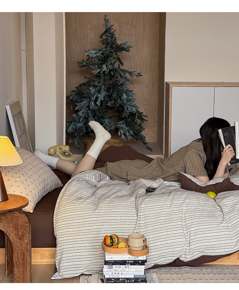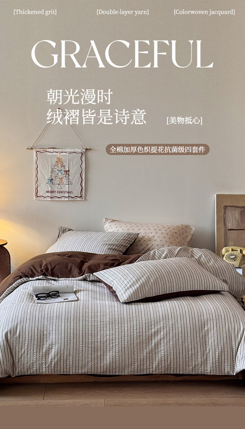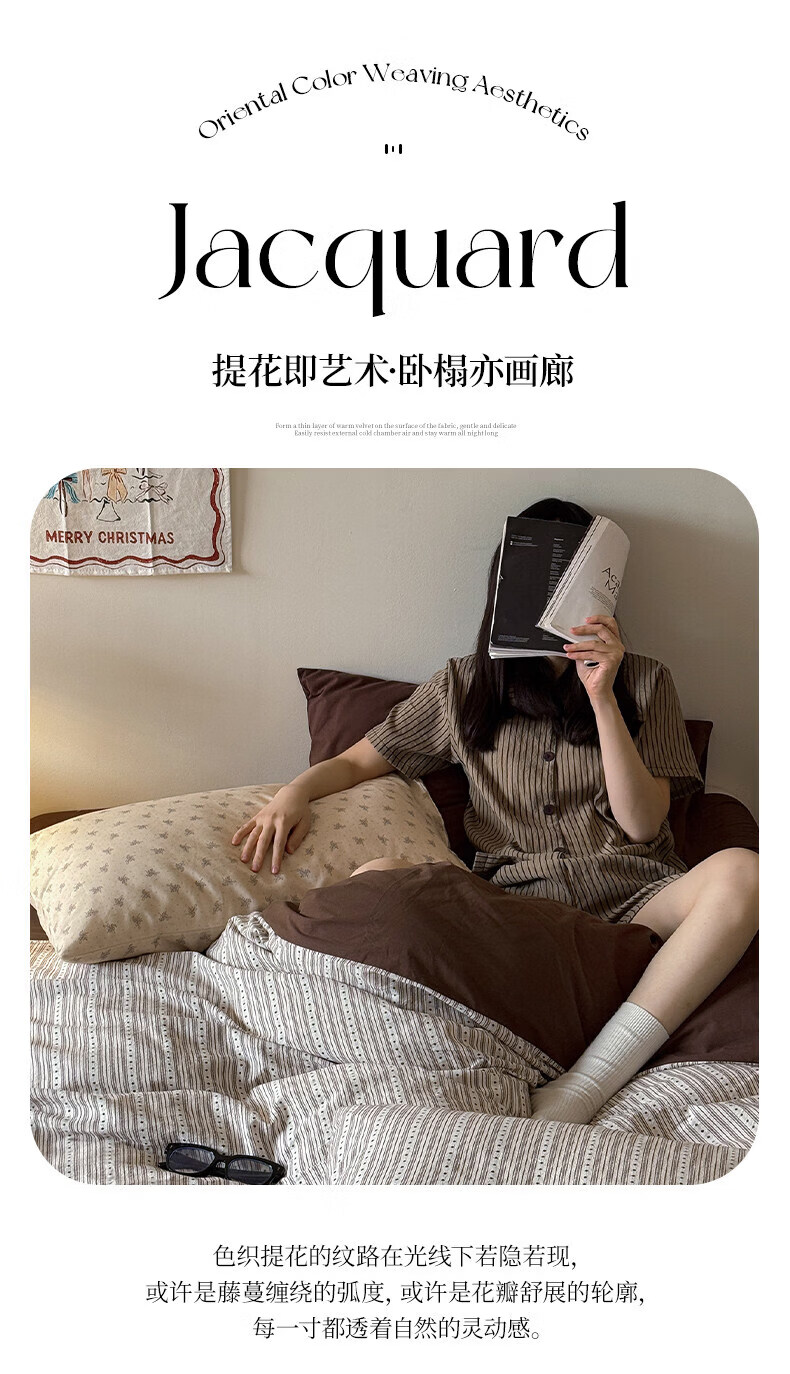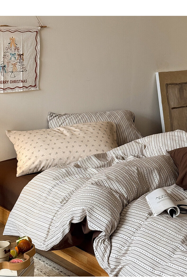 猫人(MiiOW)全棉色织提花床上四件套纯棉床单被套轻奢床品三件套宿舍四季通用 半岛日记-咖 1.2 床单款 三件套(被套150*200)