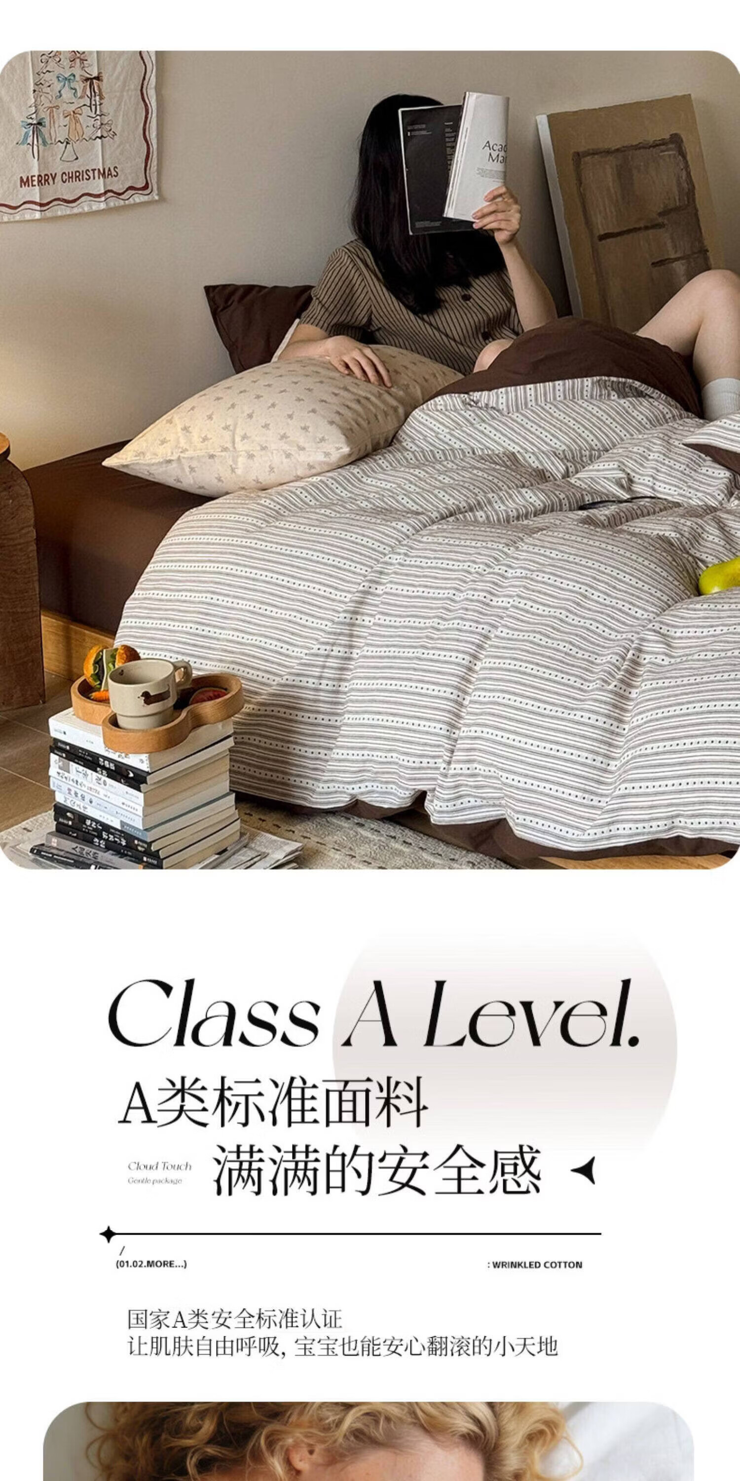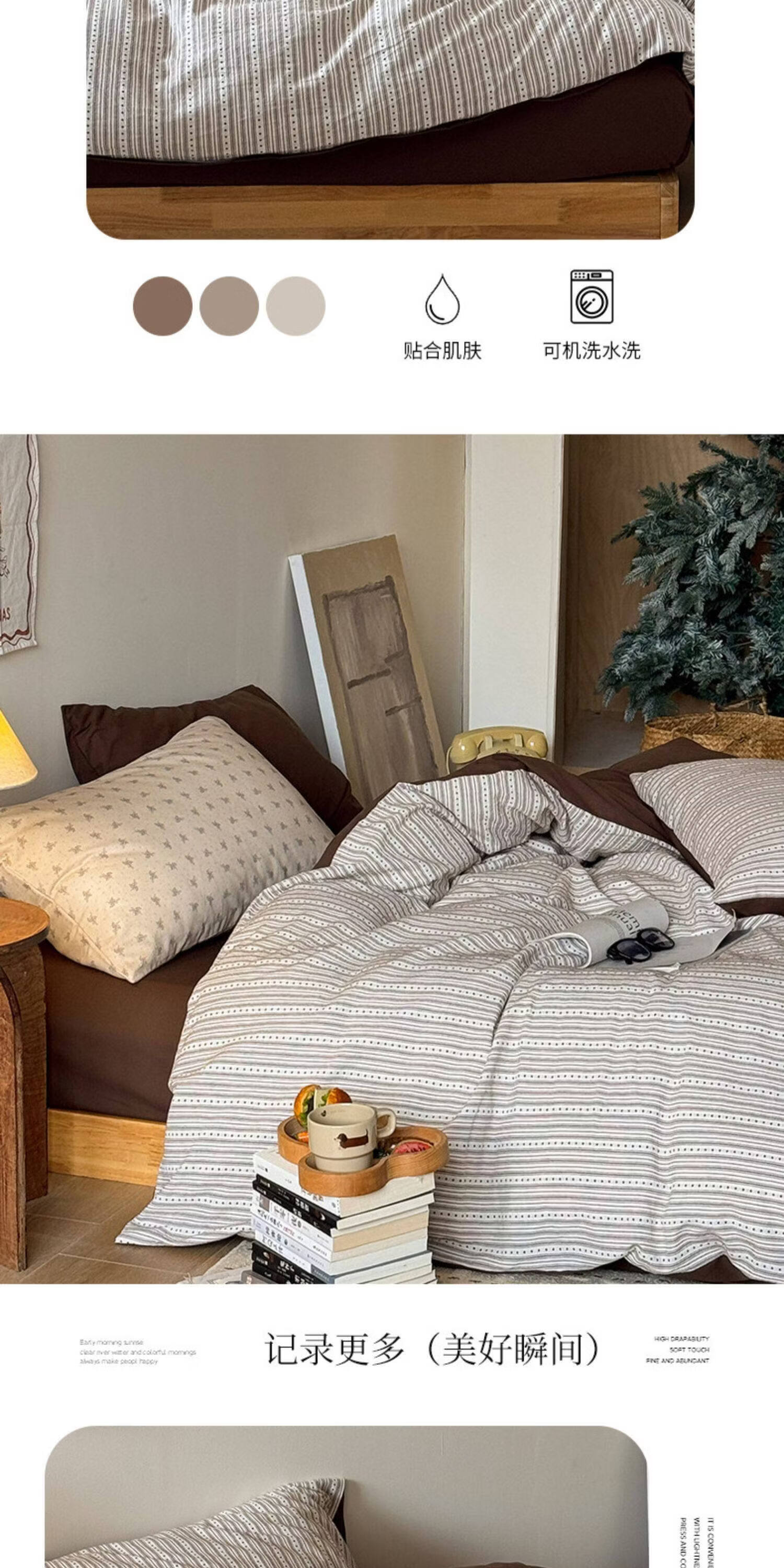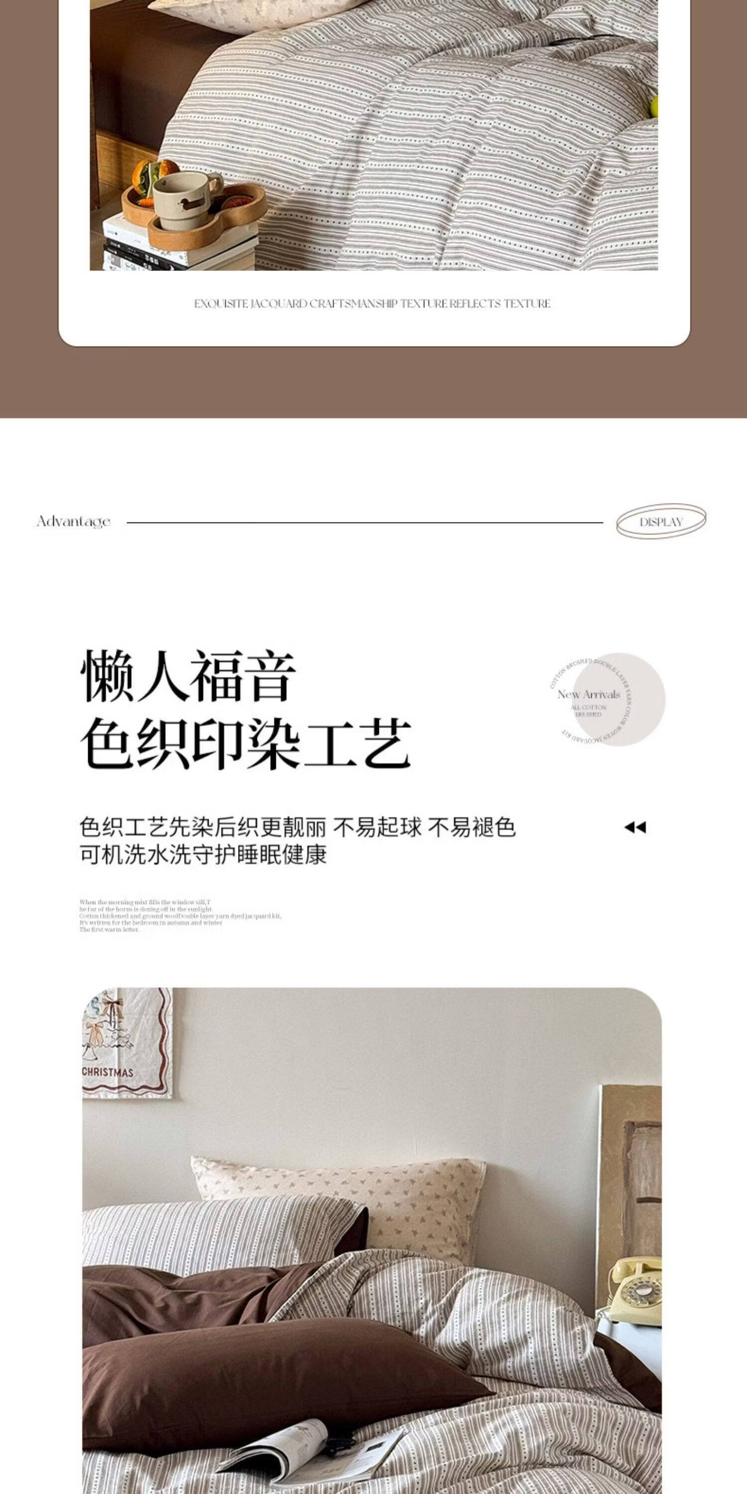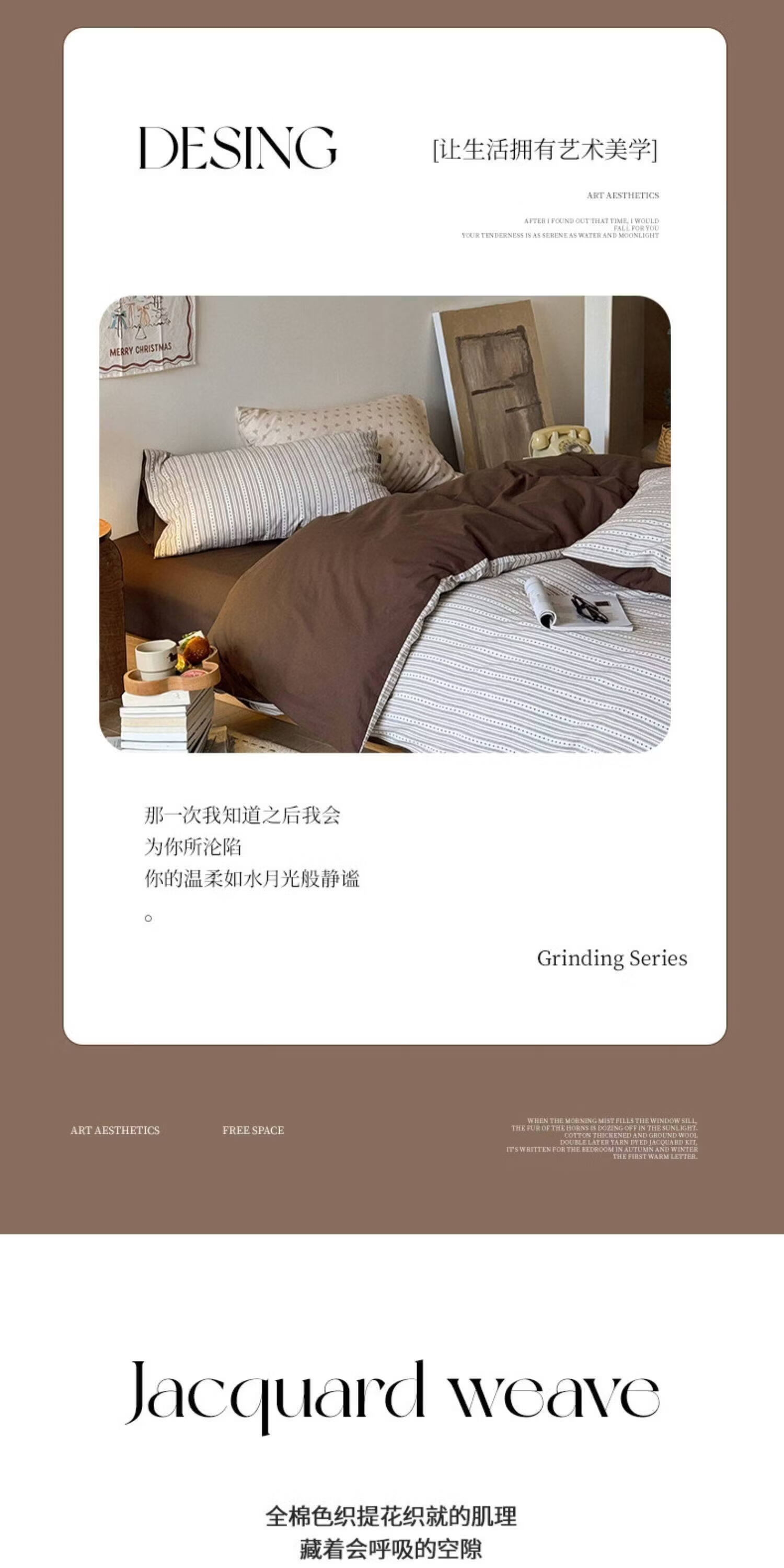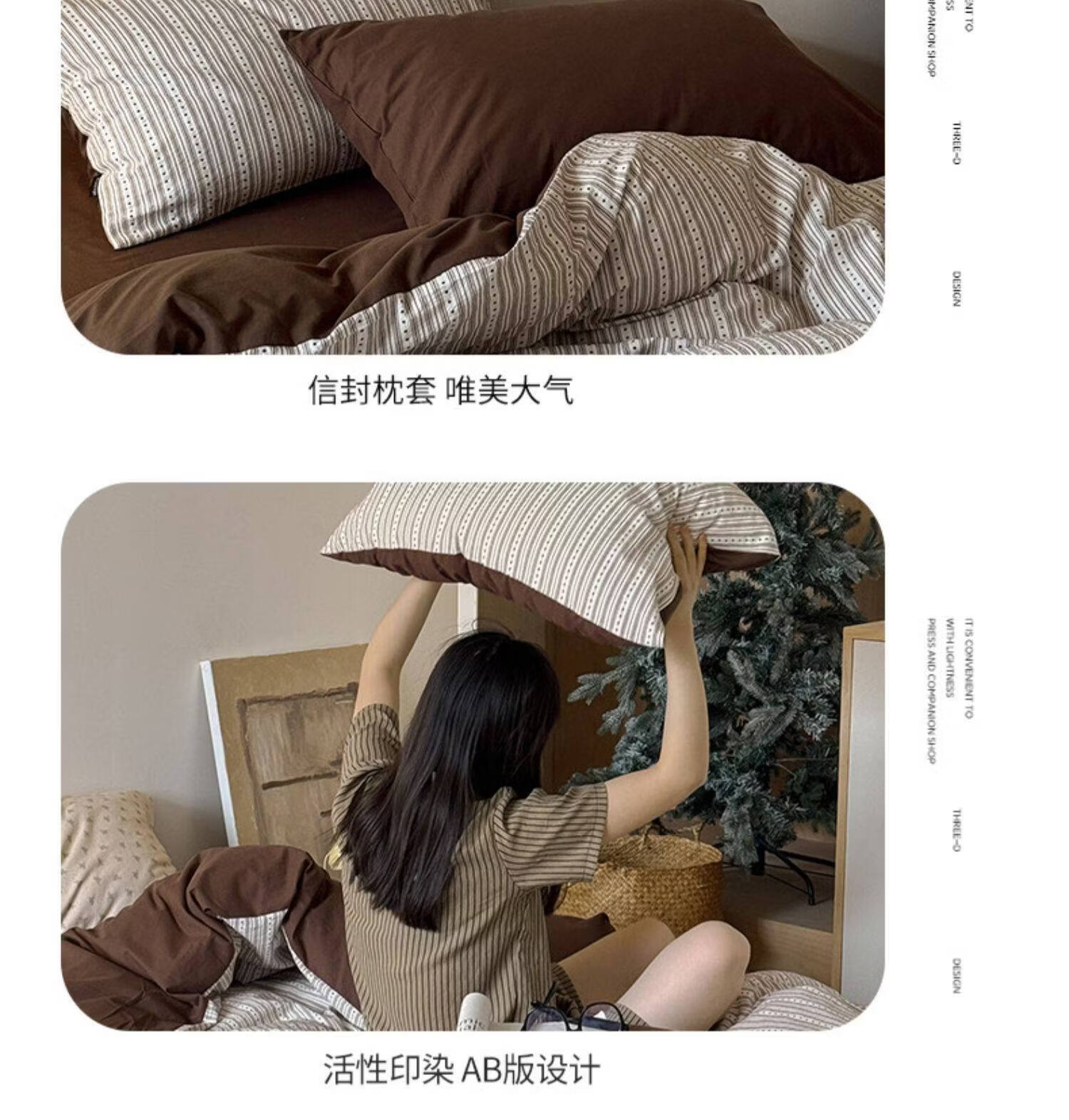 猫人(MiiOW)全棉色织提花床上四件套纯棉床单被套轻奢床品三件套宿舍四季通用 半岛日记-咖 1.2 床单款 三件套(被套150*200)