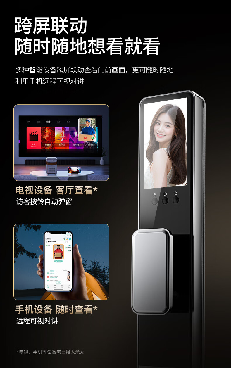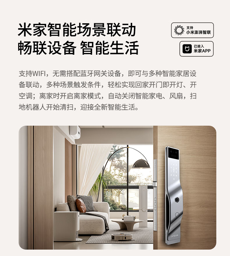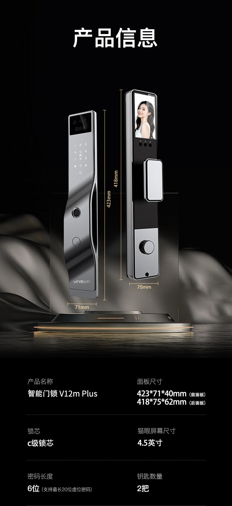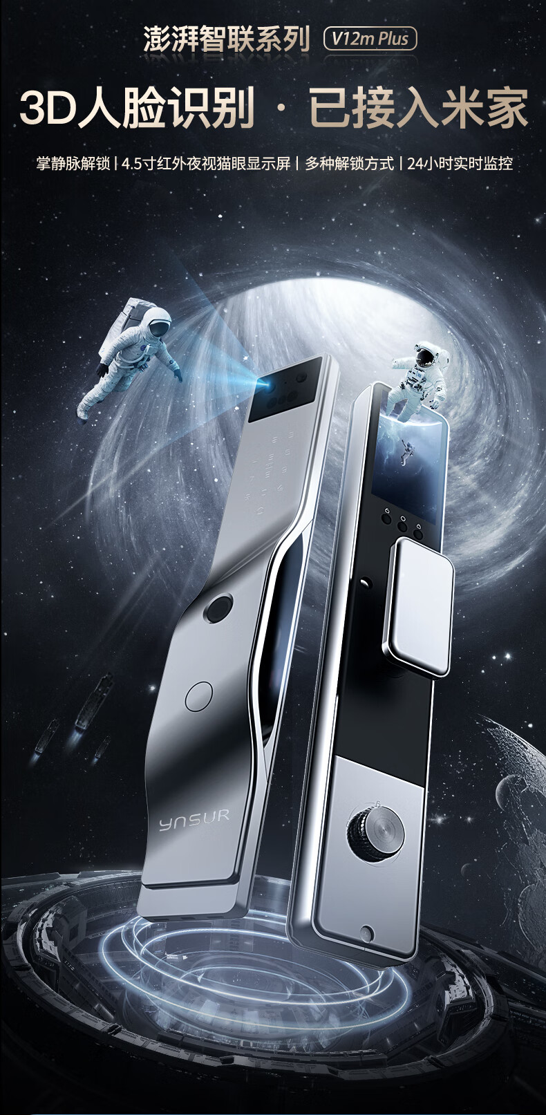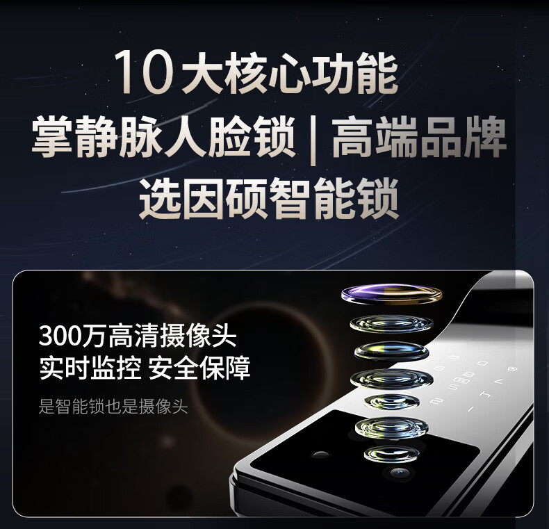 因硕V12M plus 已接入米家APP 智能门锁人脸掌静脉猫眼指纹密码电子锁 【已接入米家+掌静脉人脸】V12Mplus