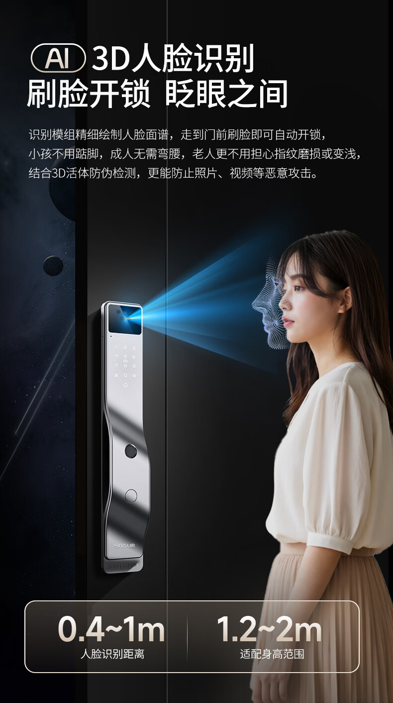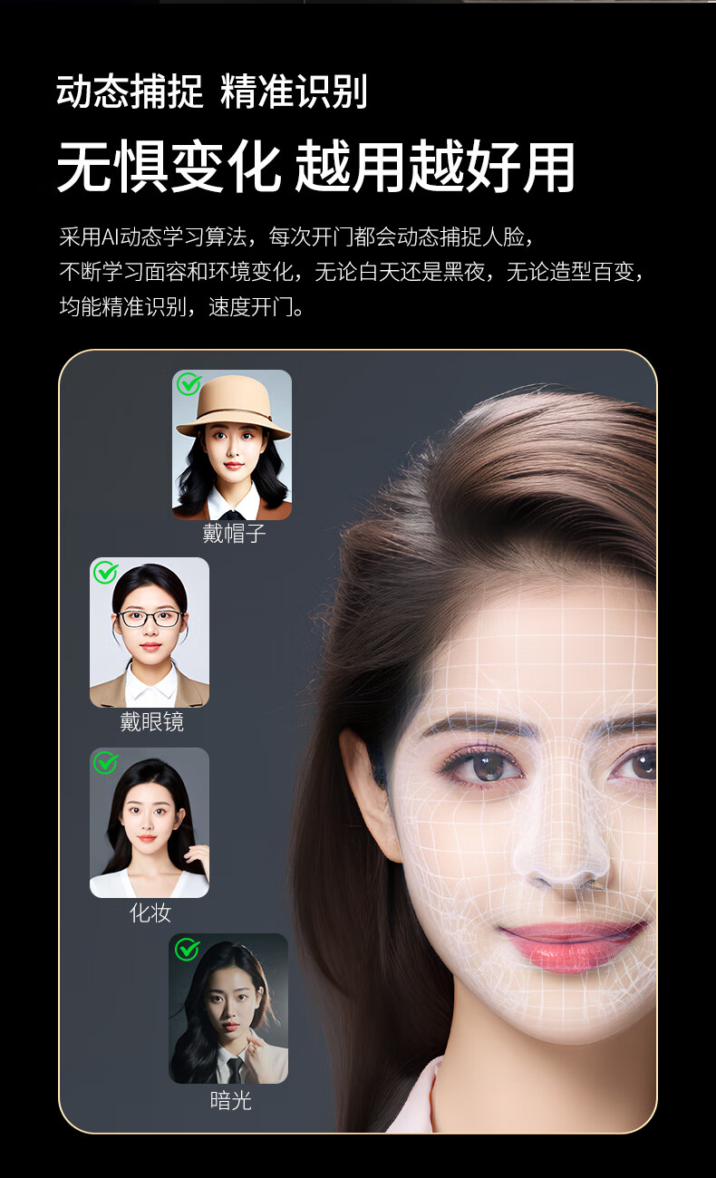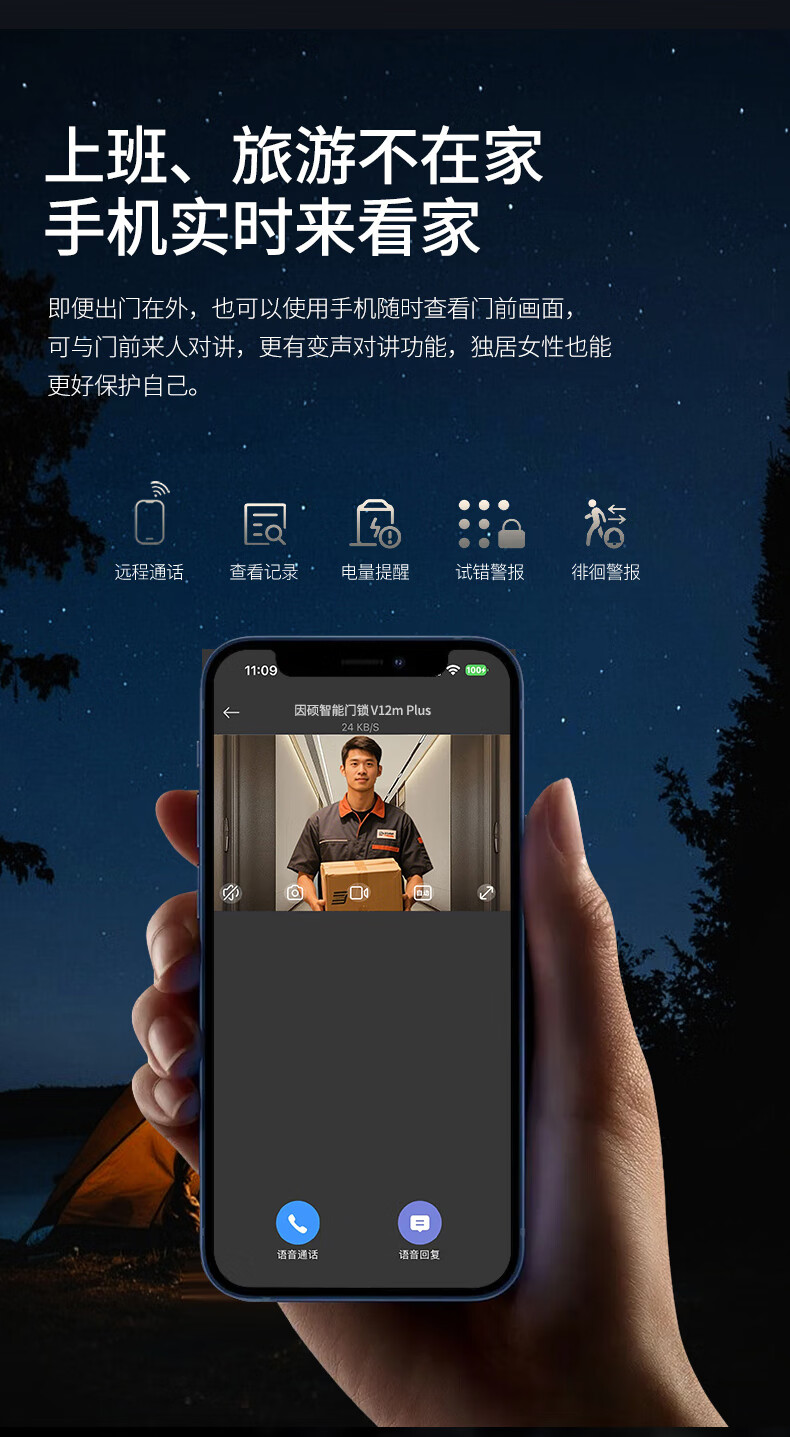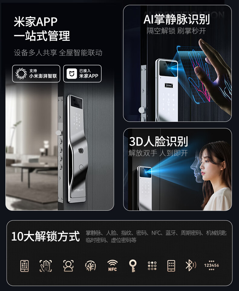 因硕V12M plus 已接入米家APP 智能门锁人脸掌静脉猫眼指纹密码电子锁 【已接入米家+掌静脉人脸】V12Mplus