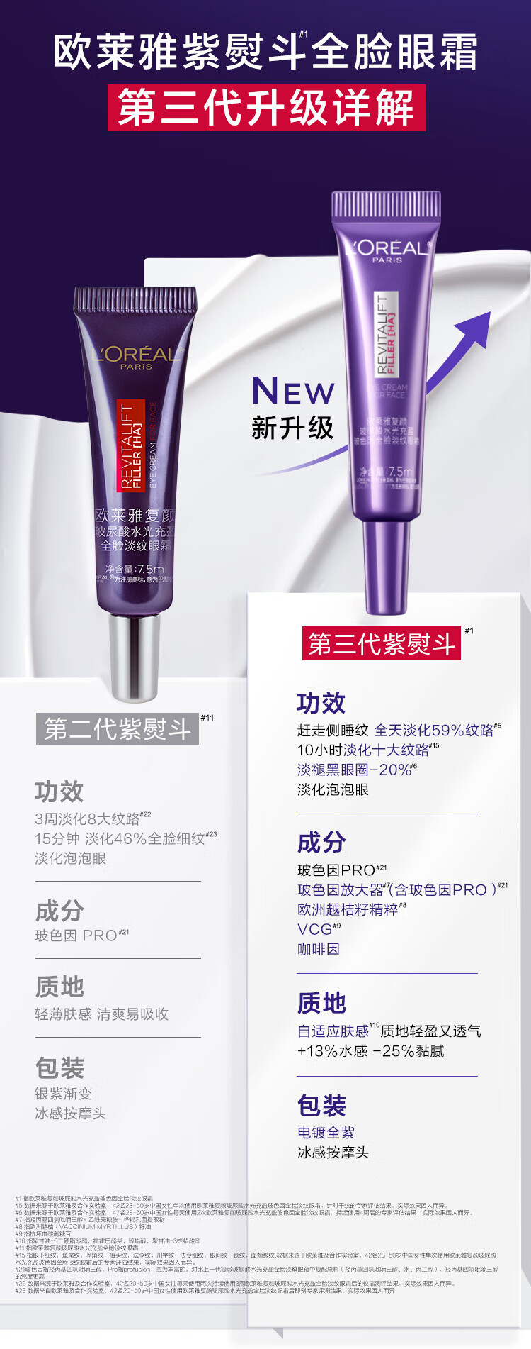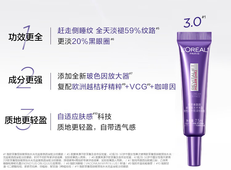 欧莱雅第三代紫熨斗玻色因全脸保湿紧致淡纹眼霜7.5ml*2【临期清仓】