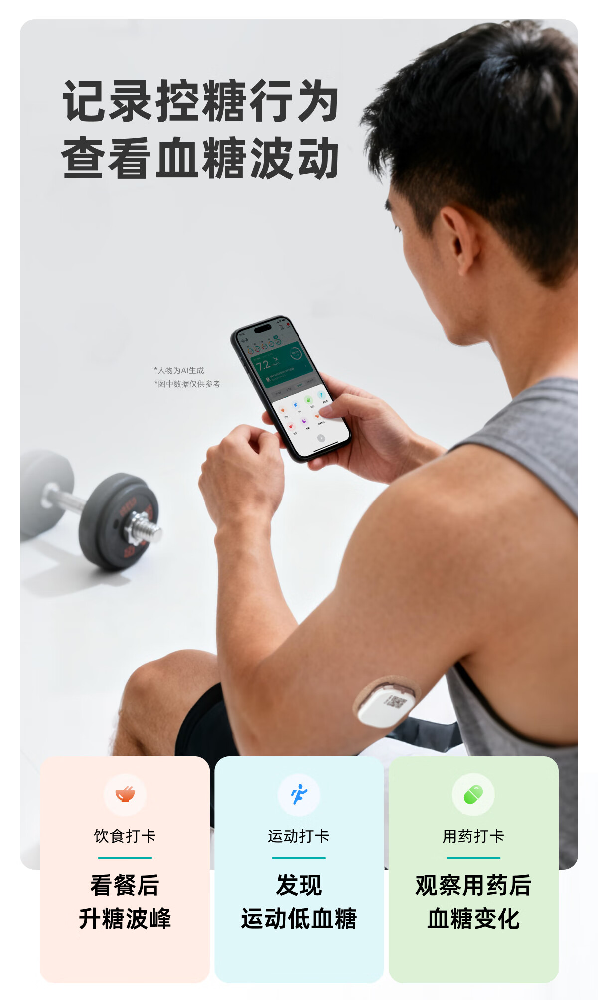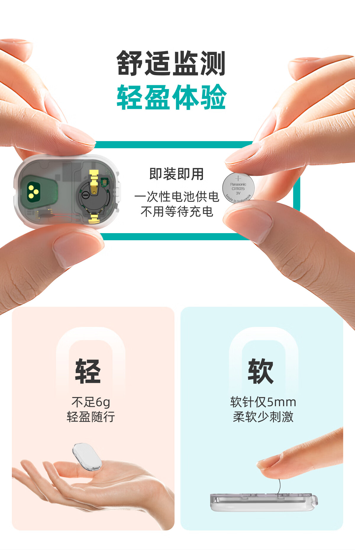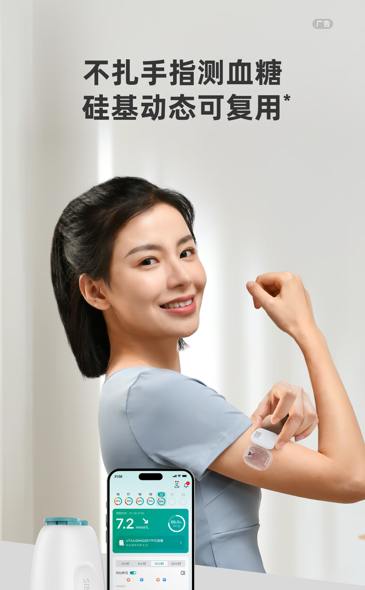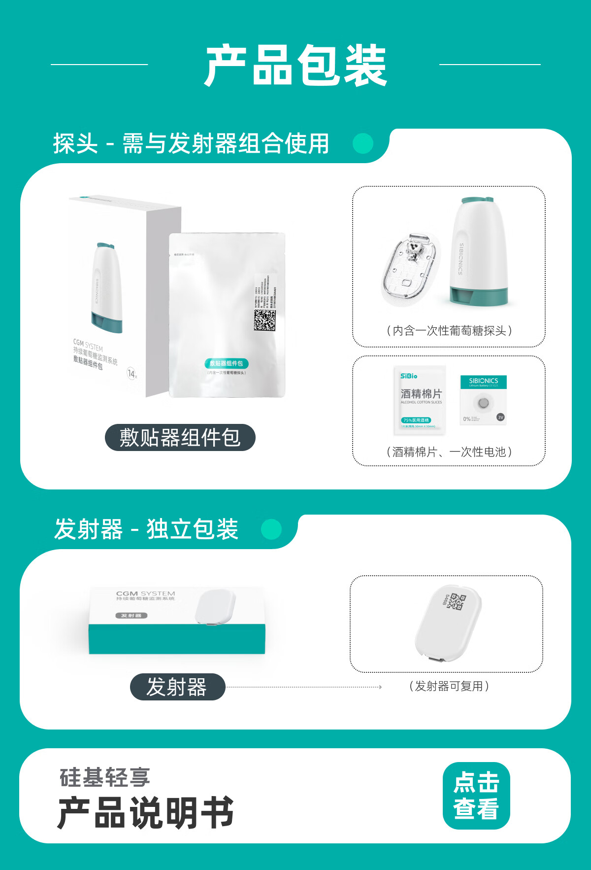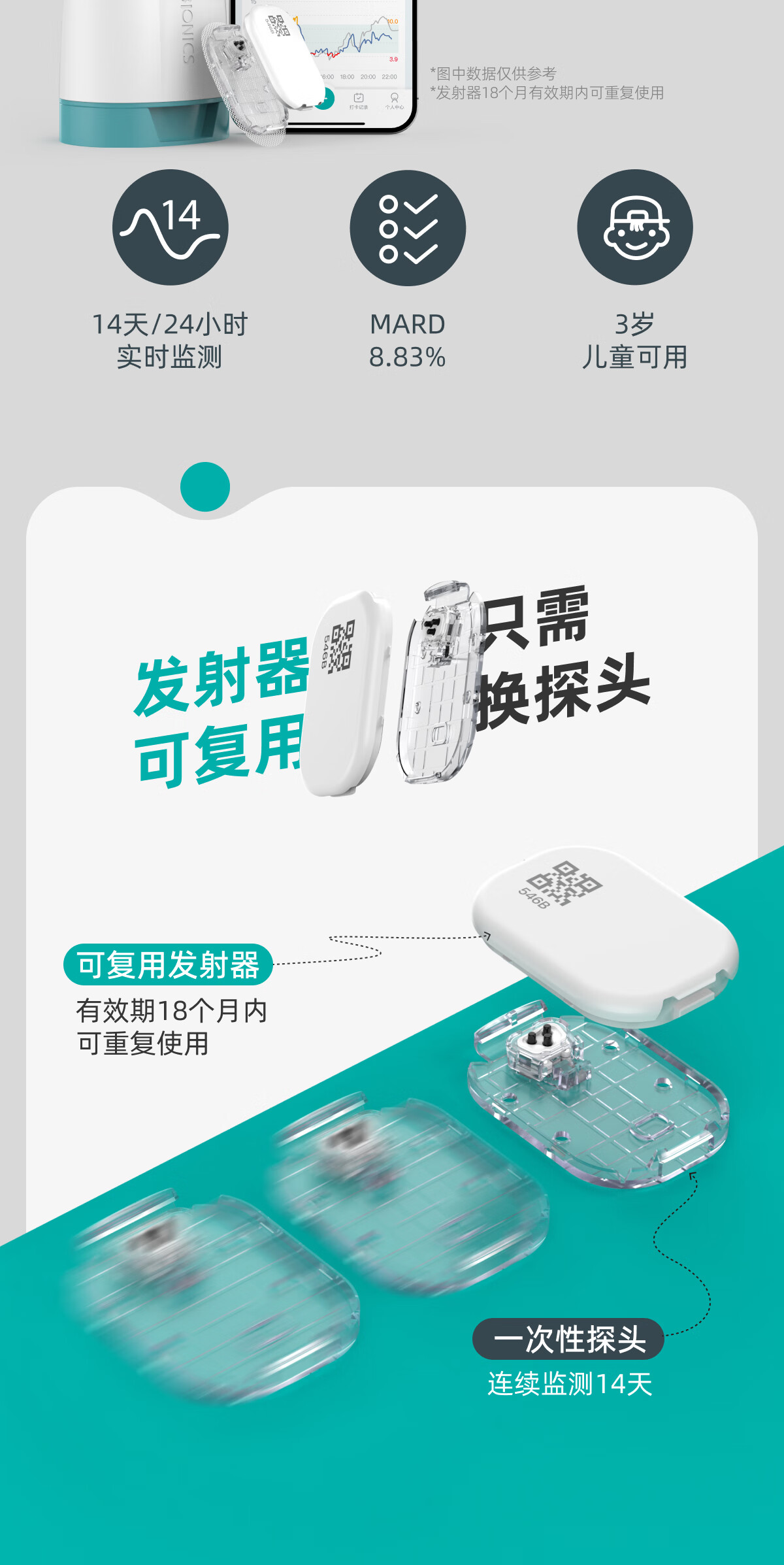 硅基动感轻享分体式动态血糖仪免扎针监测仪 持续葡萄糖监测系统 1+2套装