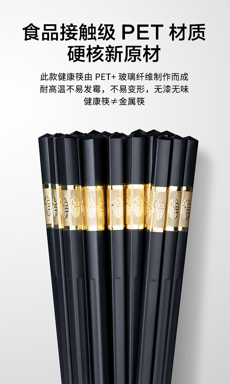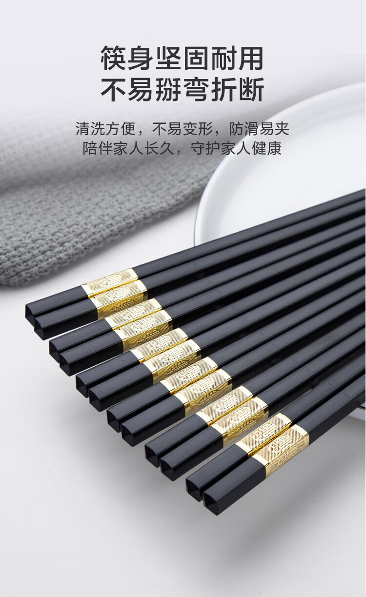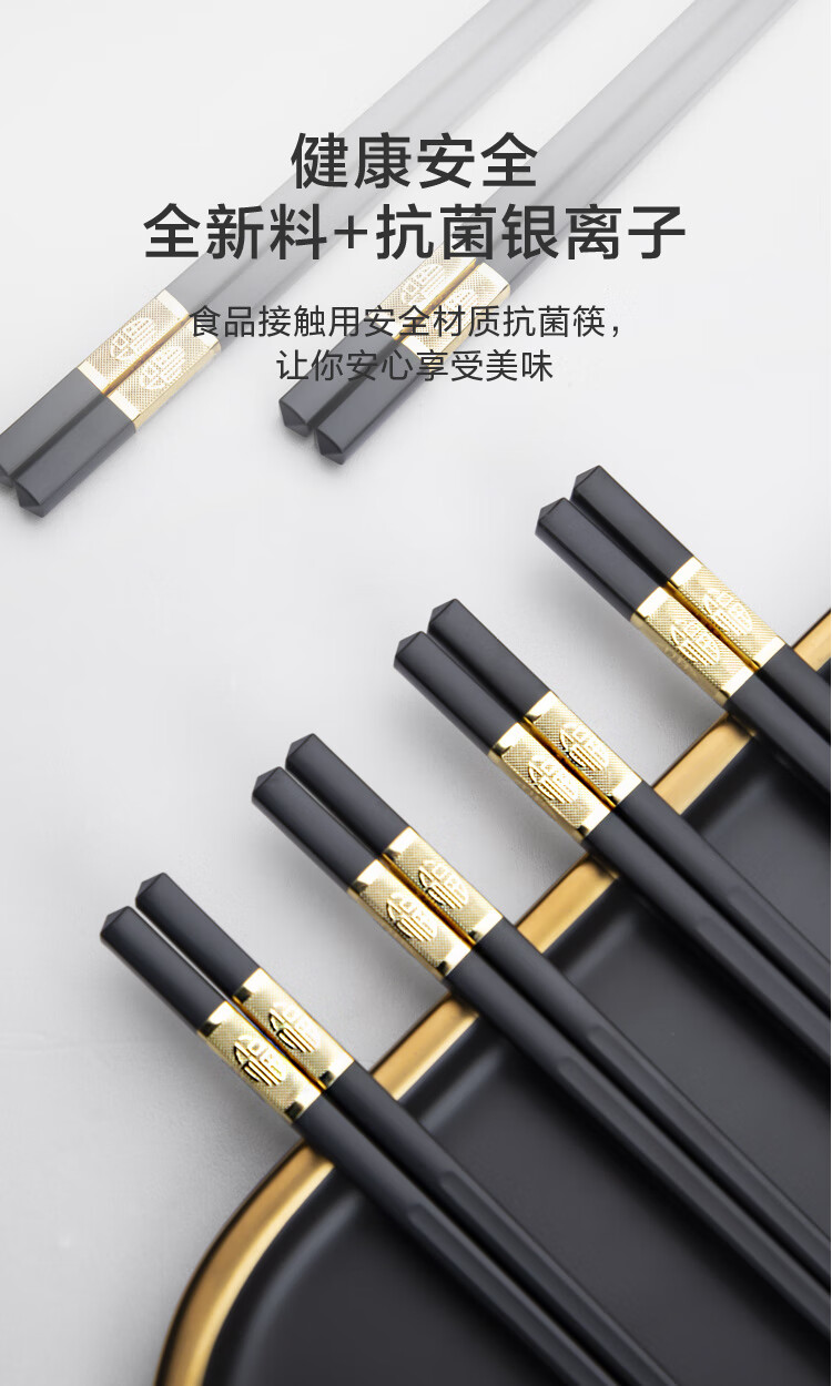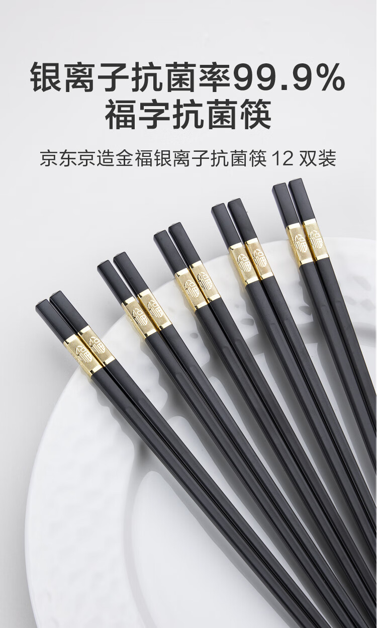 京东京造 筷子 家用食品接触级餐具合金金福款【抗菌耐高温】12双大包装
