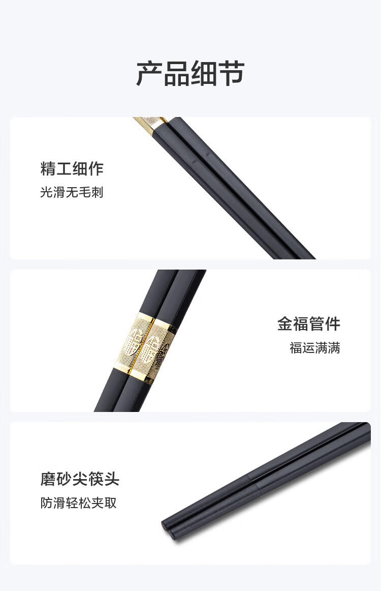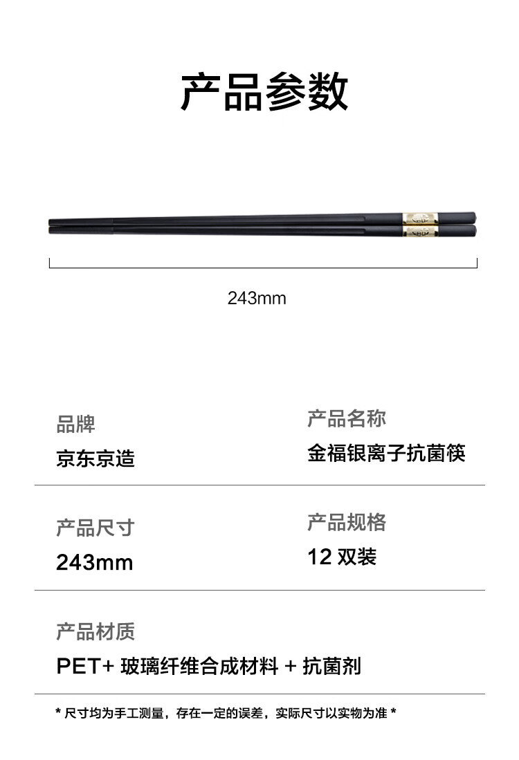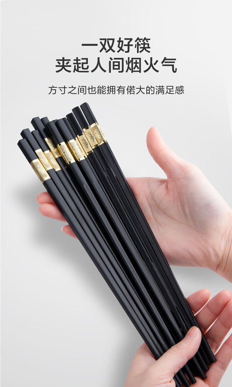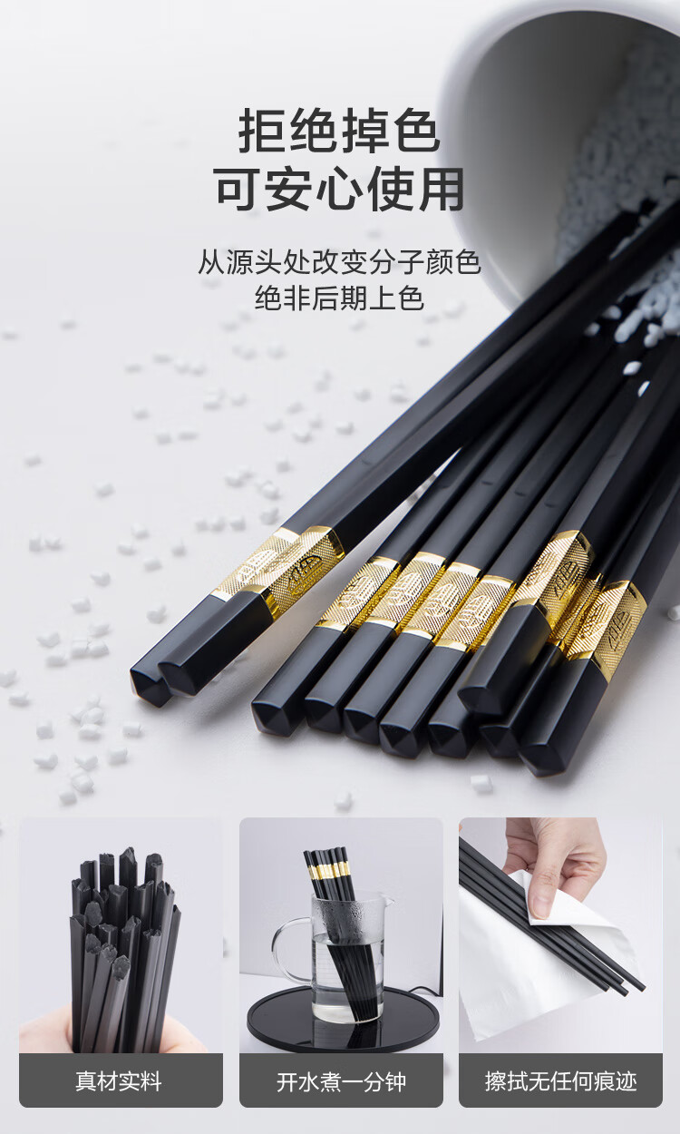 京东京造 筷子 家用食品接触级餐具合金金福款【抗菌耐高温】12双大包装