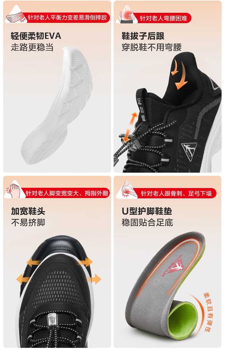 足力健老人鞋春季中老年散步鞋轻便爸爸鞋休闲鞋运动鞋男鞋 02K黑色40